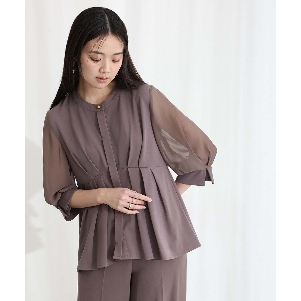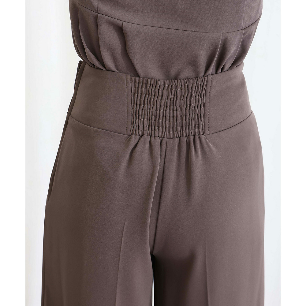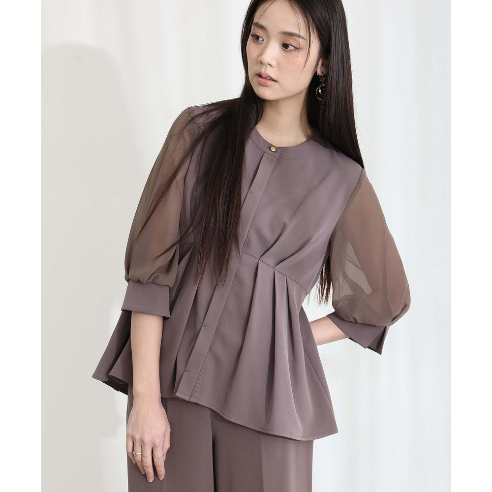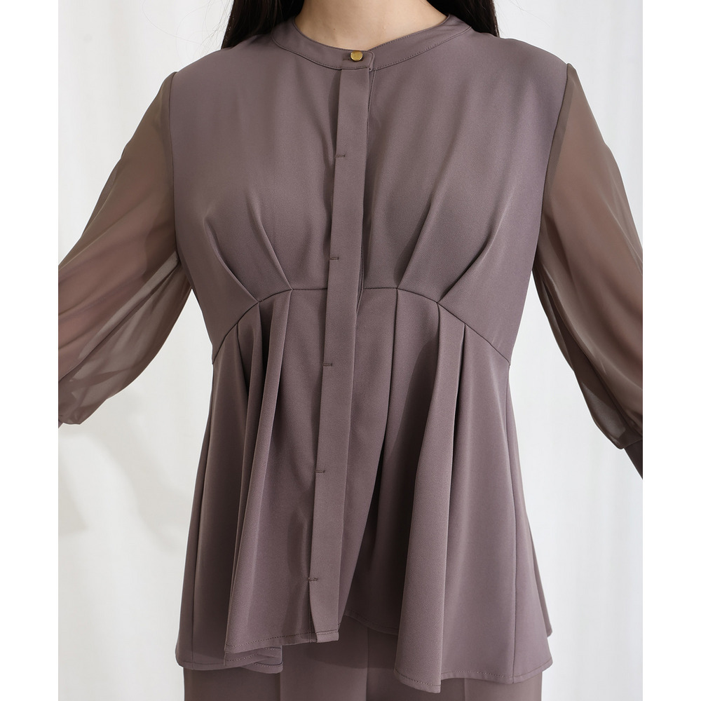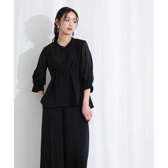 エレガントなペプラムトップスとワイドパンツの2点セット。