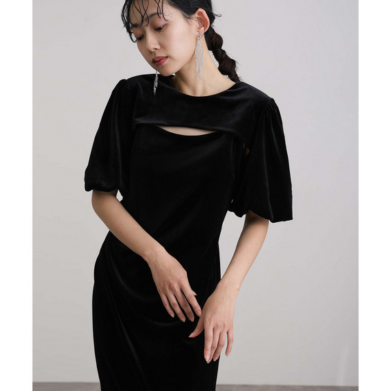 【結婚式・パーティードレス】ボレロ&ワンピース2点セットベロアドレス