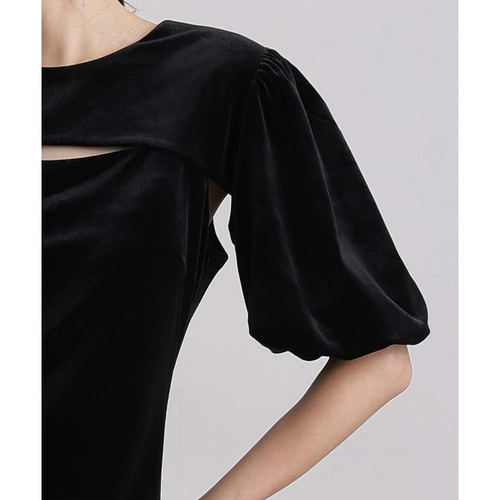 光沢を放つベロア素材が上品な雰囲気に。