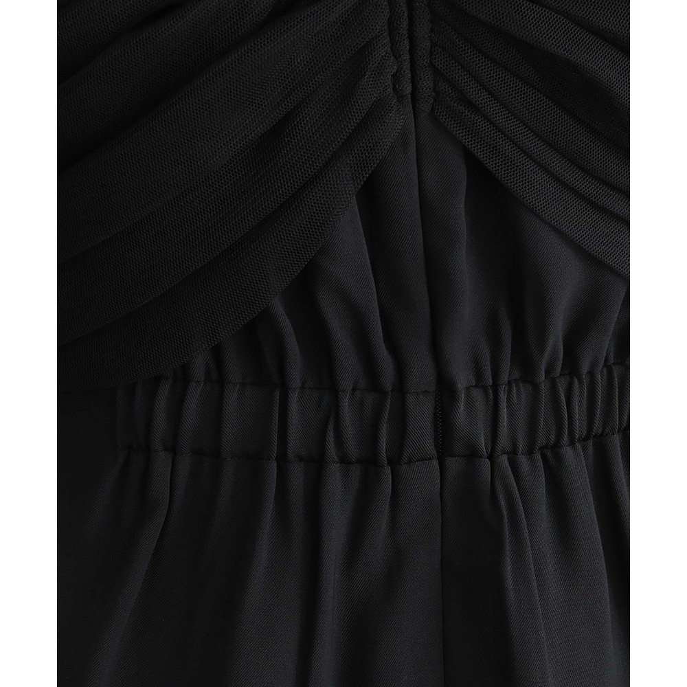 オフショルダー部分には肌色のチュールを仕様しているので、ズレを気にせず着用可能。