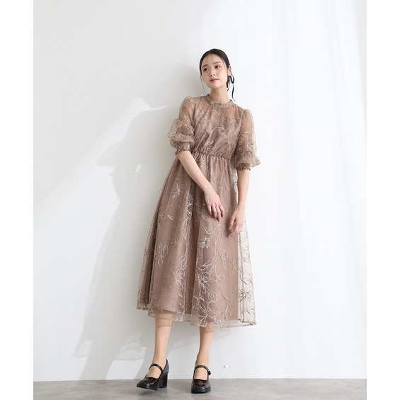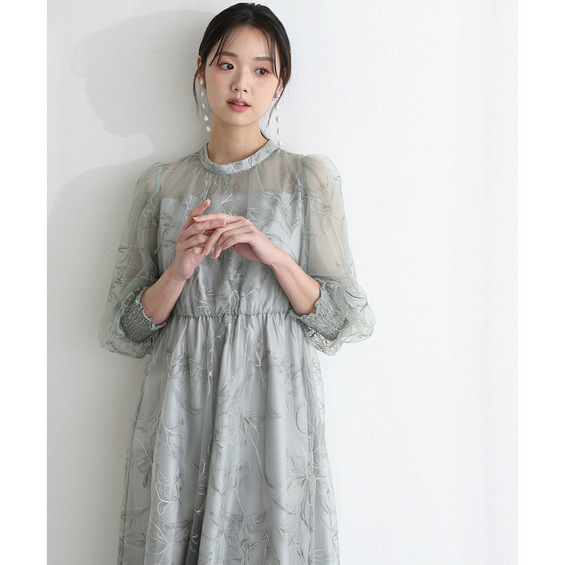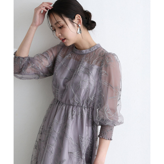デコルテから袖にかけての程よい透け感が女性らしい印象に。