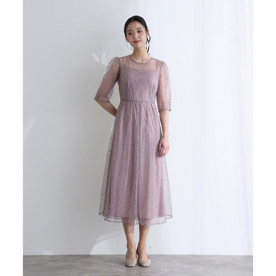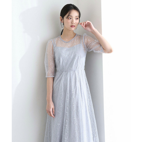 繊細なラメ入りレースを使用した、エレガントな2ピースドレス。