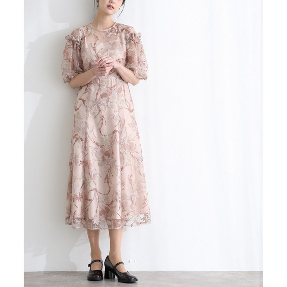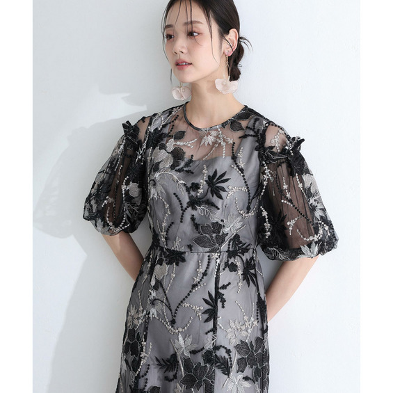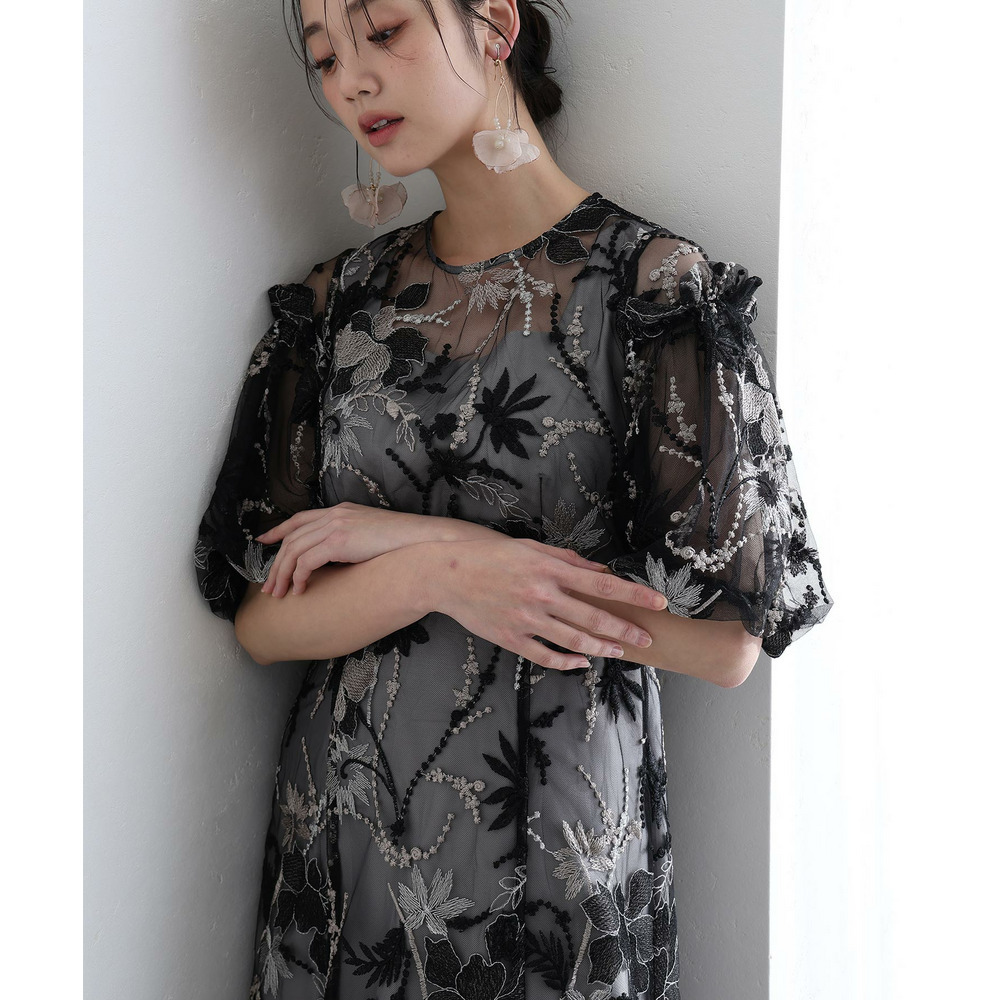 全面に施された刺繍レースが上品で華やかな仕上がり。
