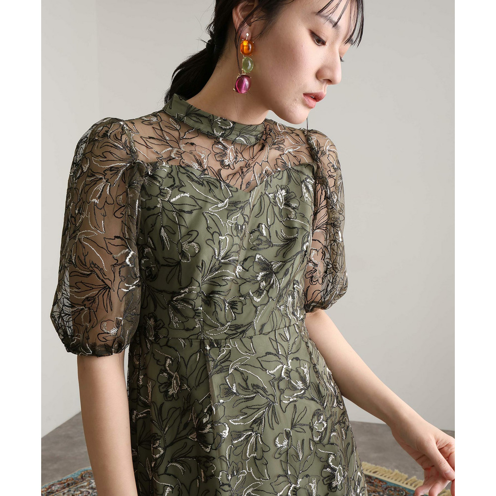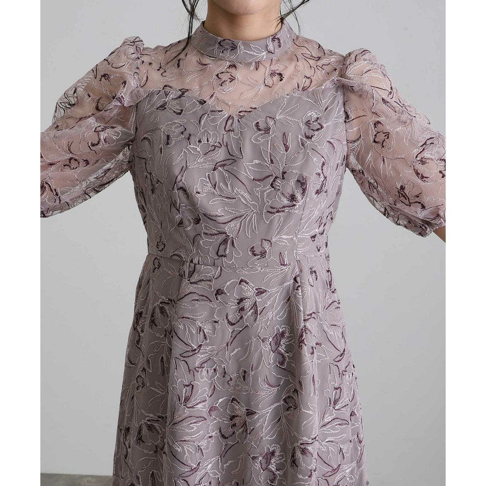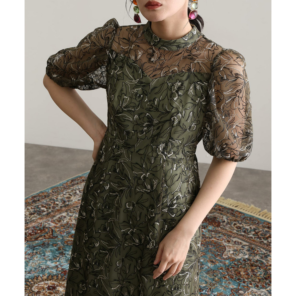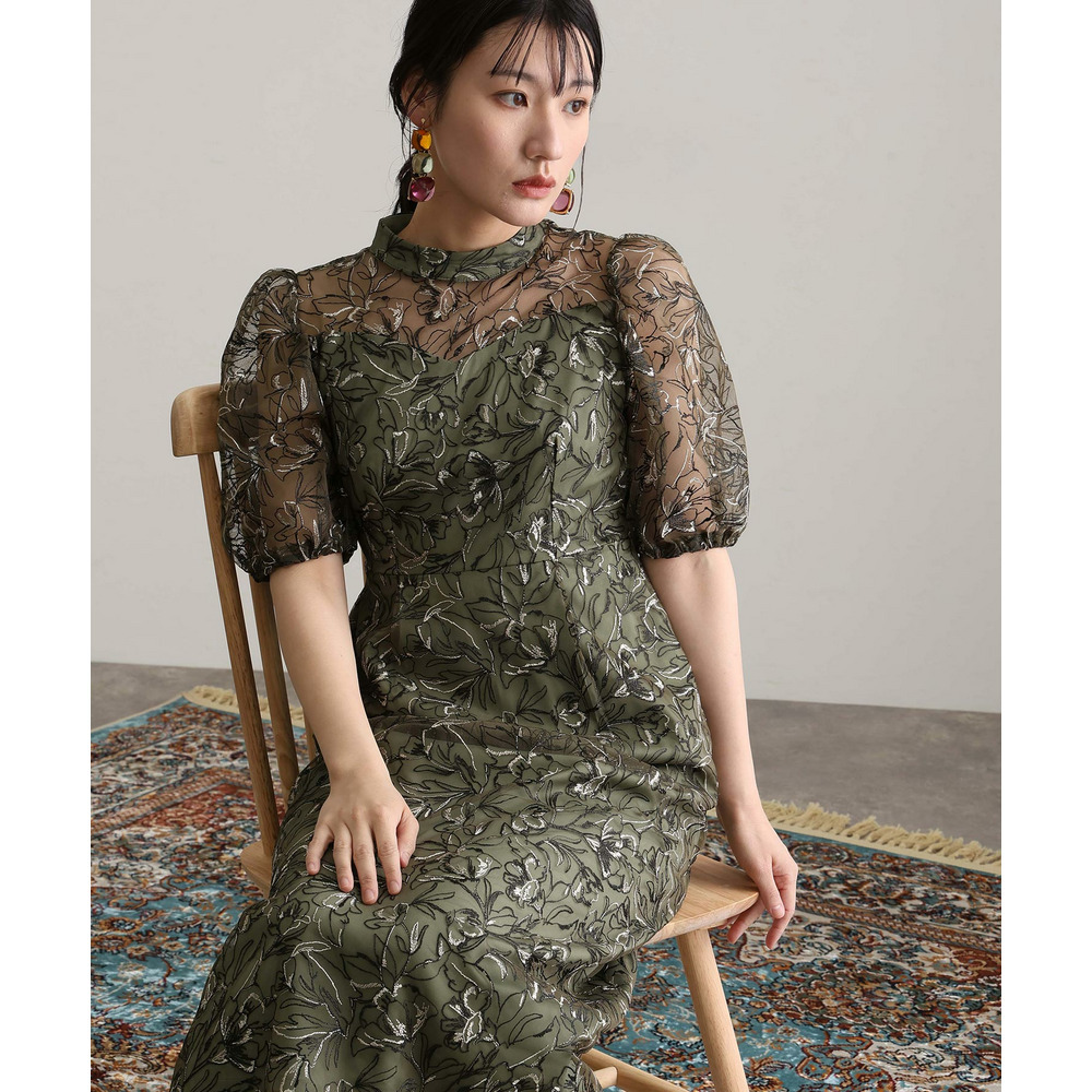 デコルテから袖にかけてのシースルーレースで女性らしい抜け感をプラス。