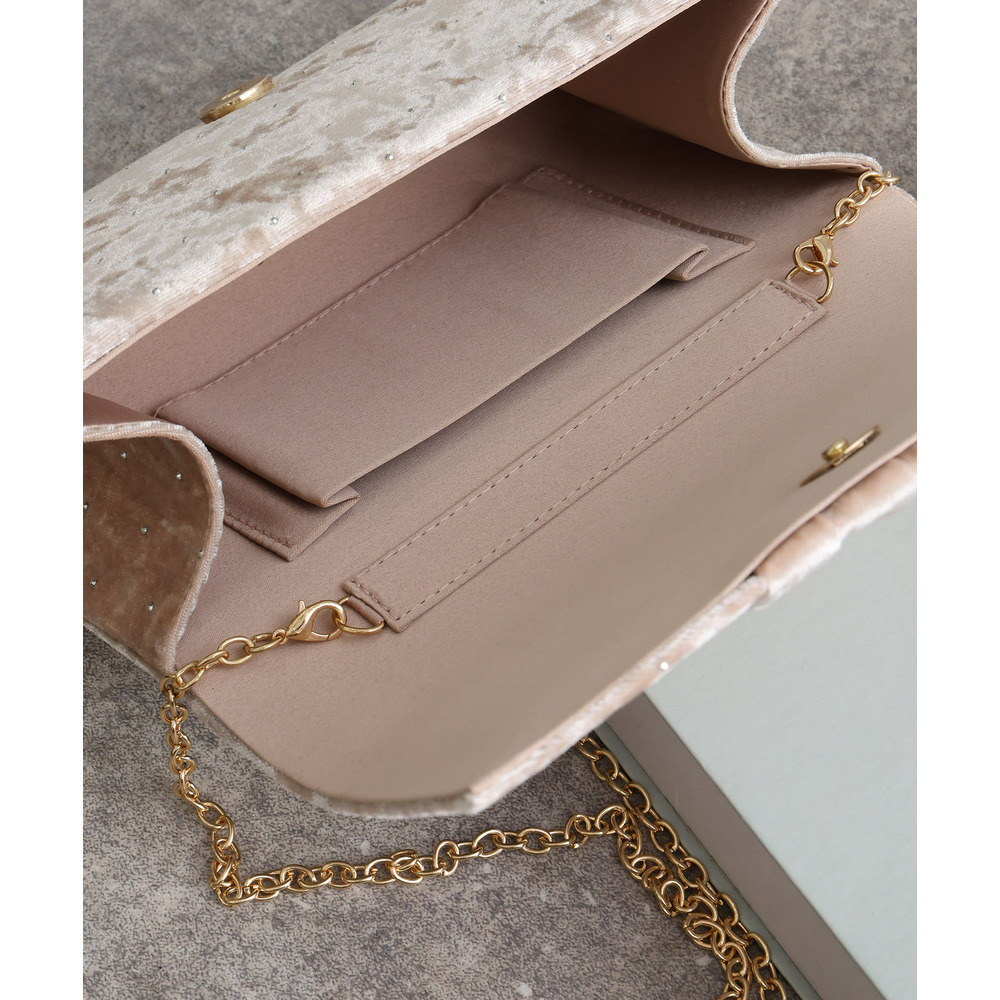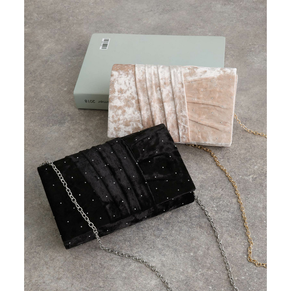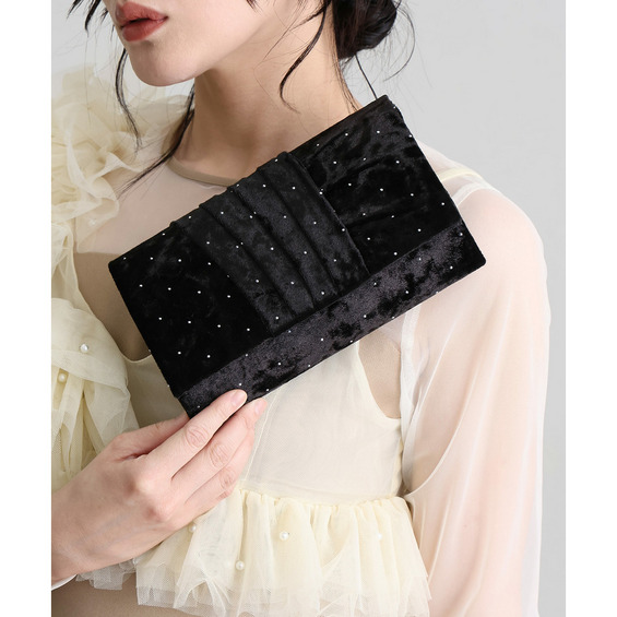 ラインストーン付きベロアクラッチバッグ