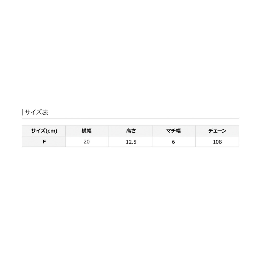 サイズ表記 F 横幅 20cm 高さ 12.5cm マチ幅 6cm チェーン 108cm