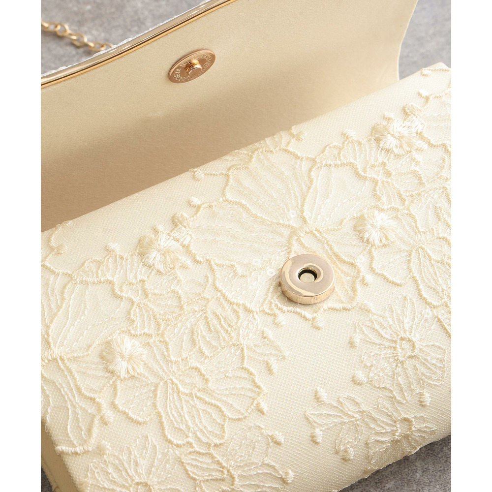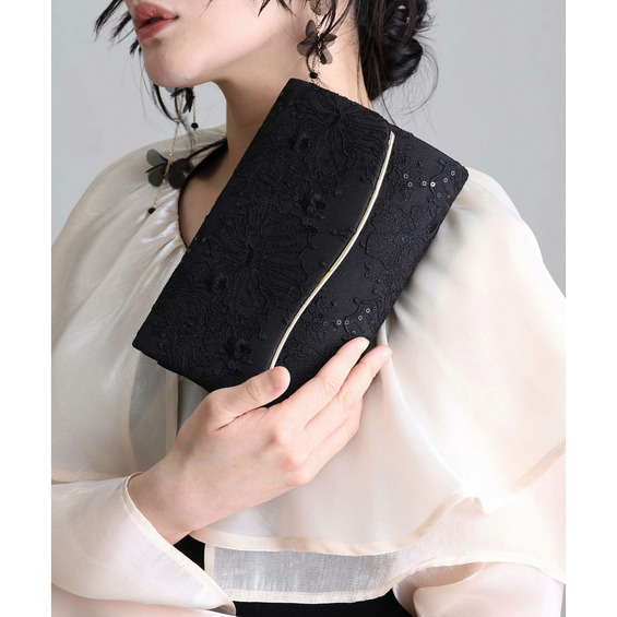 華やかなスパンコール刺繍レースをあしらったエレガントなパーティーバッグ。