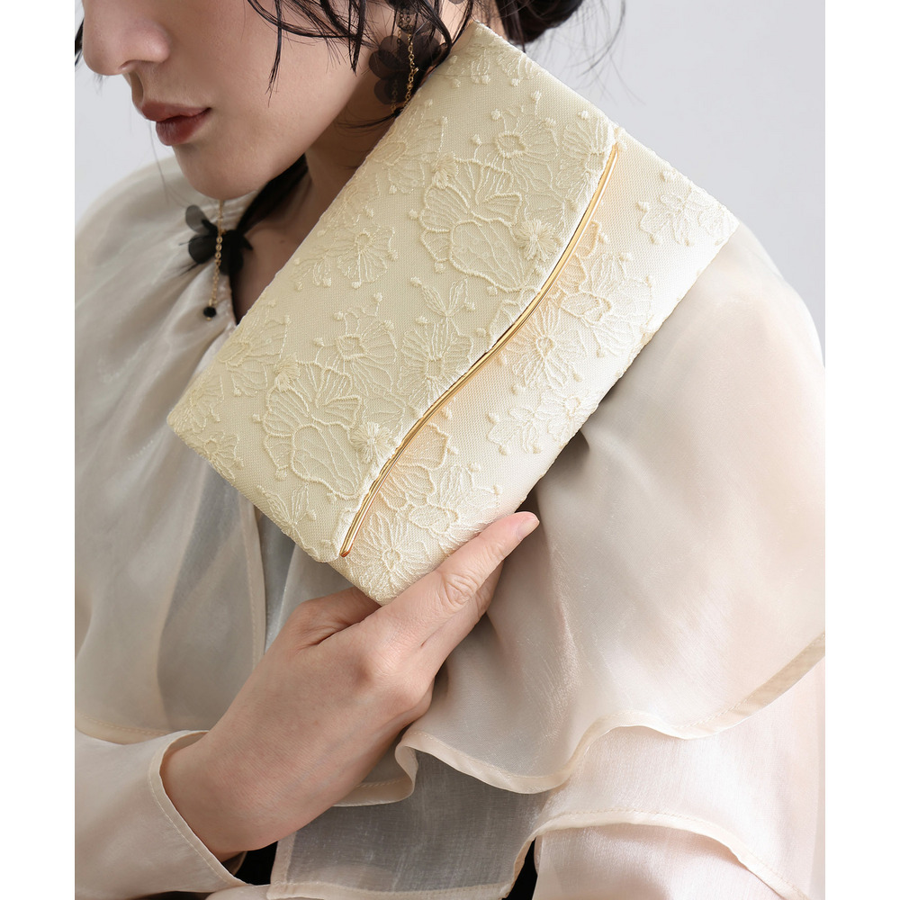 繊細な刺繍が上品な輝きを放ち、結婚式や食事会、同窓会などのフォーマルなシーンで活躍します。