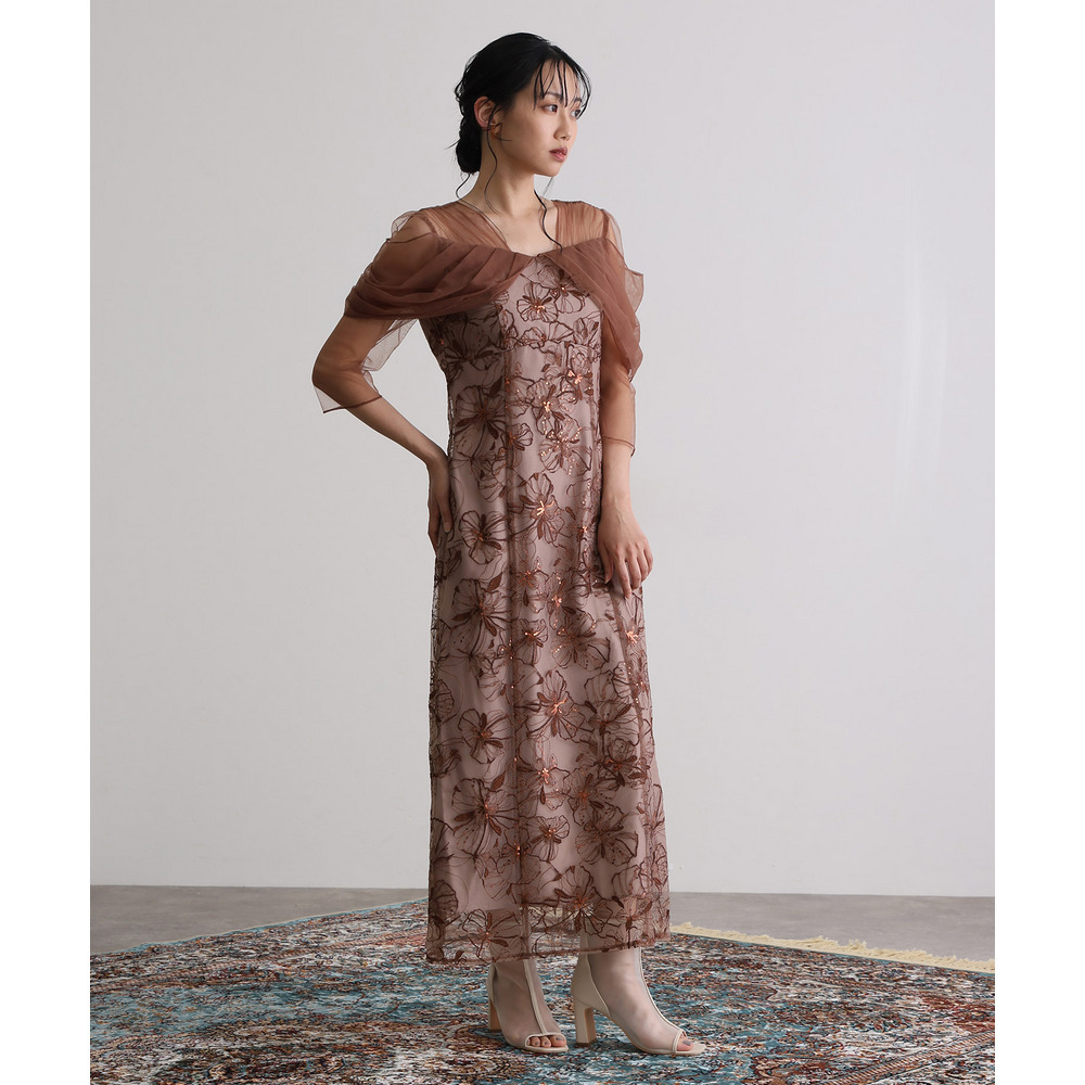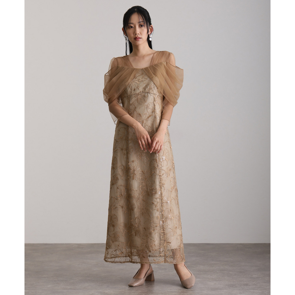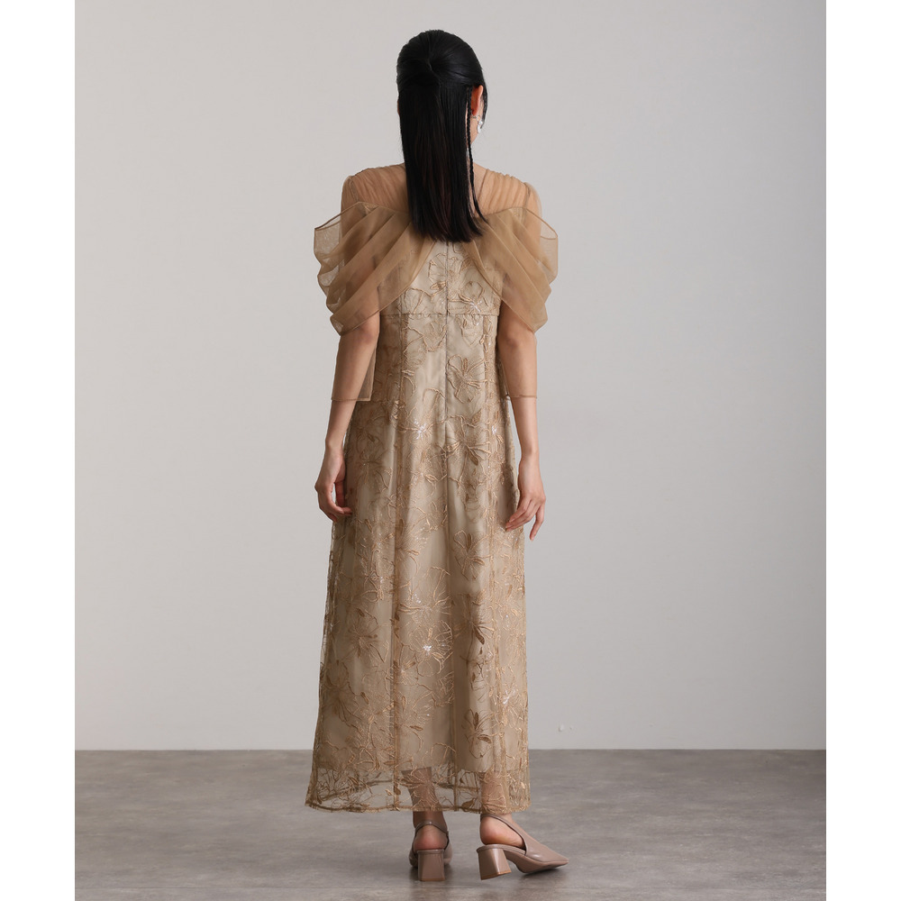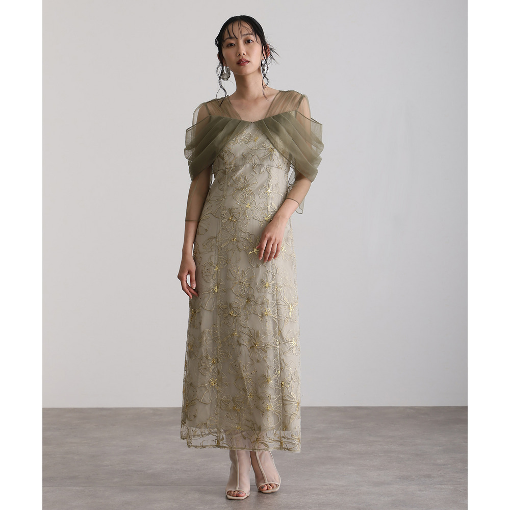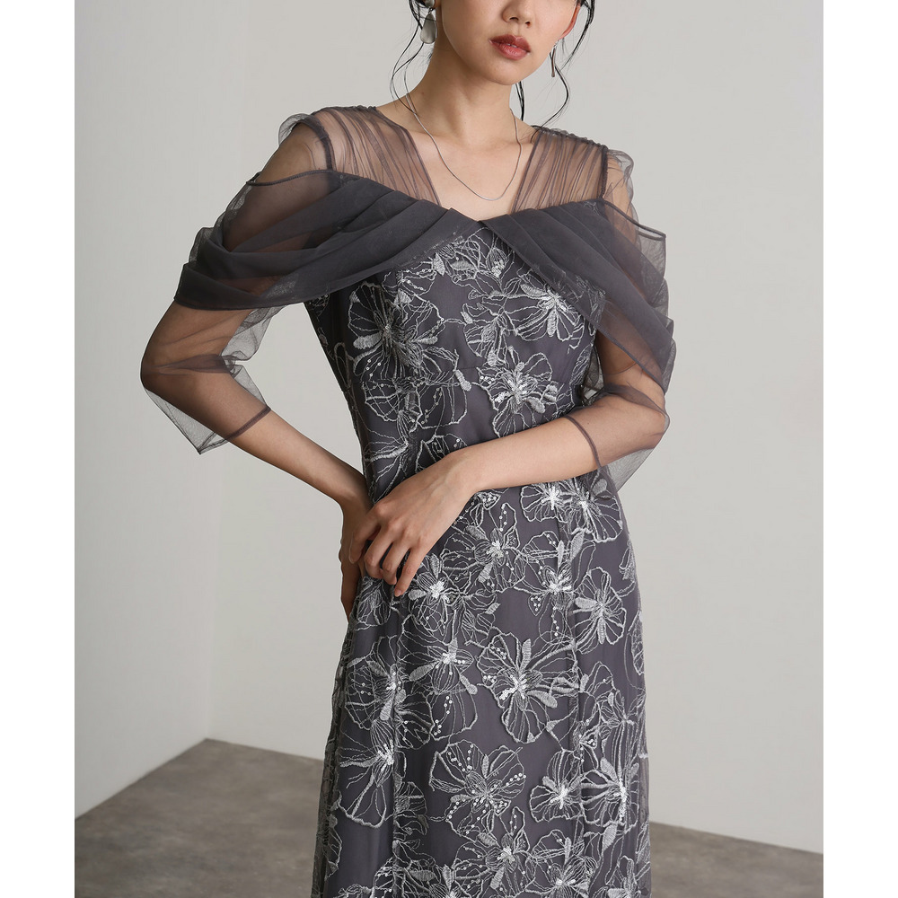 オフショルダースパンコール刺繍レースドレス