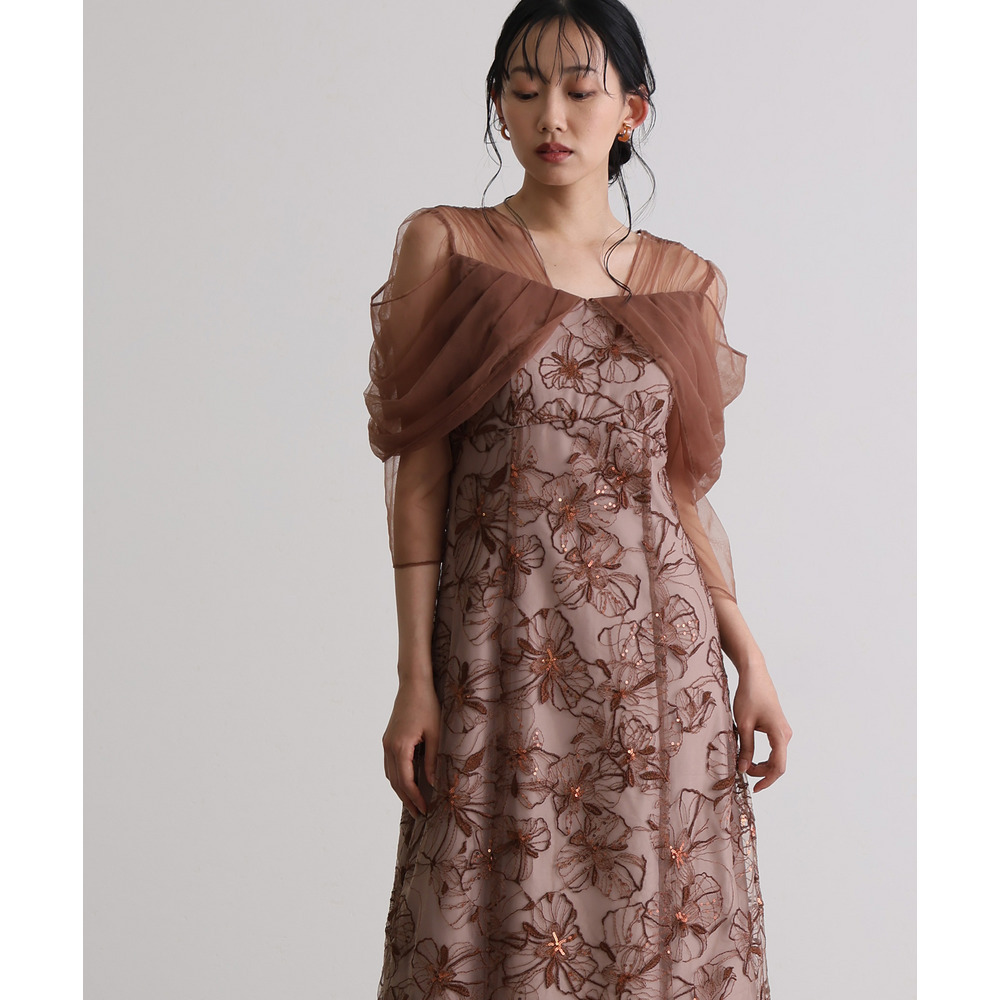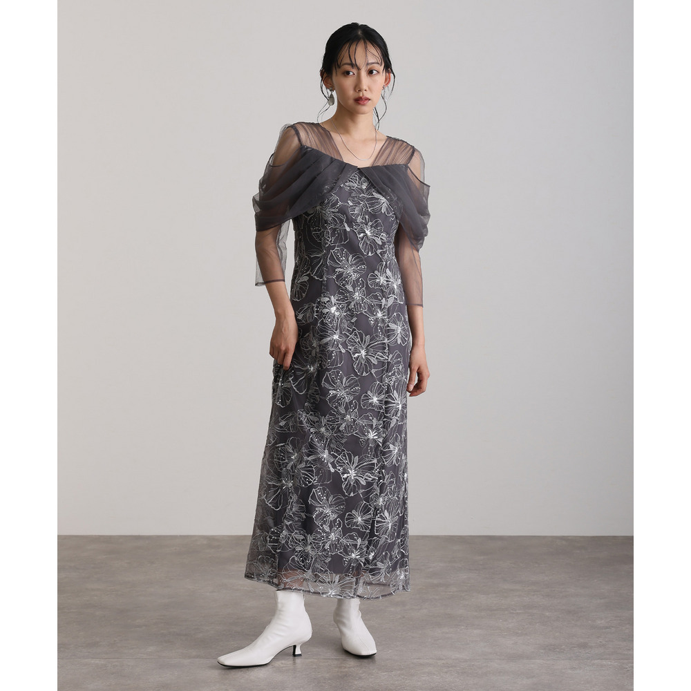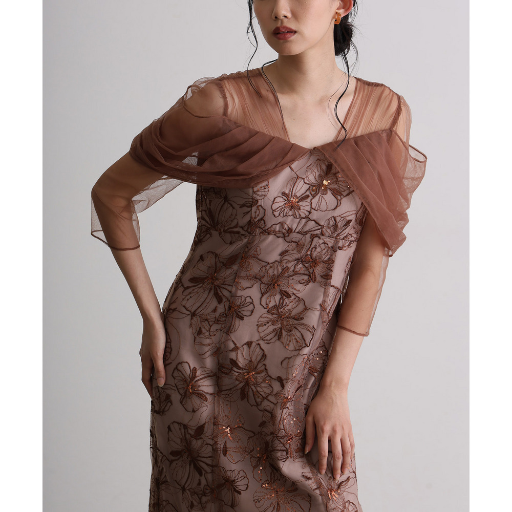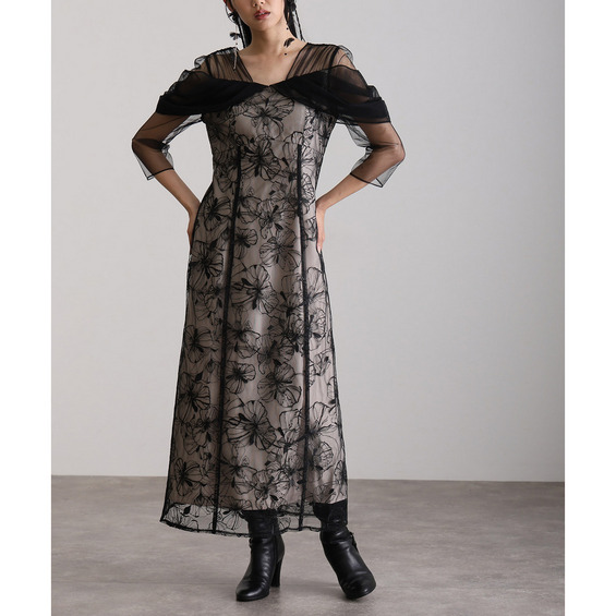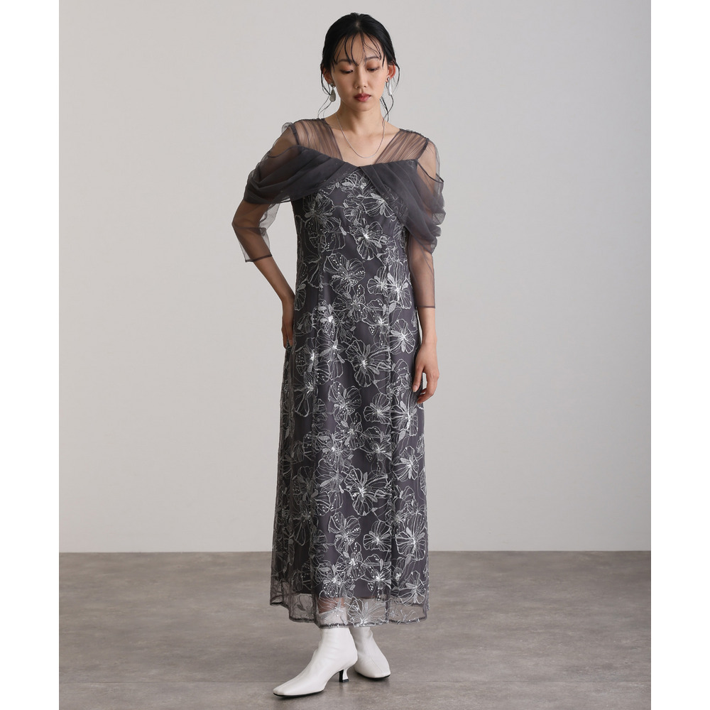 オフショルダースパンコール刺繍レースドレス