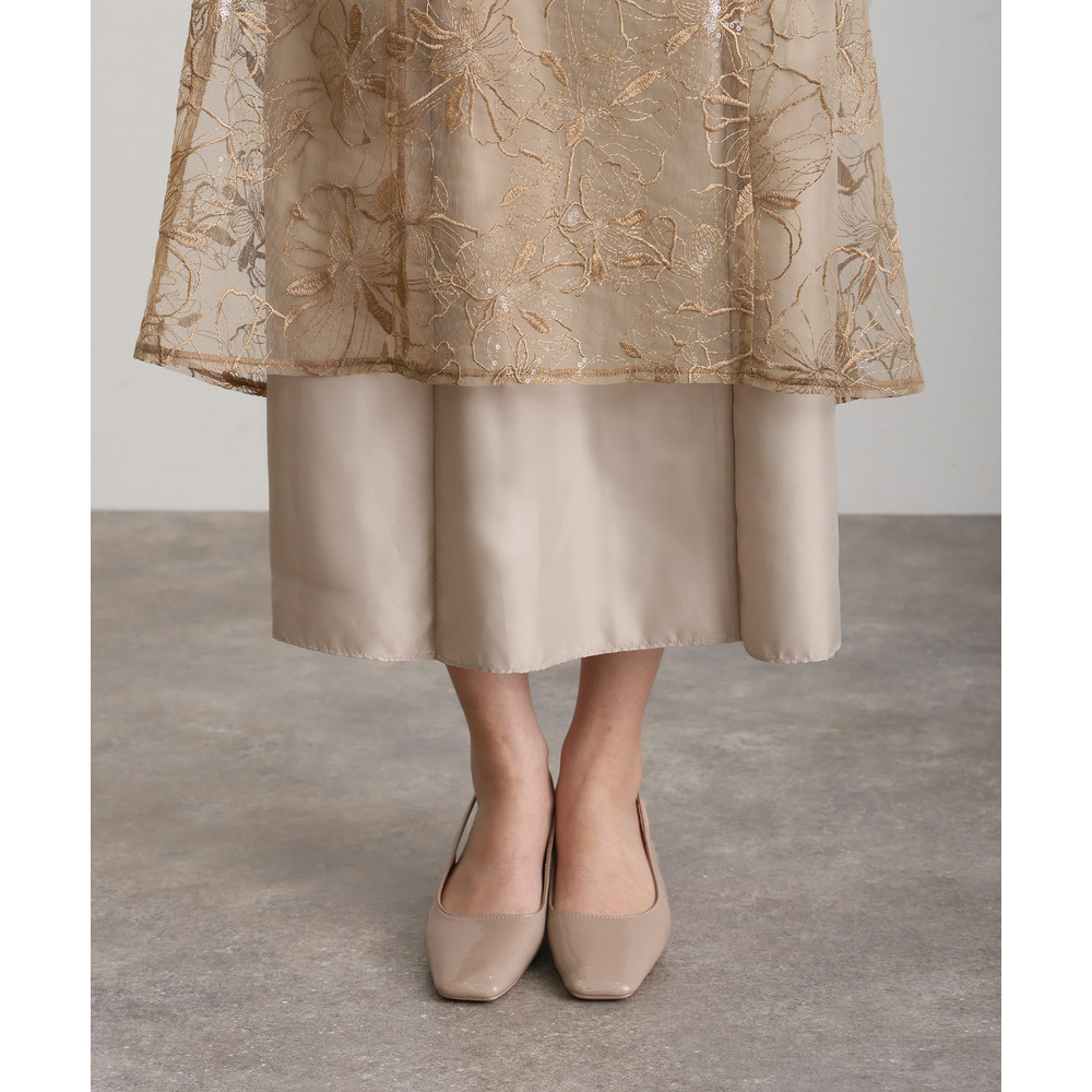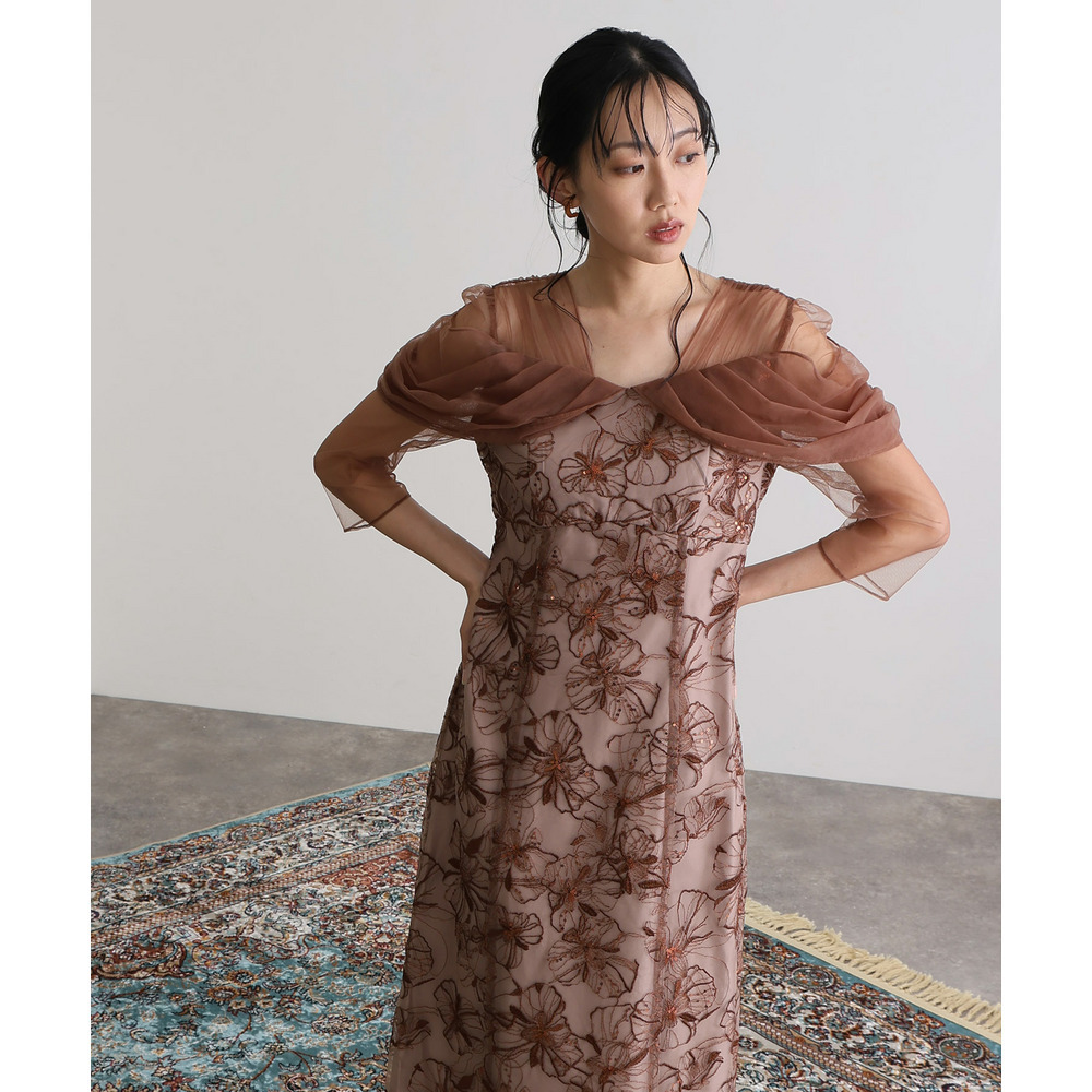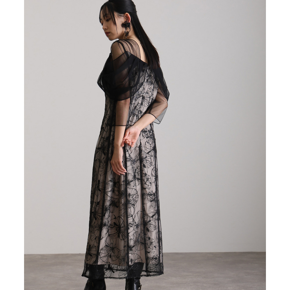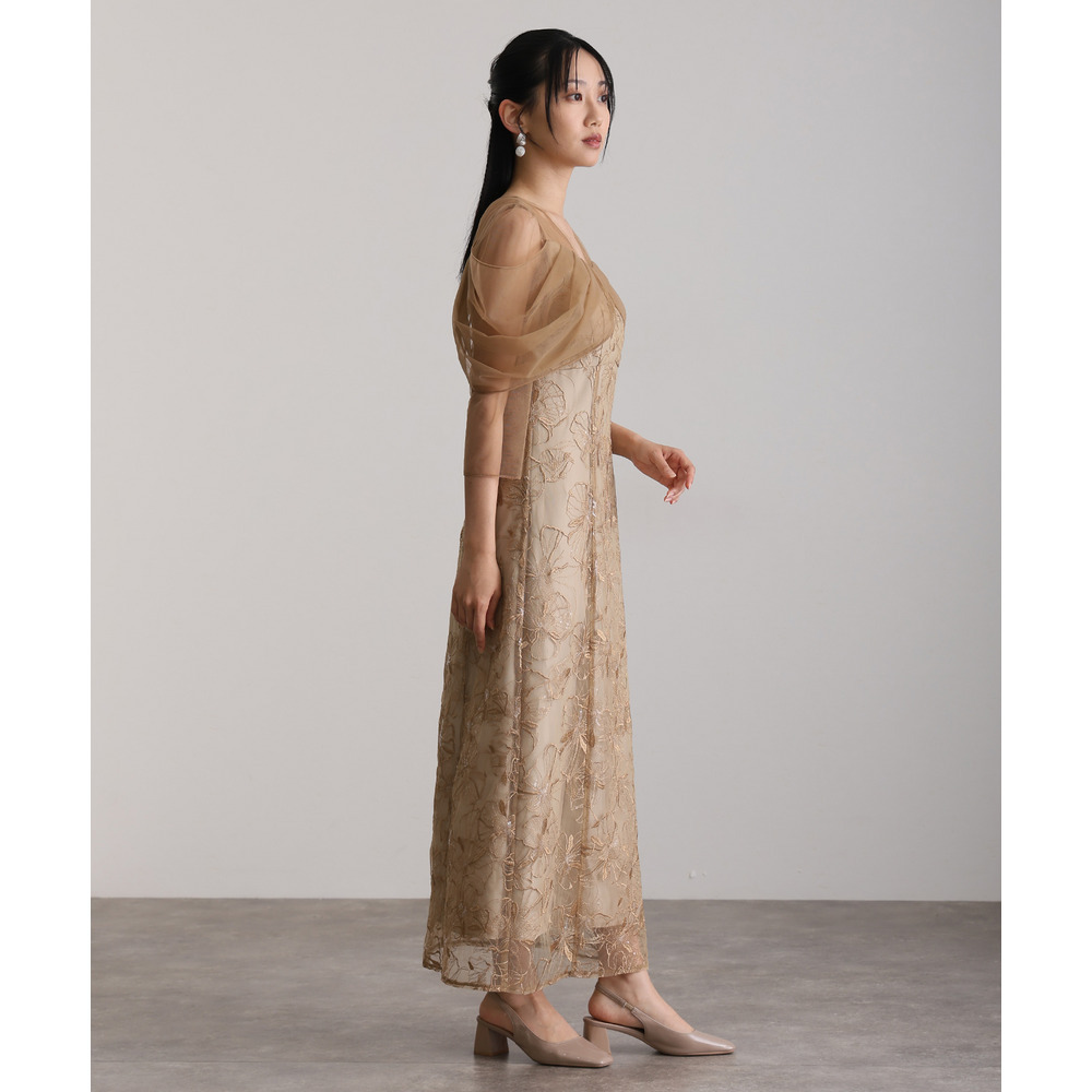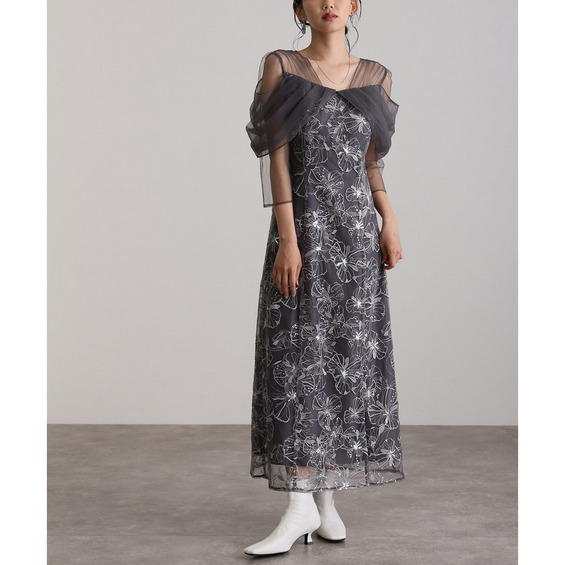 オフショルダースパンコール刺繍レースドレス