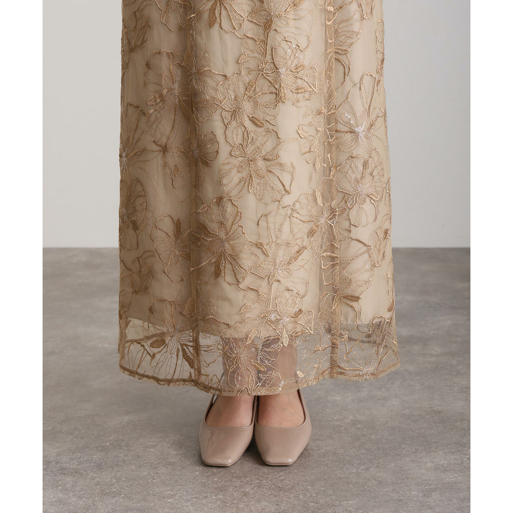 繊細なフラワーレースに煌めくスパンコールが散りばめられた、主役級の一着。
