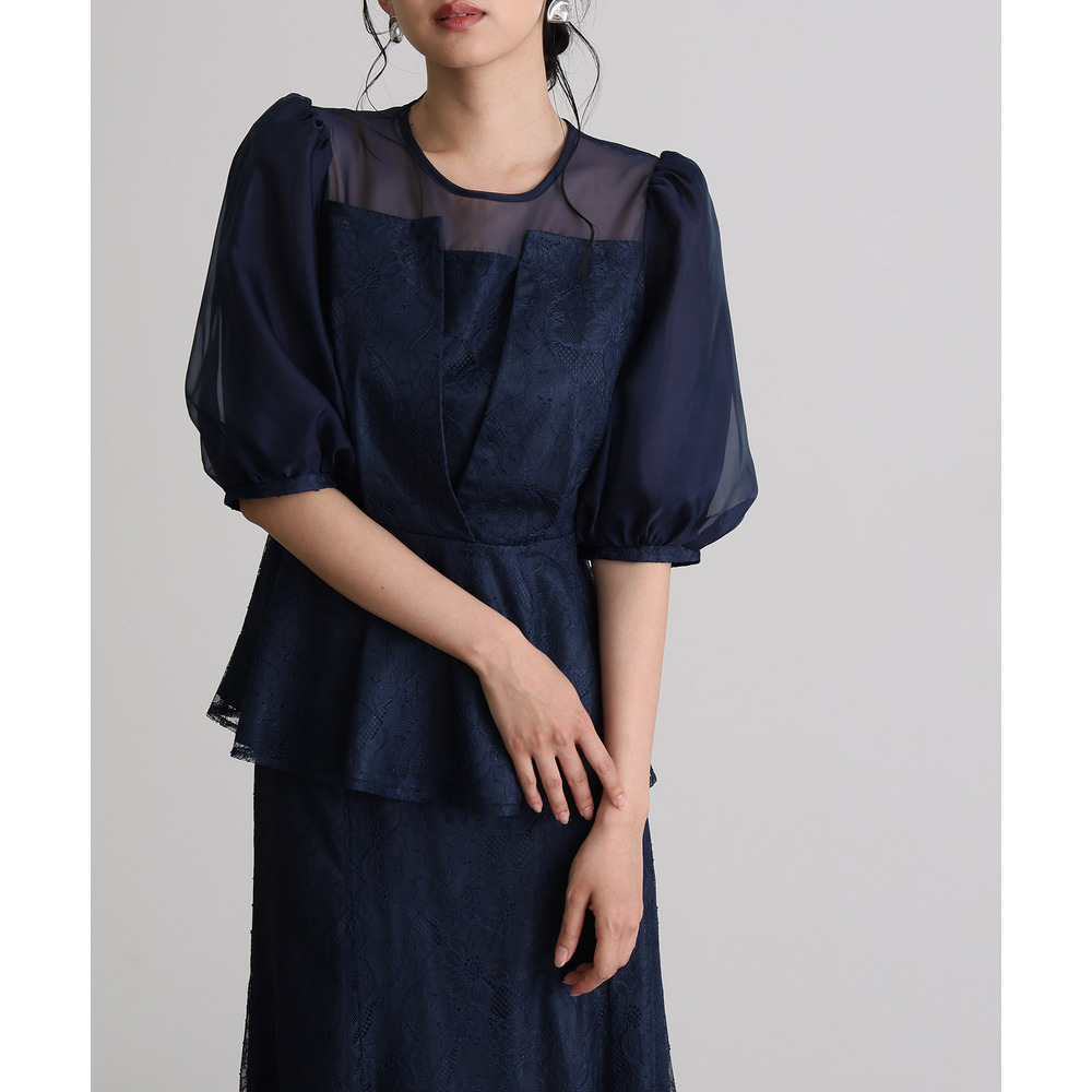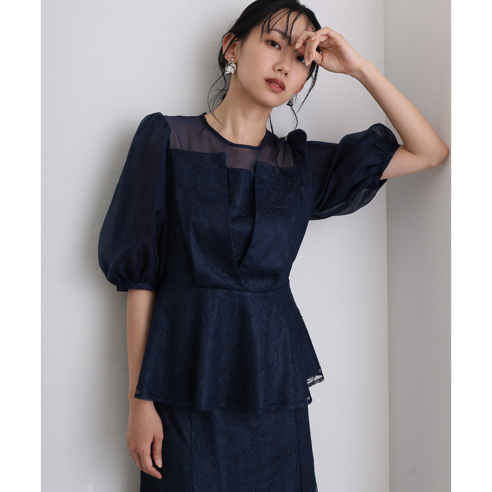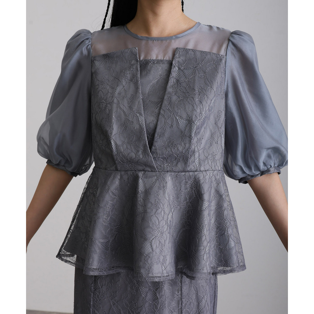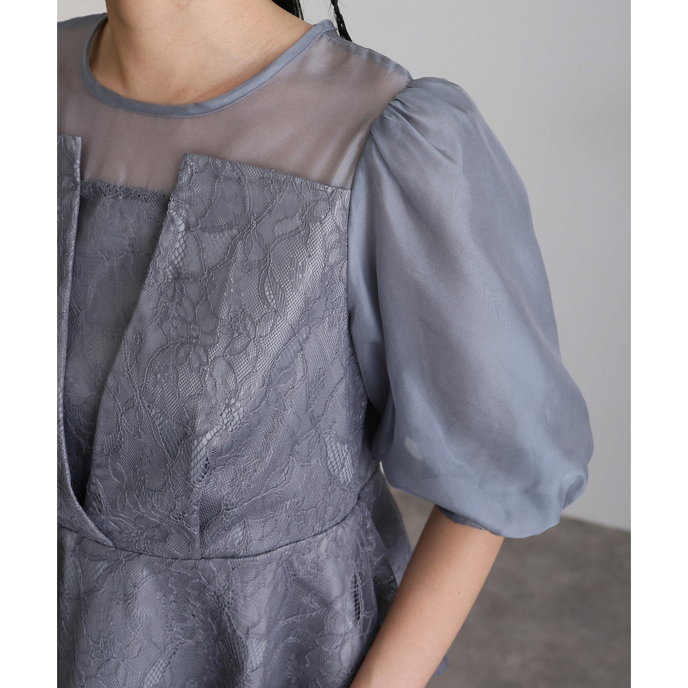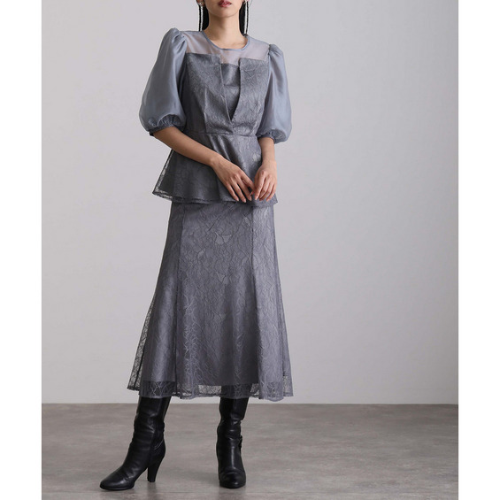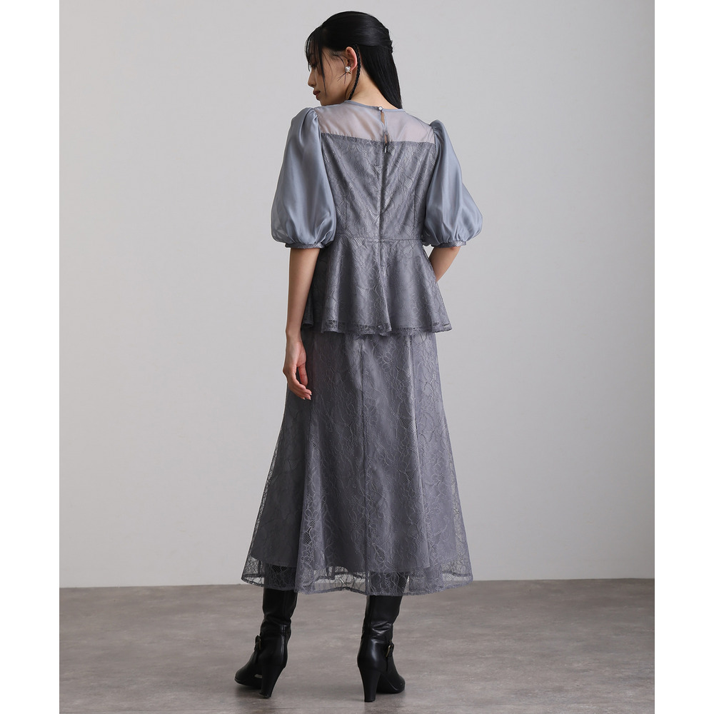 素材 | 【トップス】 レース:ポリエルテル100% オーガンジー:ポリエステル100% 裏地:ポリエステル95% ポリウレタン5% 【スカート】 レース:ポリエルテル100% 裏地:ポリエステル95% ポリウレタン5% |