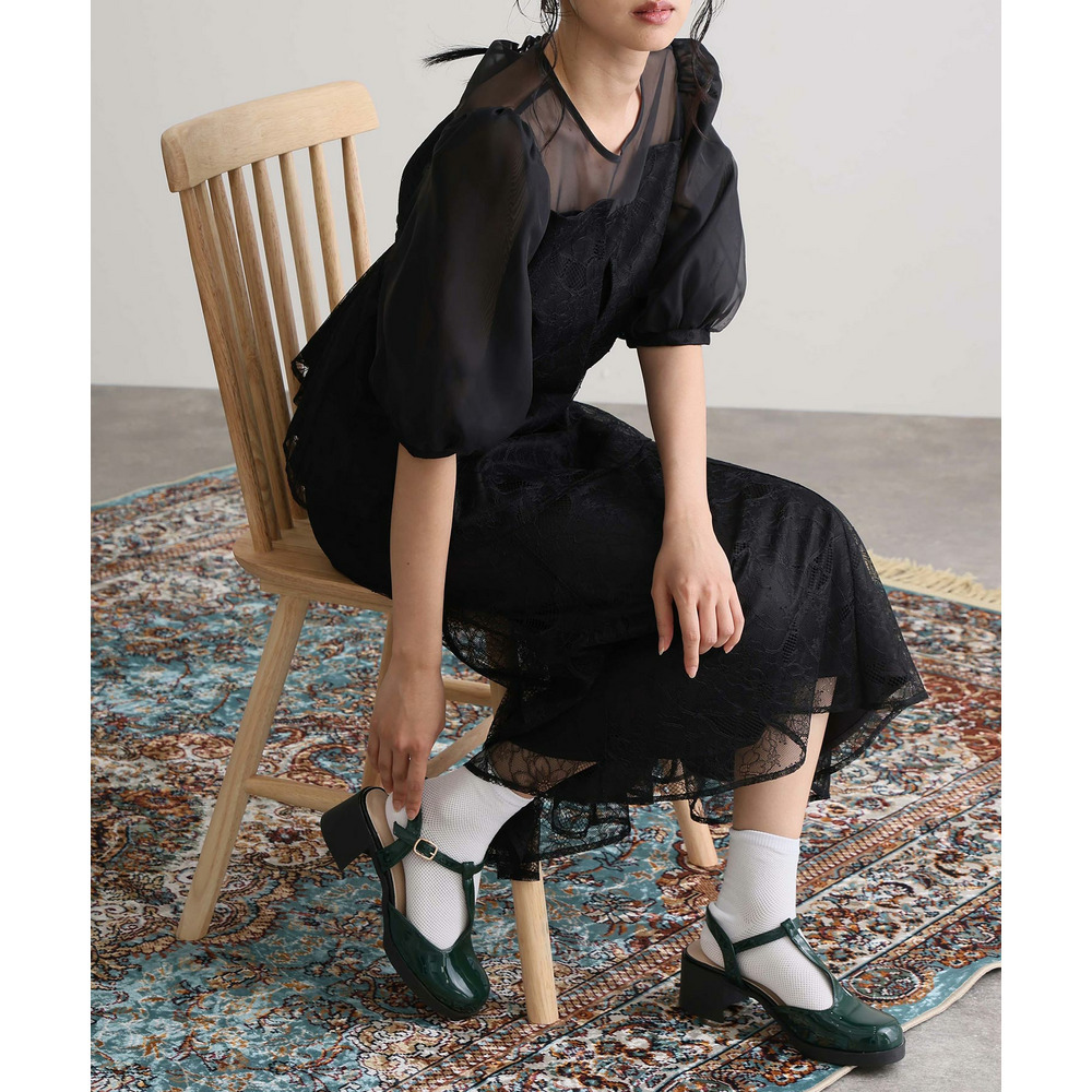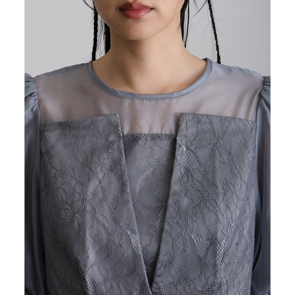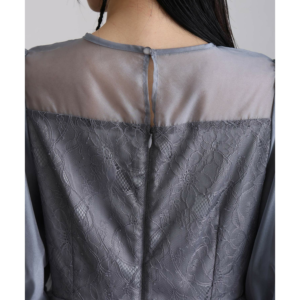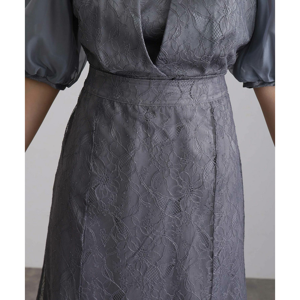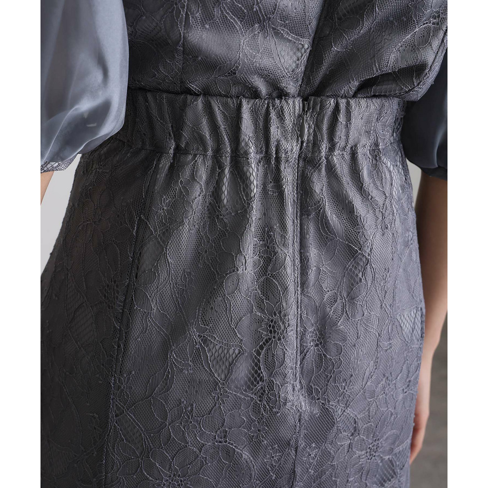 素材 | 【トップス】 レース:ポリエルテル100% オーガンジー:ポリエステル100% 裏地:ポリエステル95% ポリウレタン5% 【スカート】 レース:ポリエルテル100% 裏地:ポリエステル95% ポリウレタン5% |