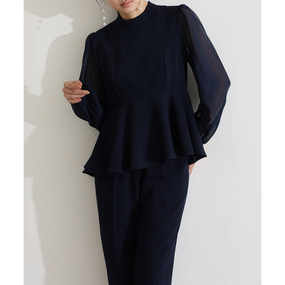 袖はシアー素材で抜け感があり、品よく肌見せができるため、華やかなシーンでも好印象です。