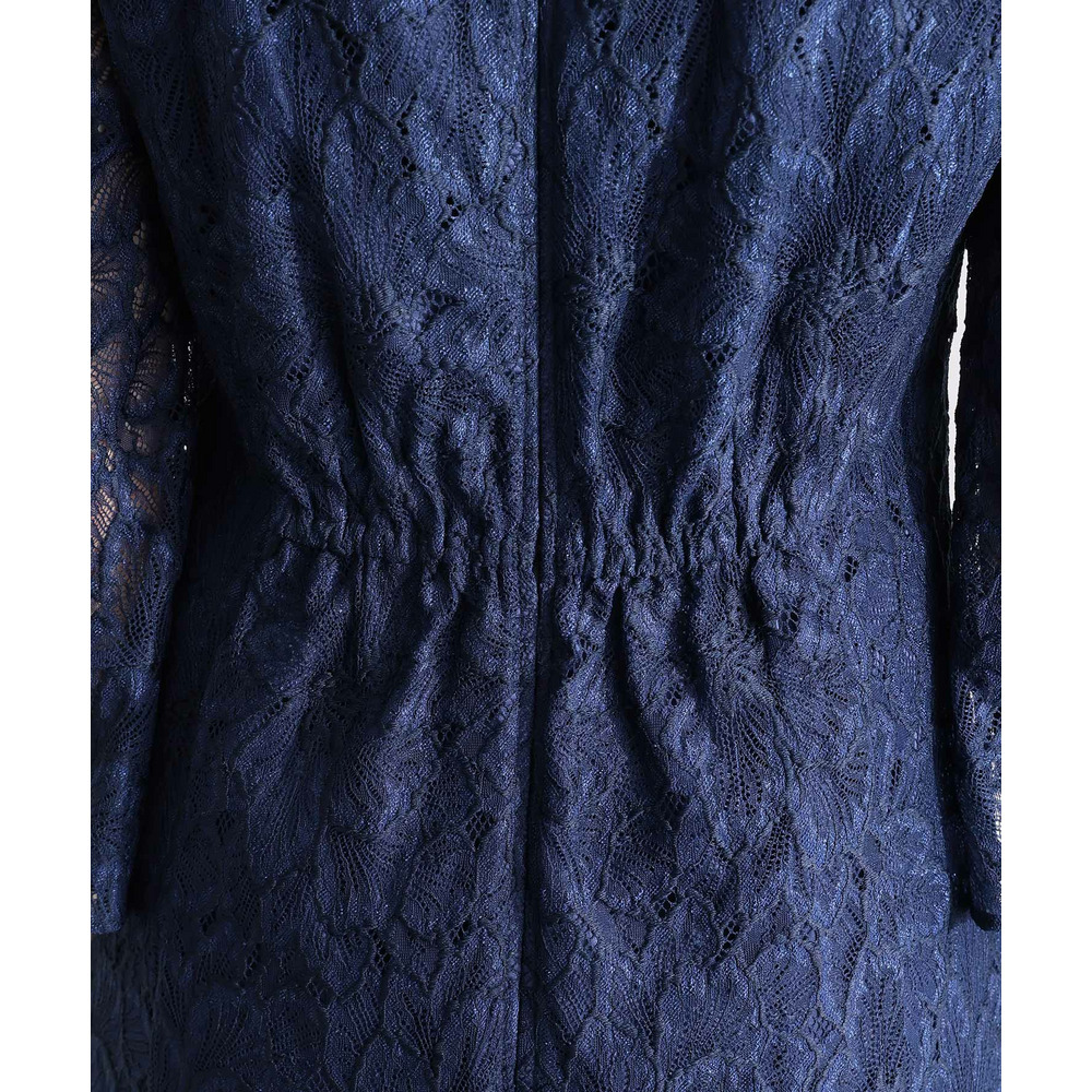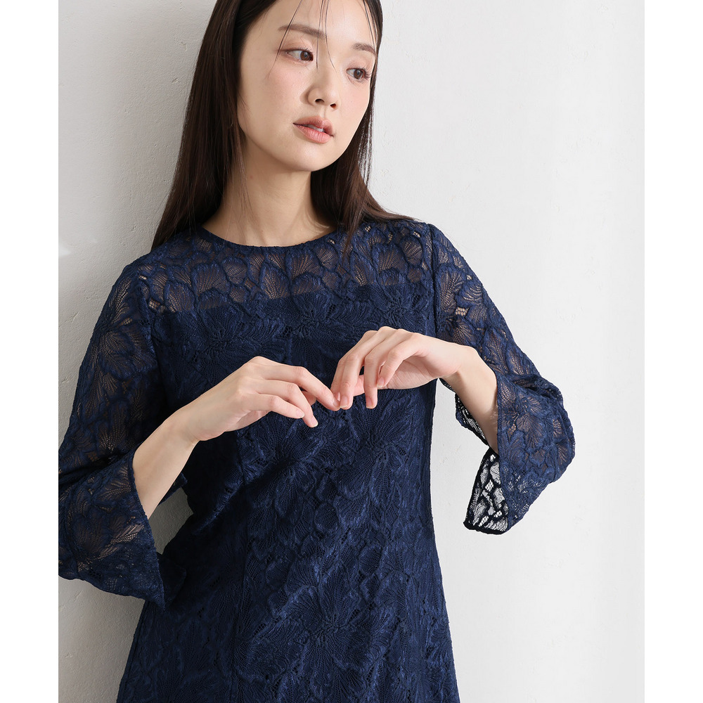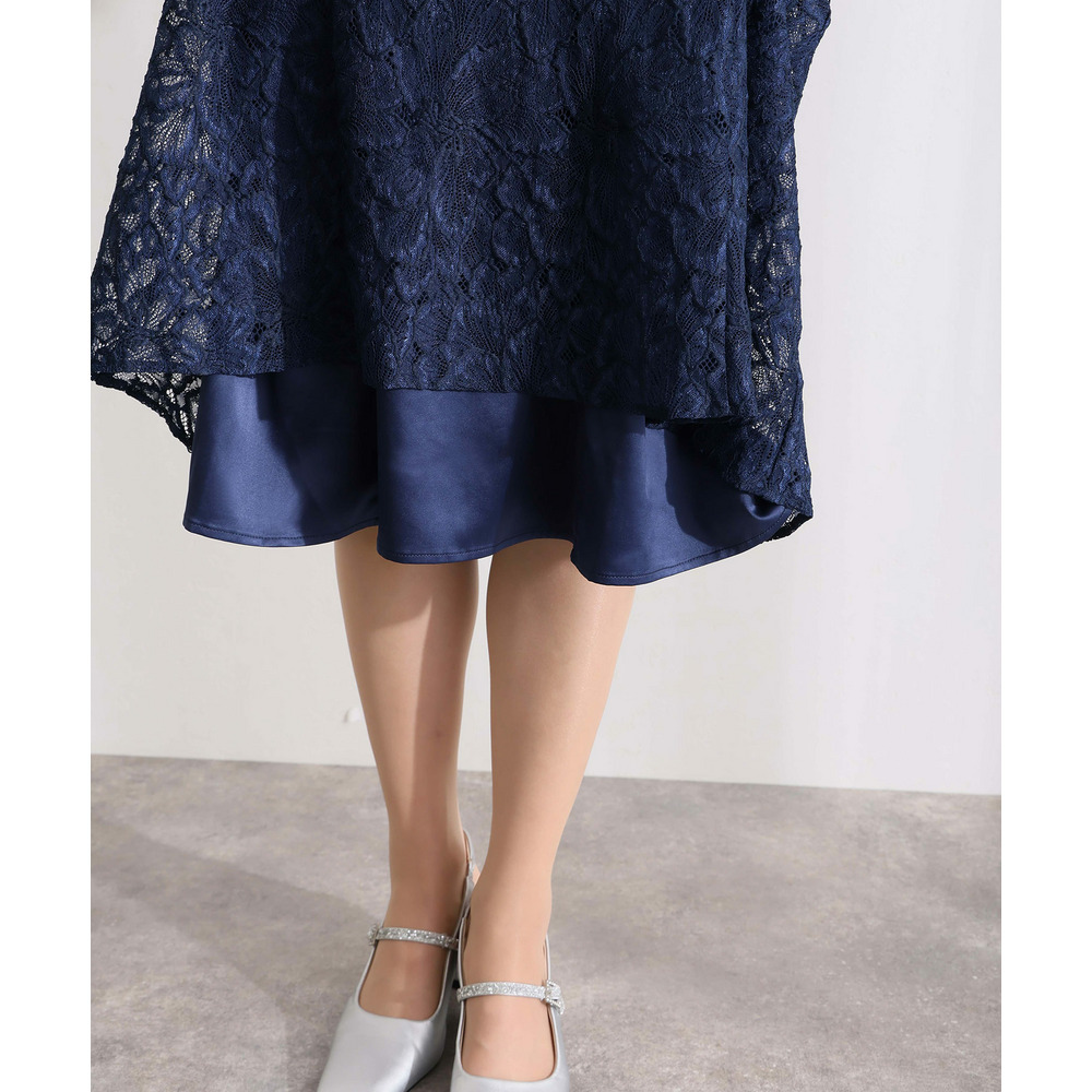 袖と裾にあしらわれた総レースが、華やかさの中にも落ち着きを添えます。