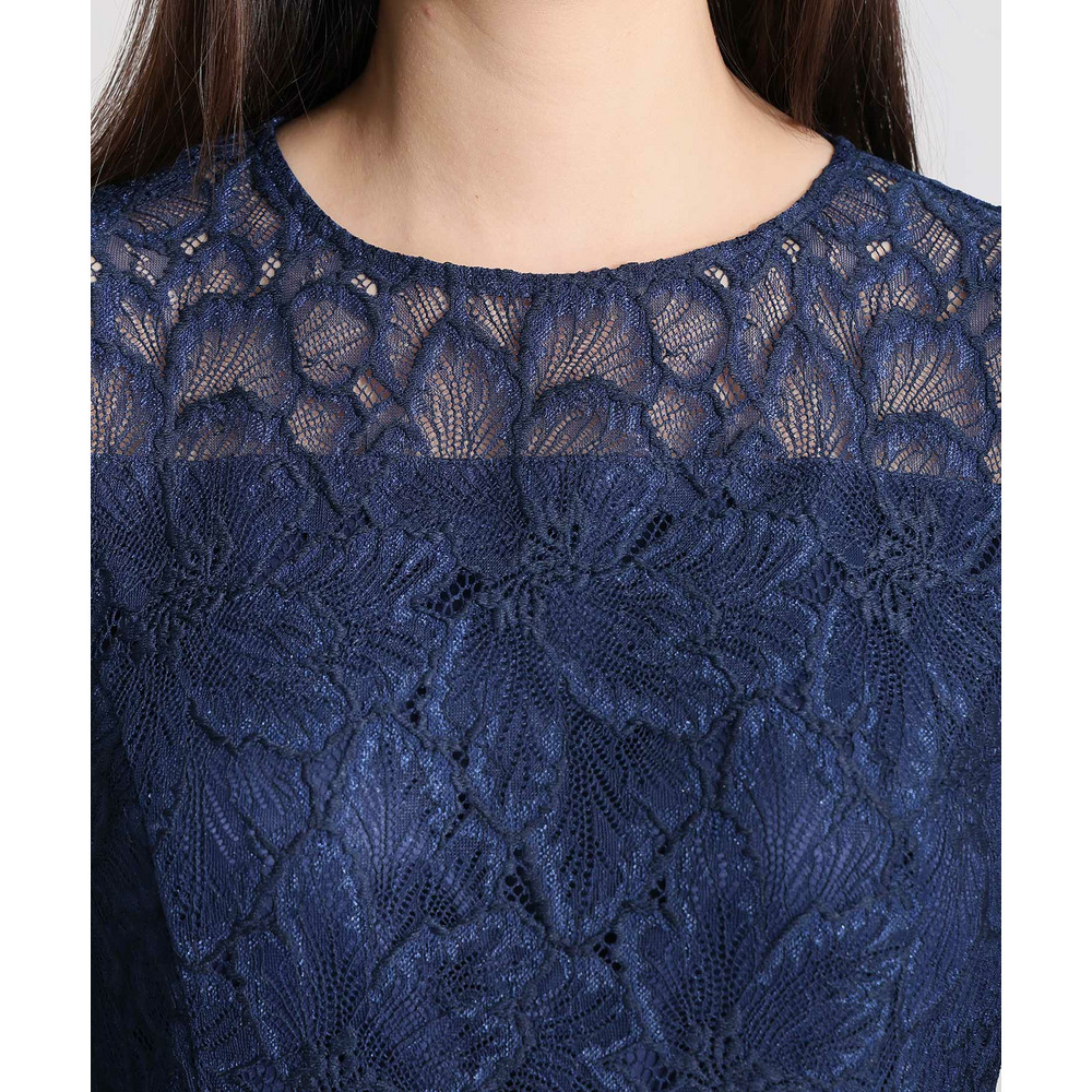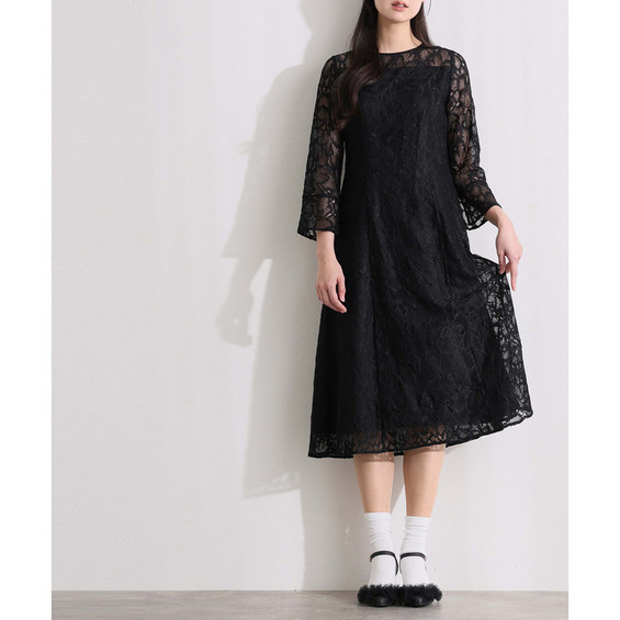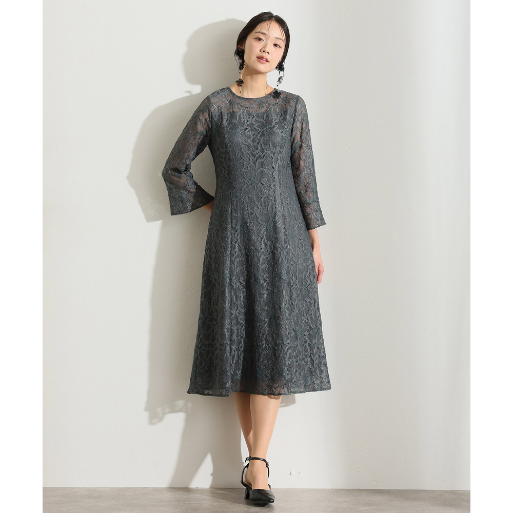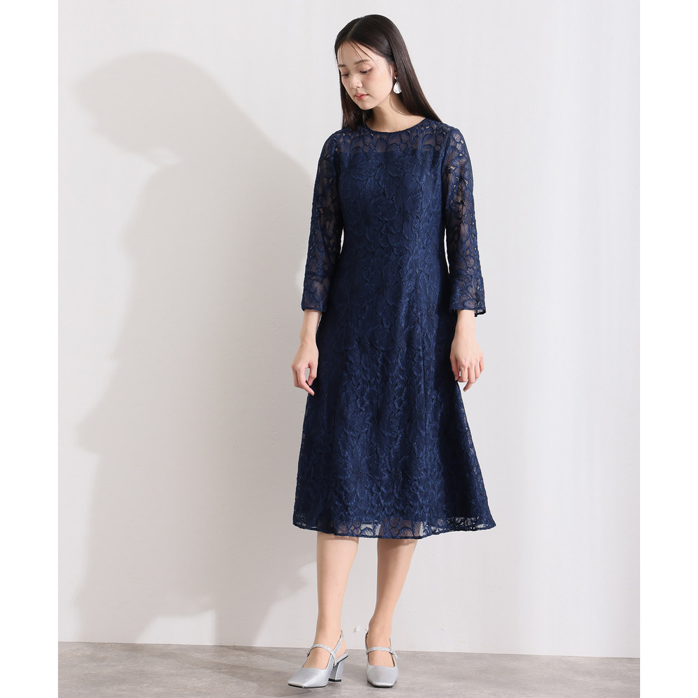 袖と裾にあしらわれた総レースが、華やかさの中にも落ち着きを添えます。