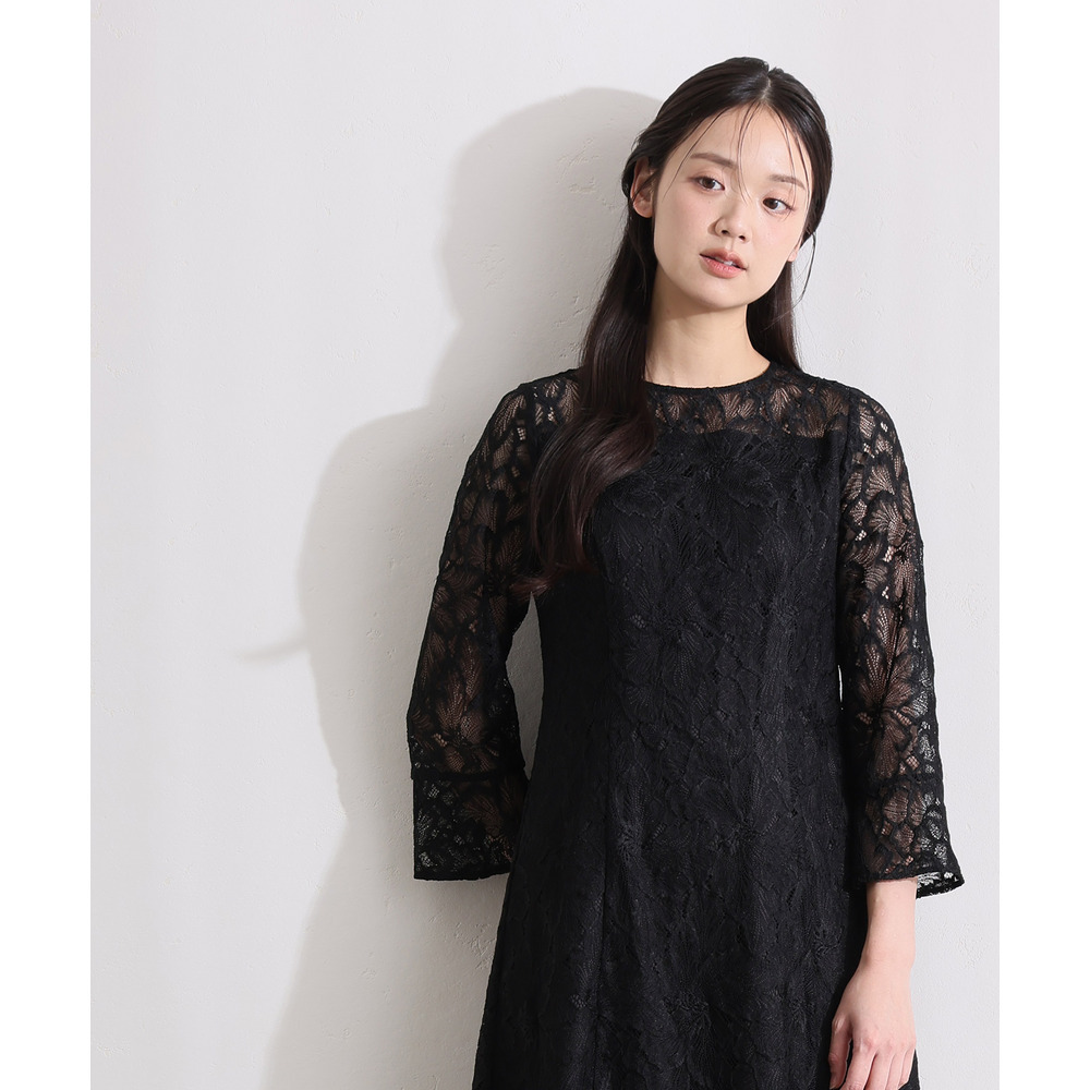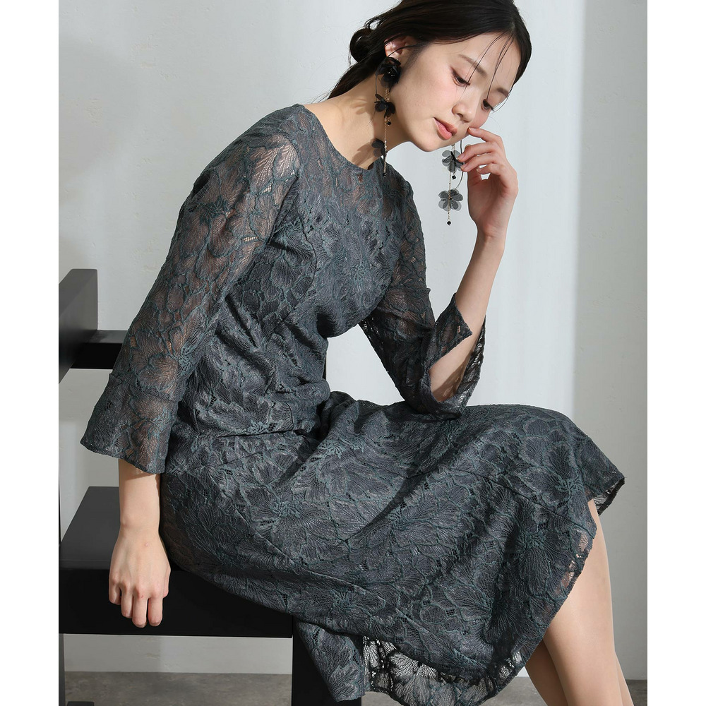 • 総レースベルスリーブフレアドレス1