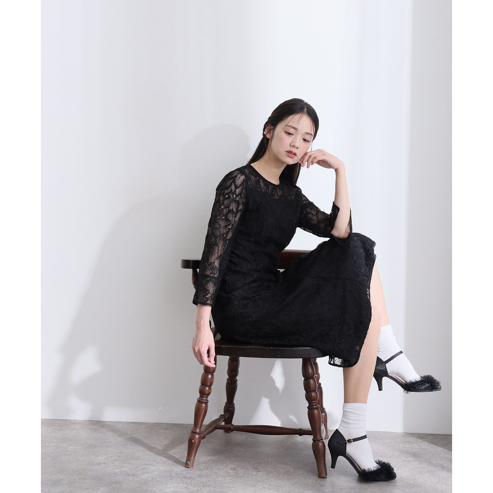 • 総レースベルスリーブフレアドレス19
