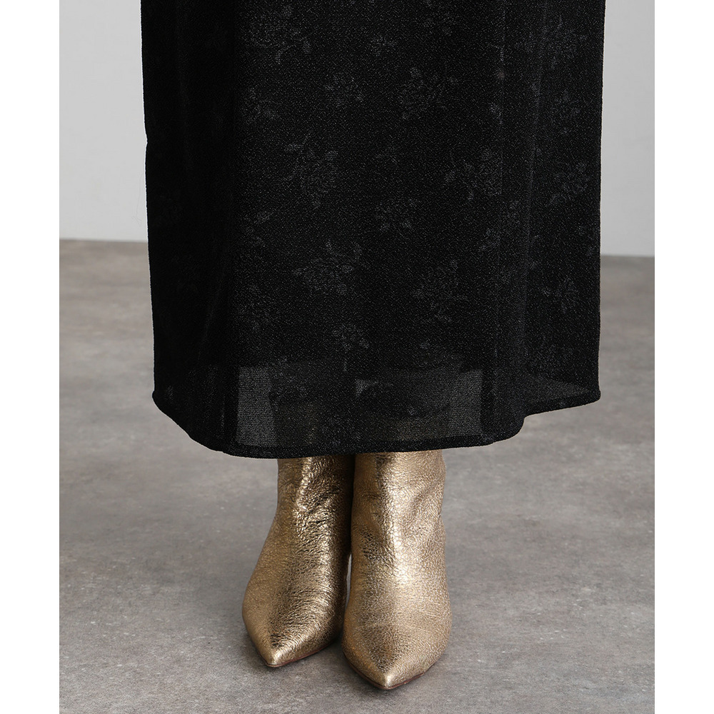 光沢のある生地に花柄を施し、1枚でもさらりと着映えるデザイン