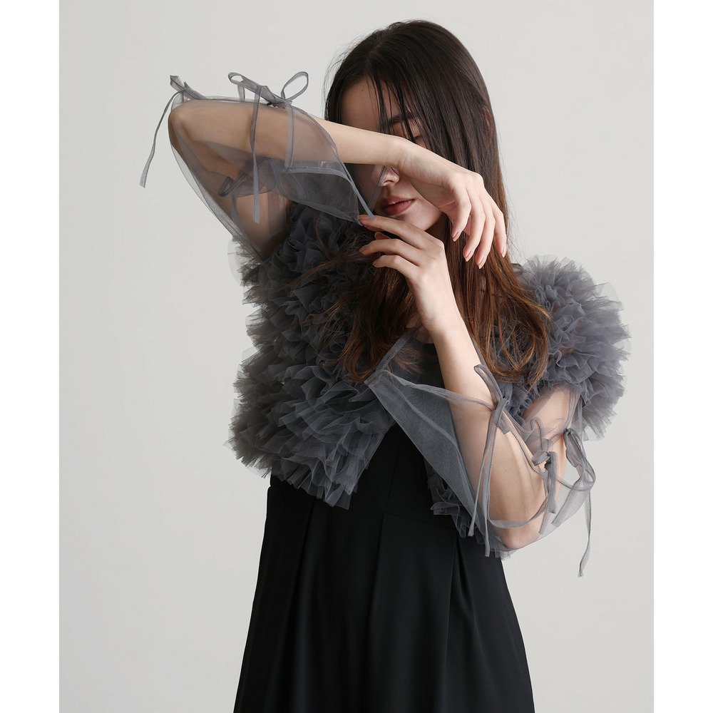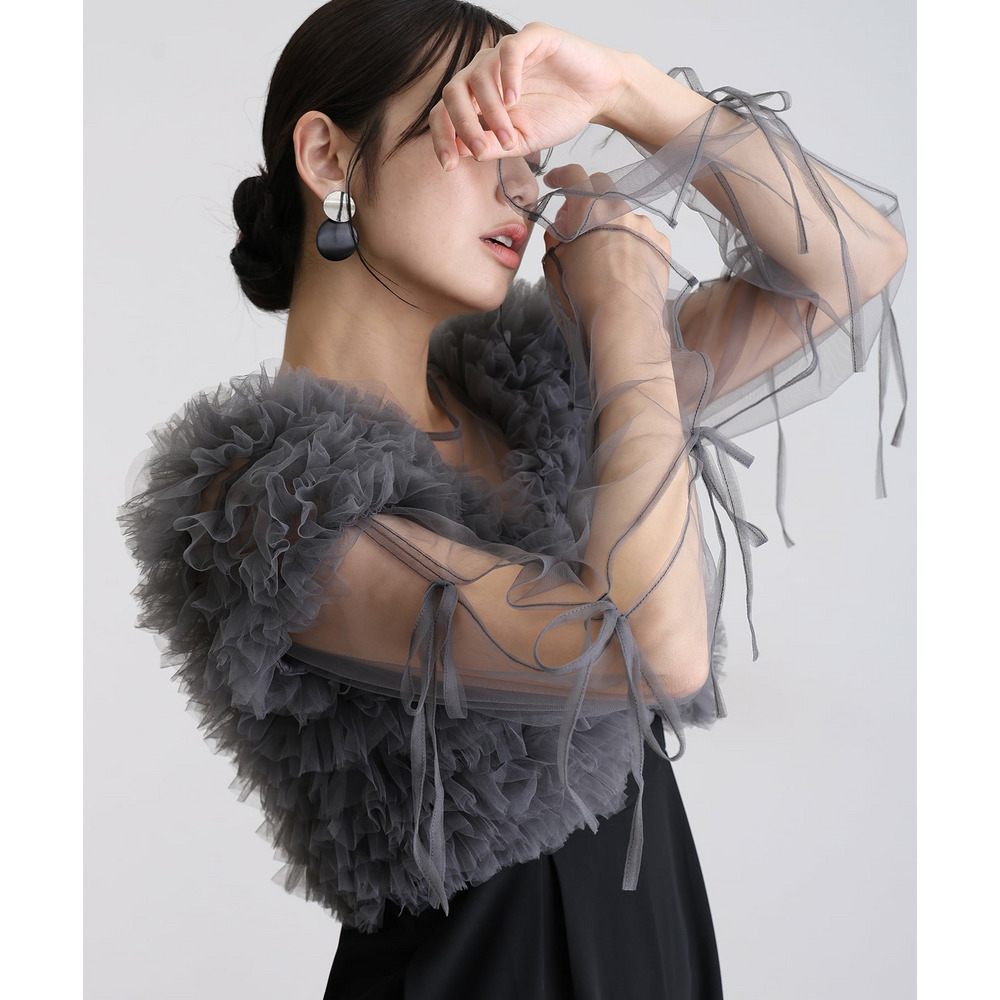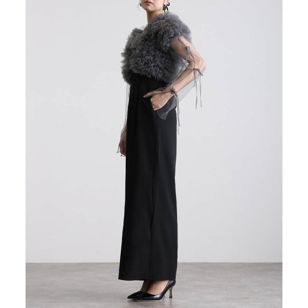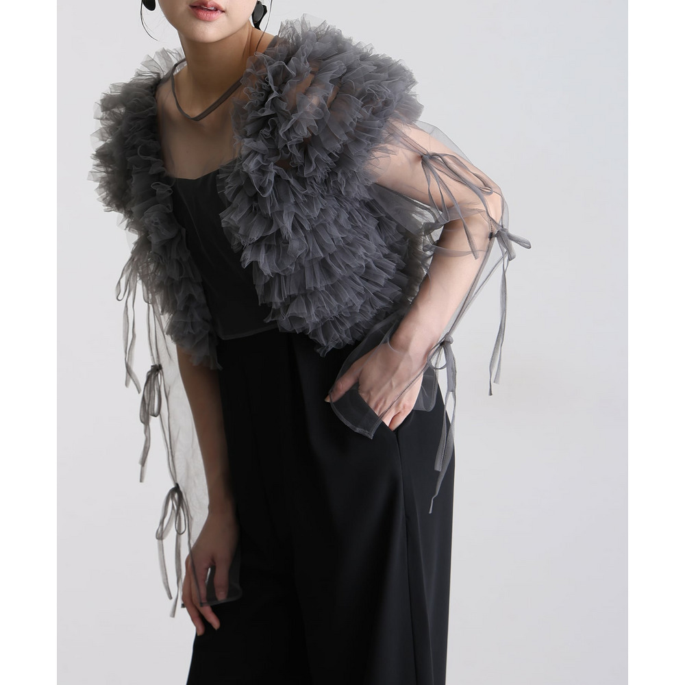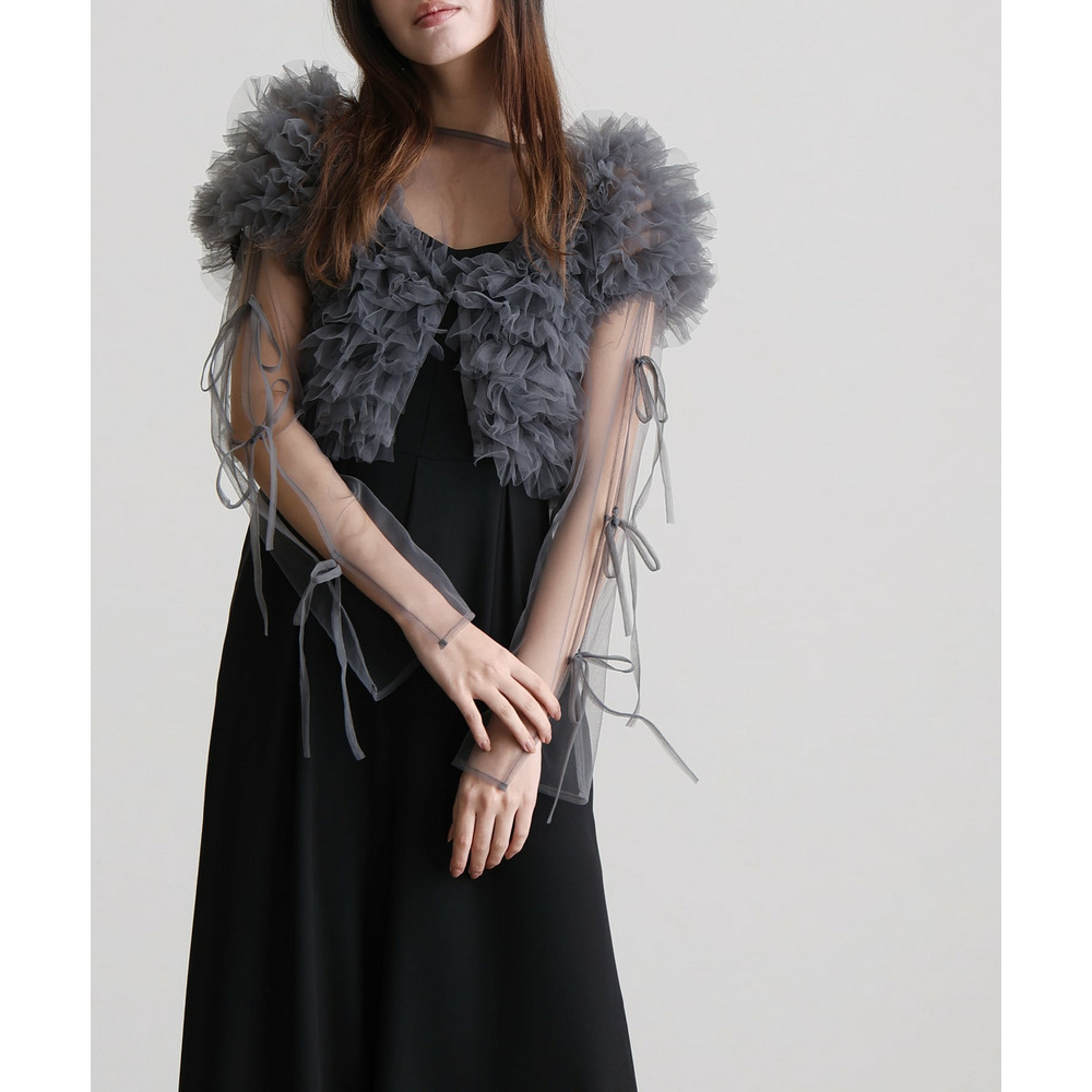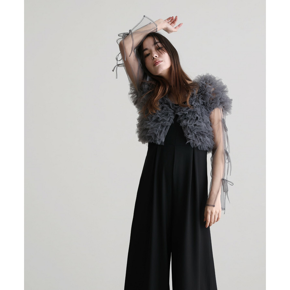 軽やかでボリュームのあるボレロが目を惹き、上半身に存在感をプラス。