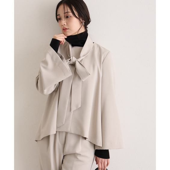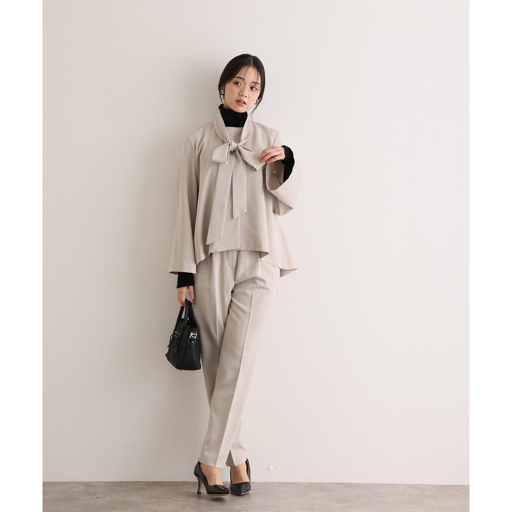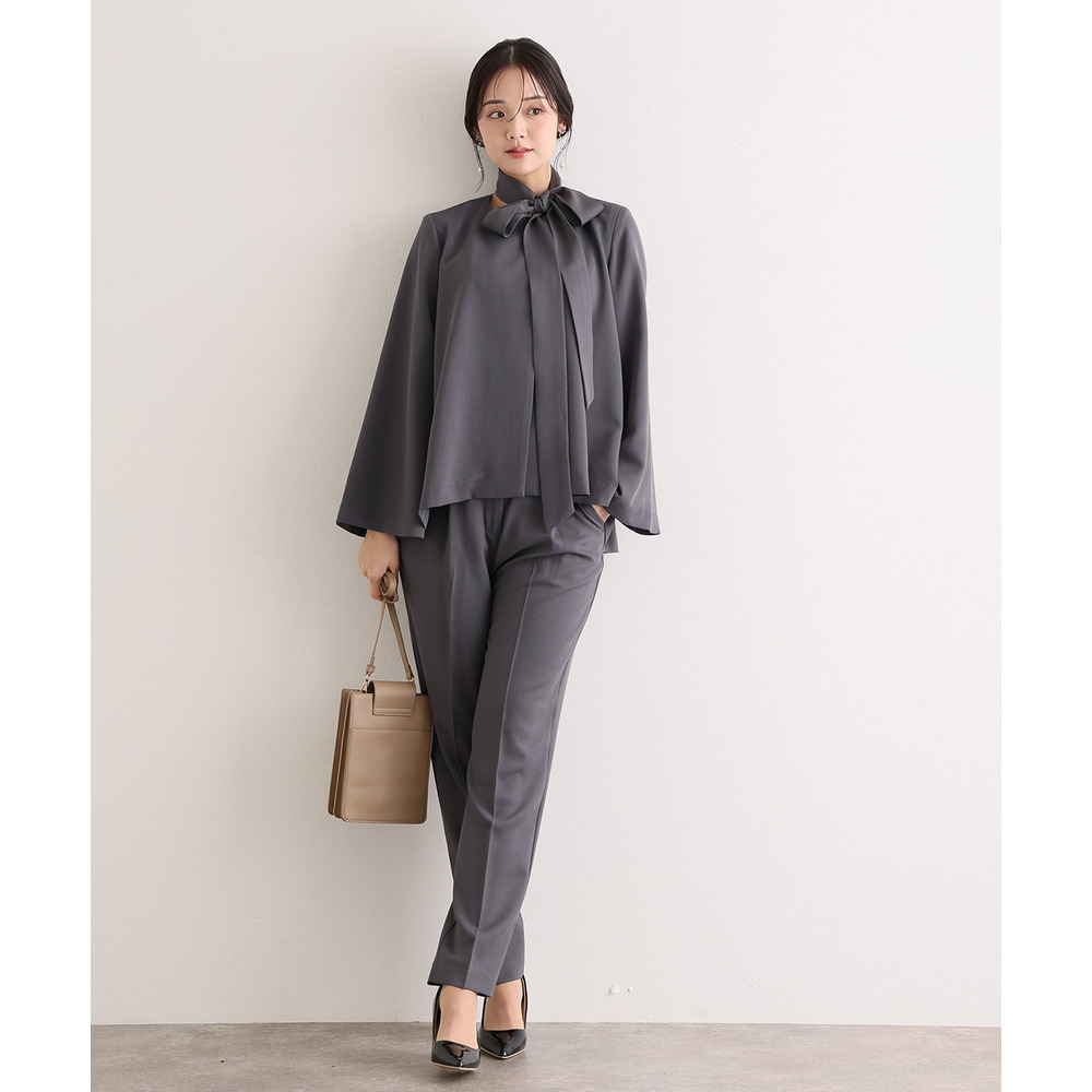 ふんわりと広がるフレアスリーブが優雅な印象を演出。フォーマルにもオフィスにも映える、万能な大人セットアップです。
