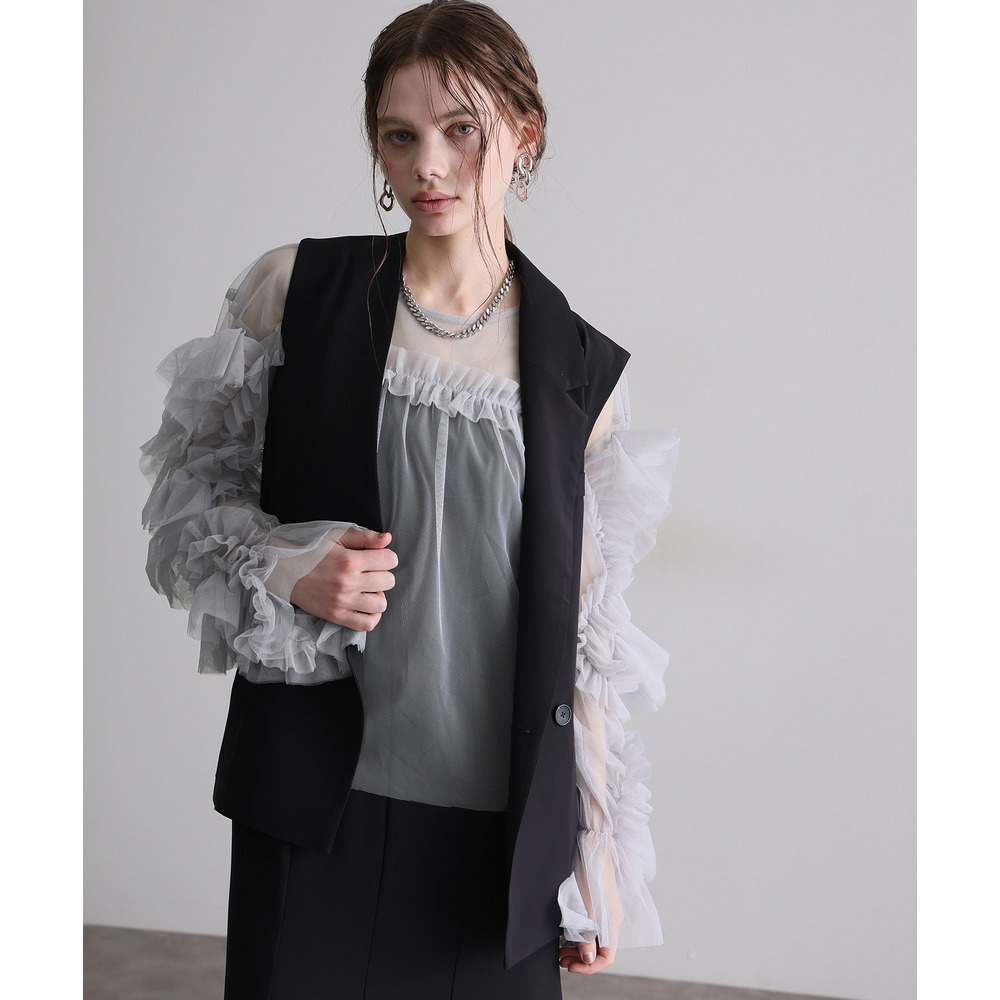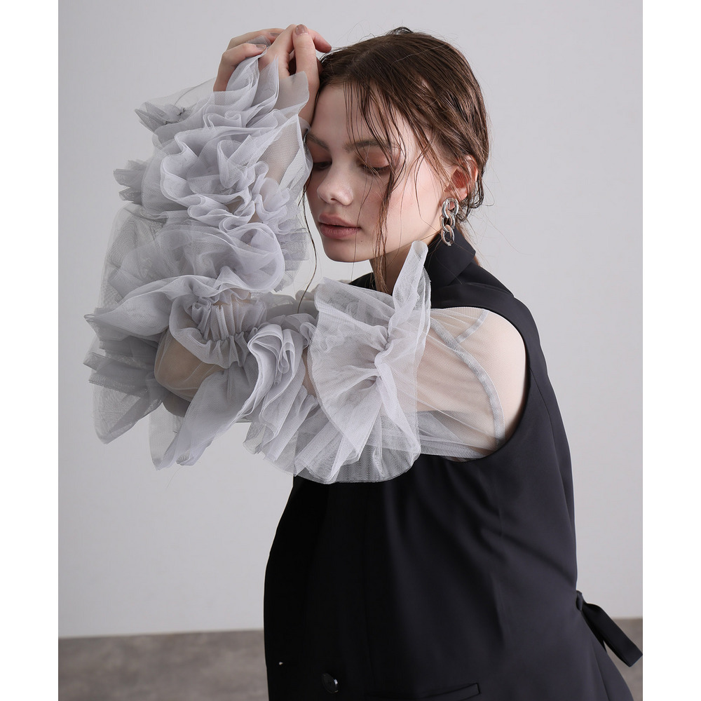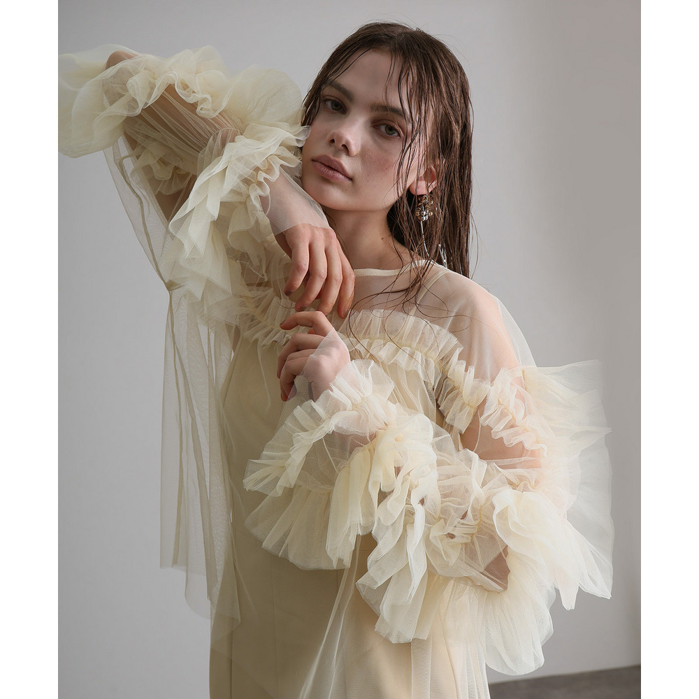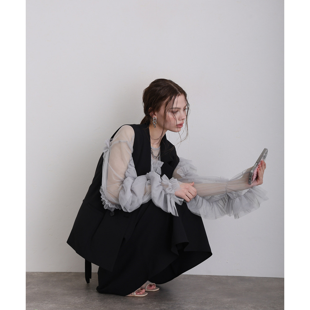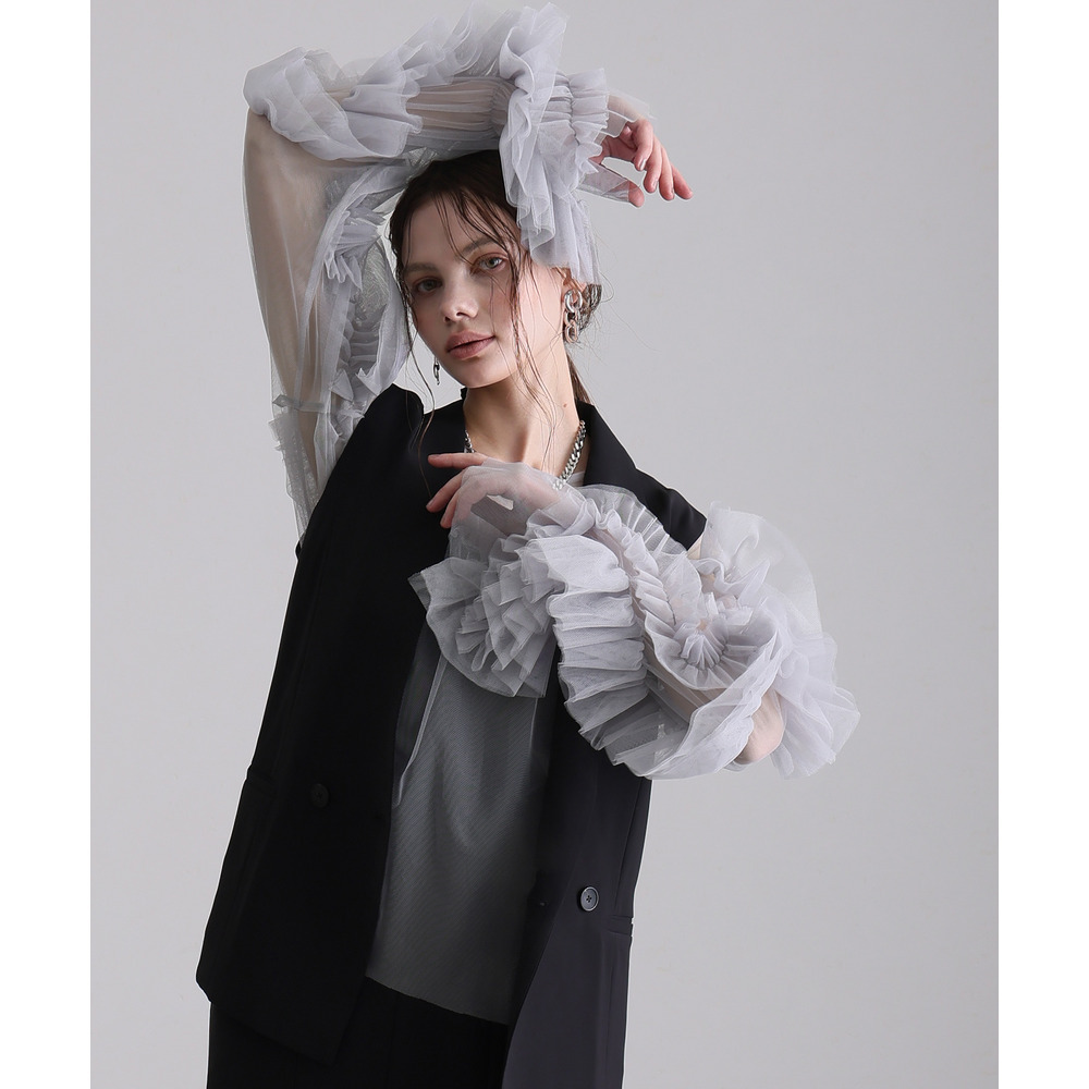 ふんわりとしたチュール袖が女性らしい華やぎをプラス。