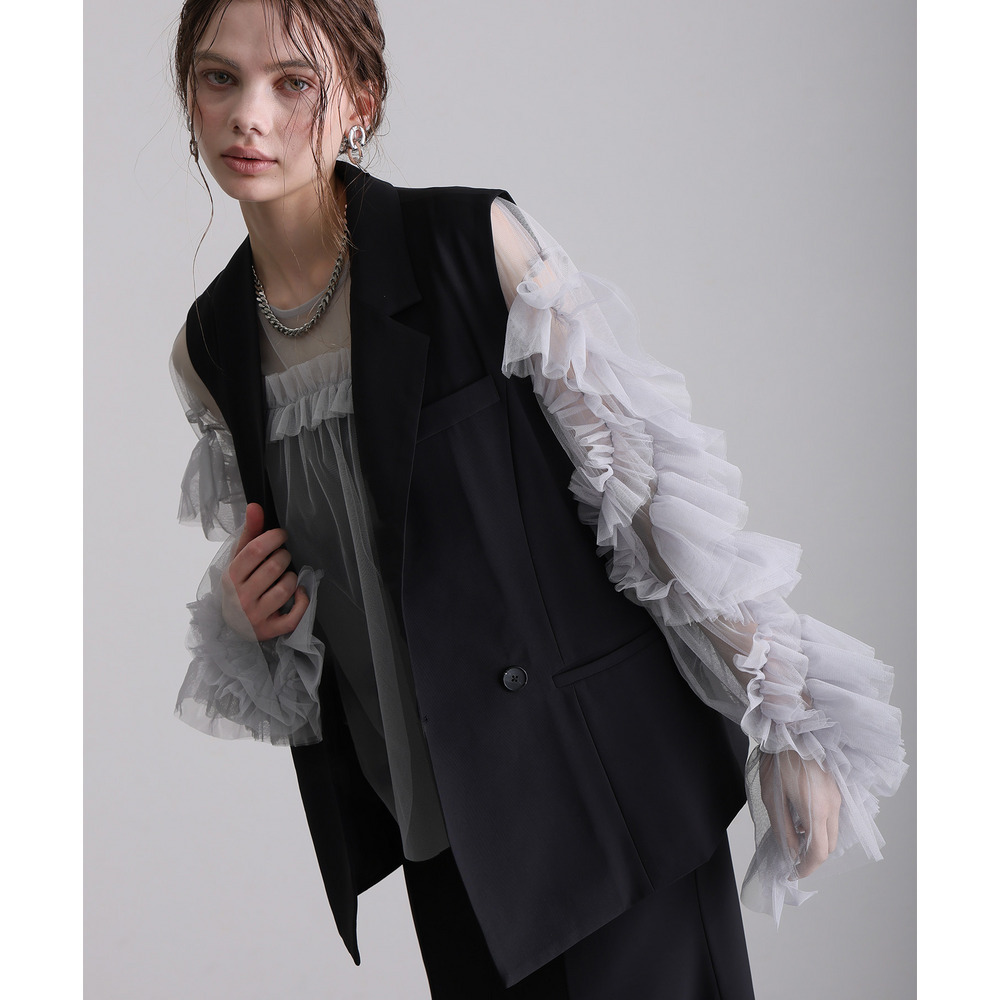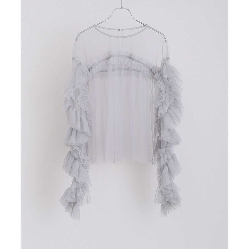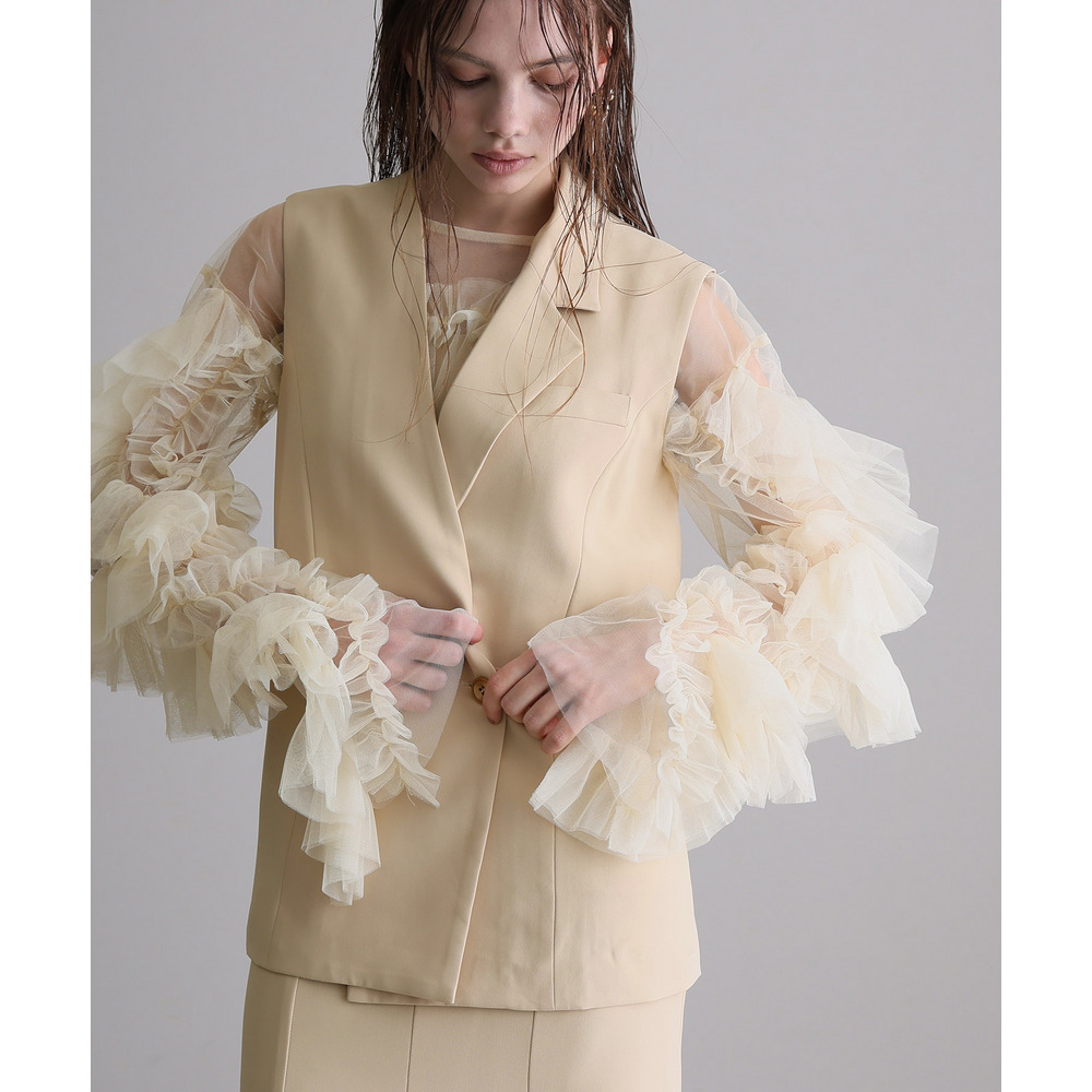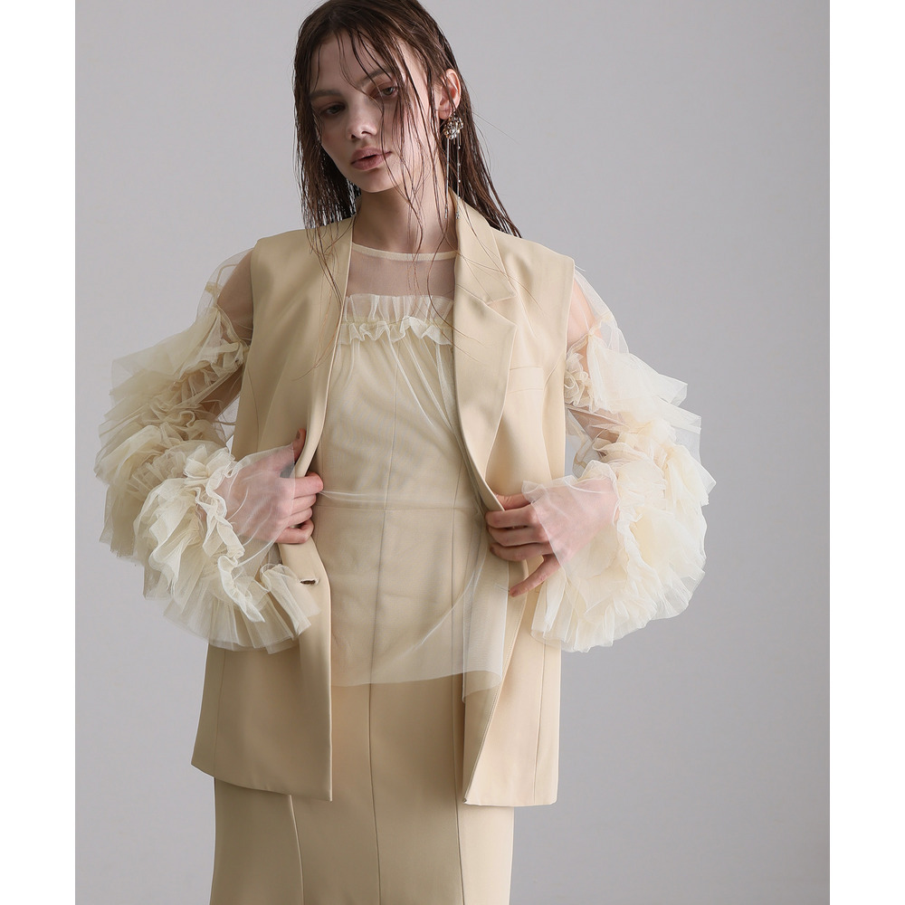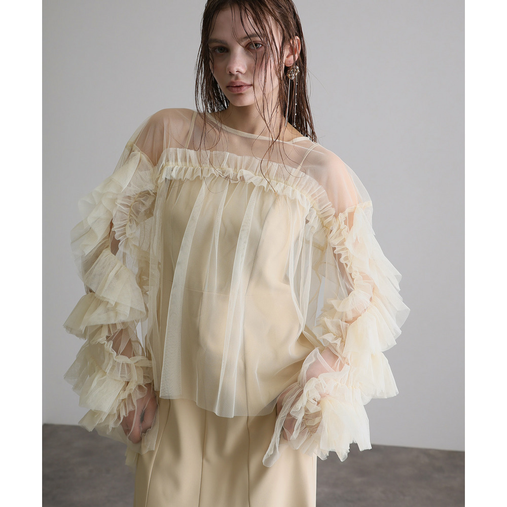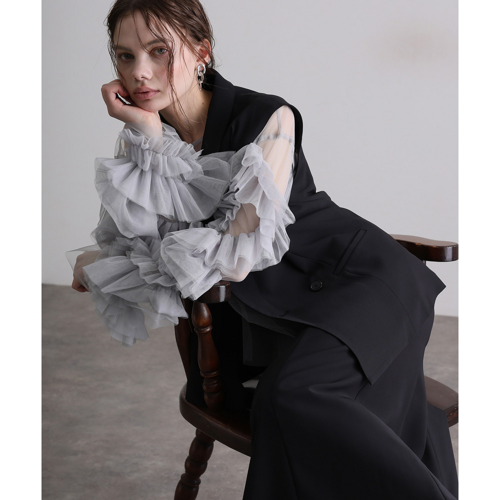 ふんわりとしたチュール袖が女性らしい華やぎをプラス。