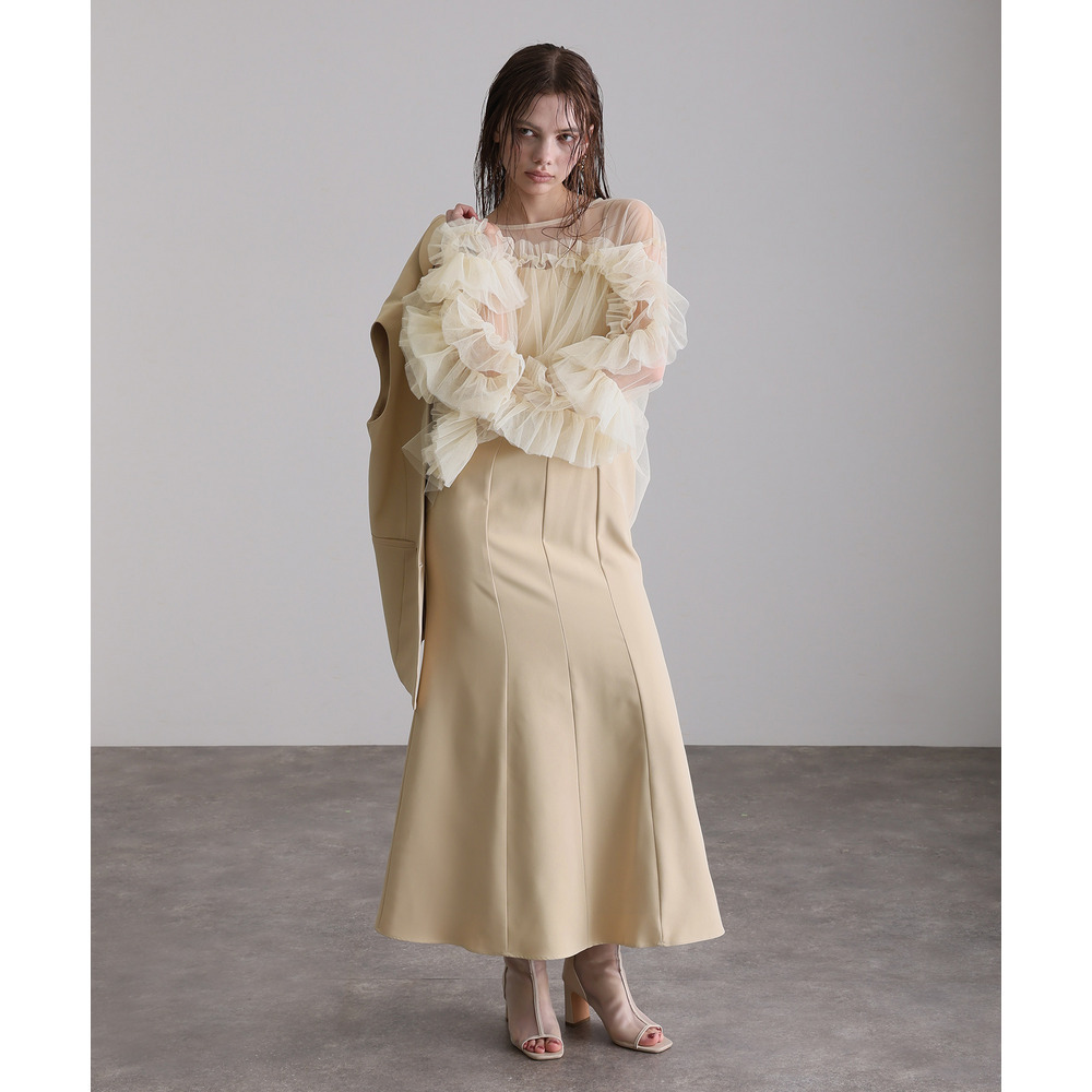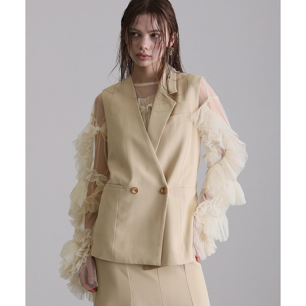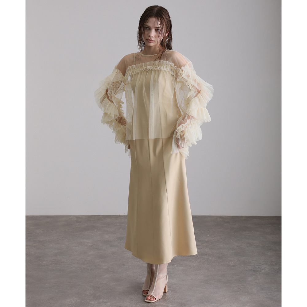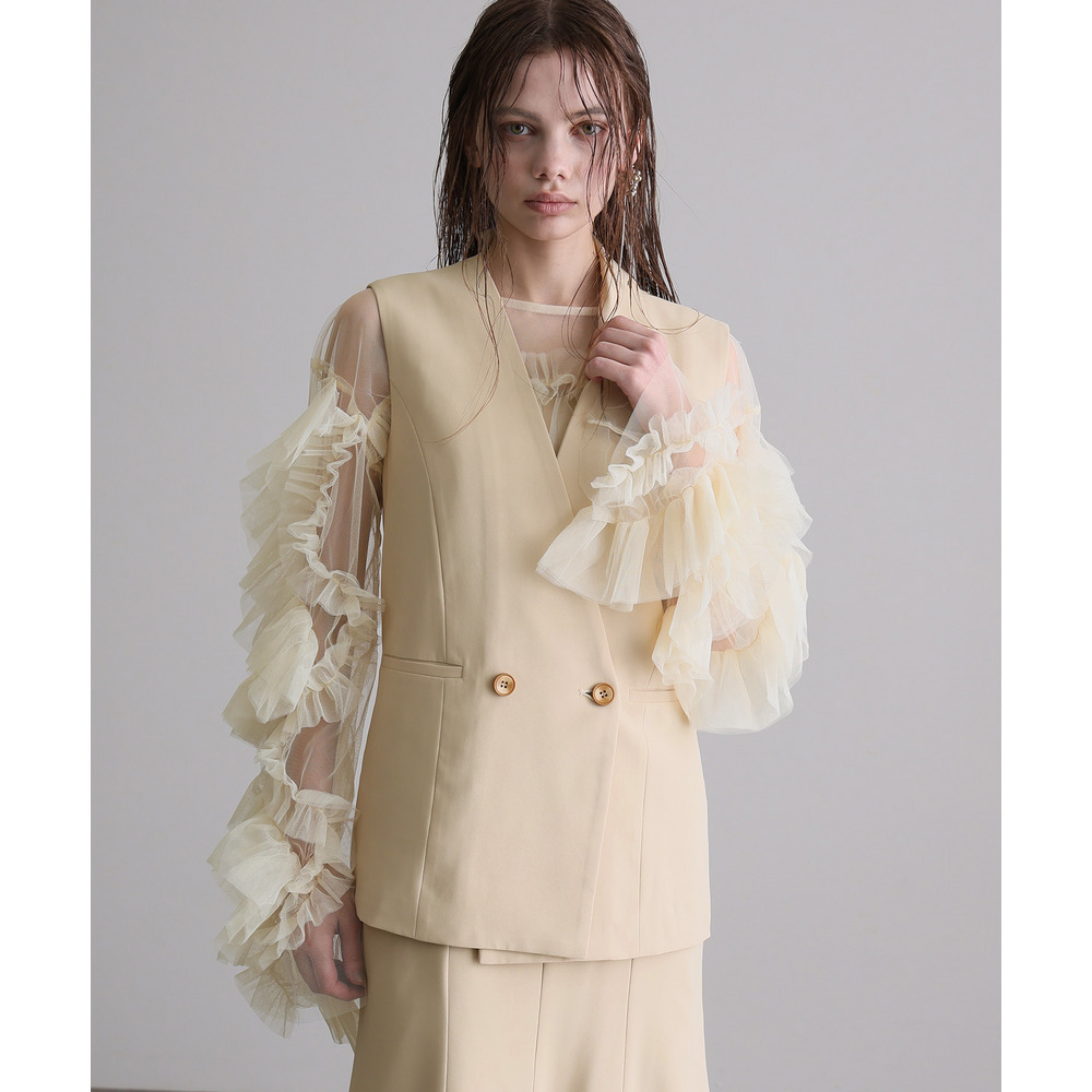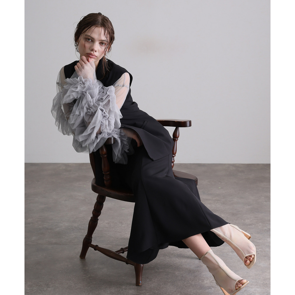 ふんわりとしたチュール袖が女性らしい華やぎをプラス。