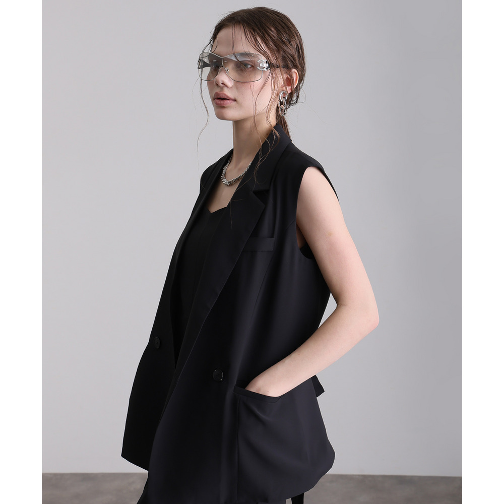 ジレを合わせることで全体を引き締め、モードな印象にまとめます。