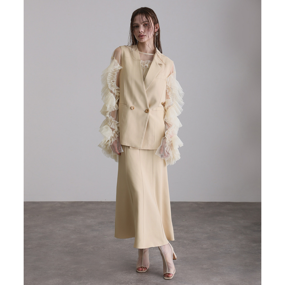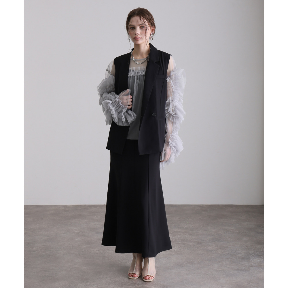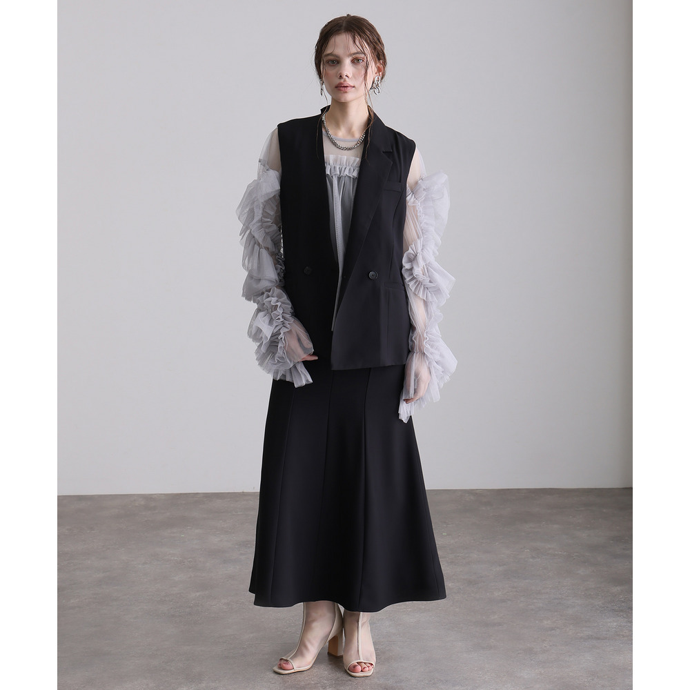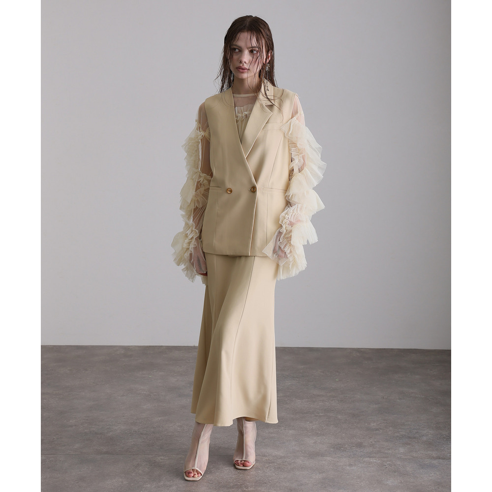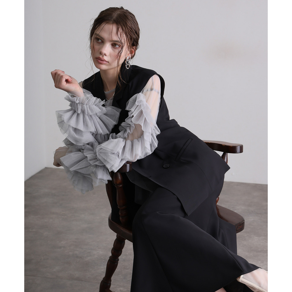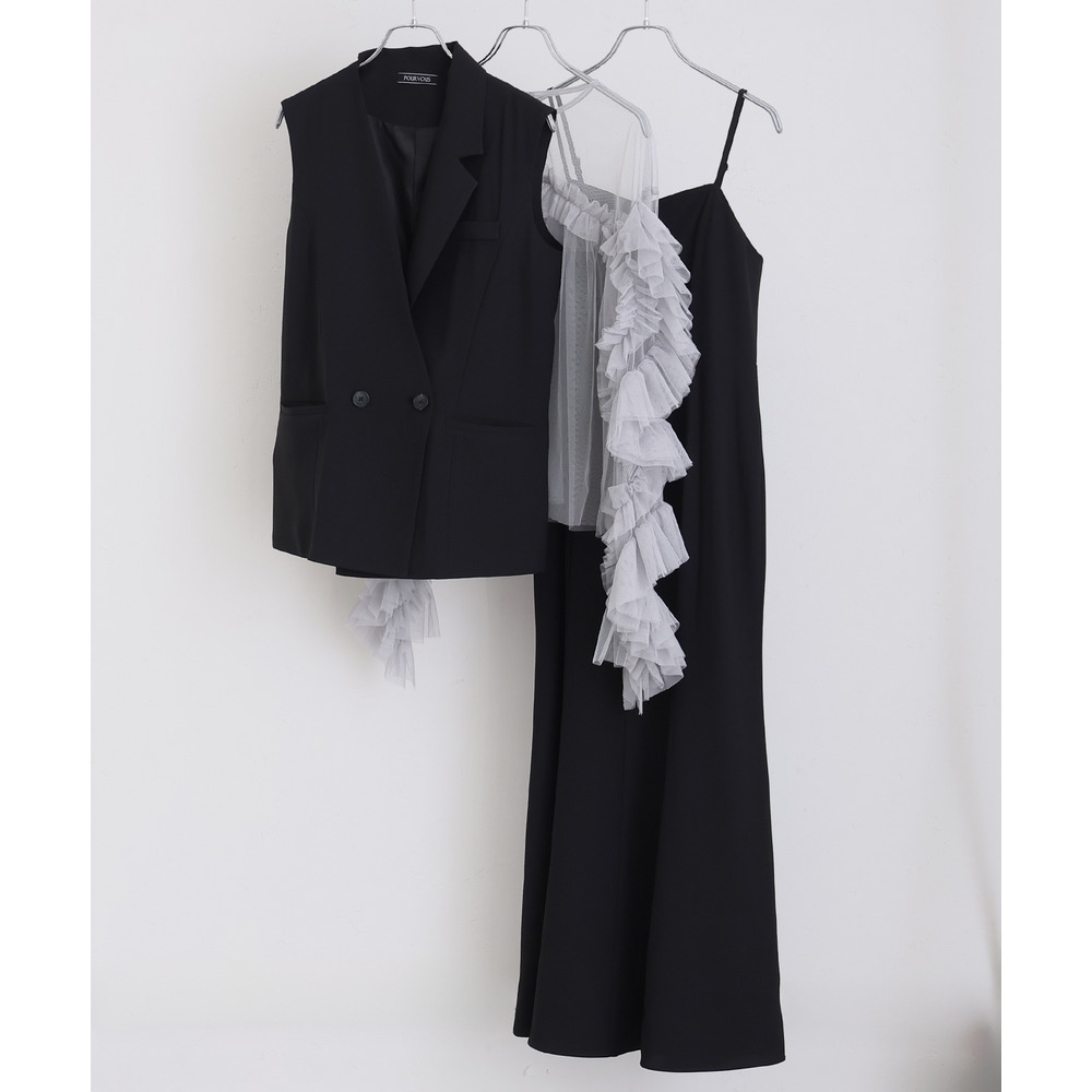チュールブラウス・ジレ・ワンピースの3点が揃ったセットドレス。