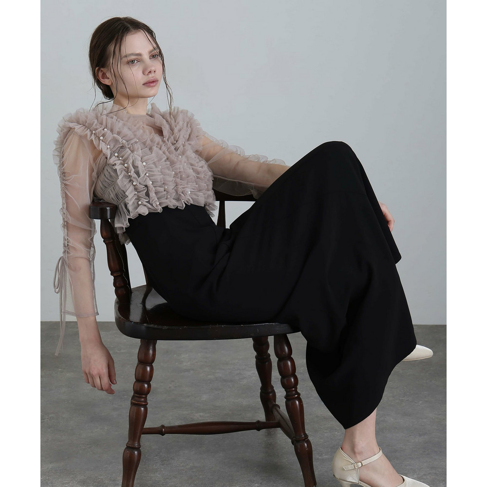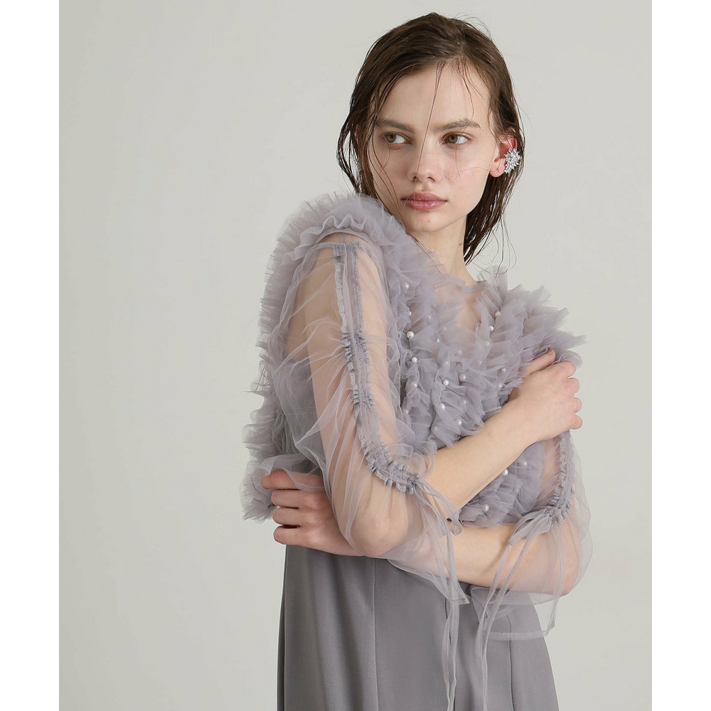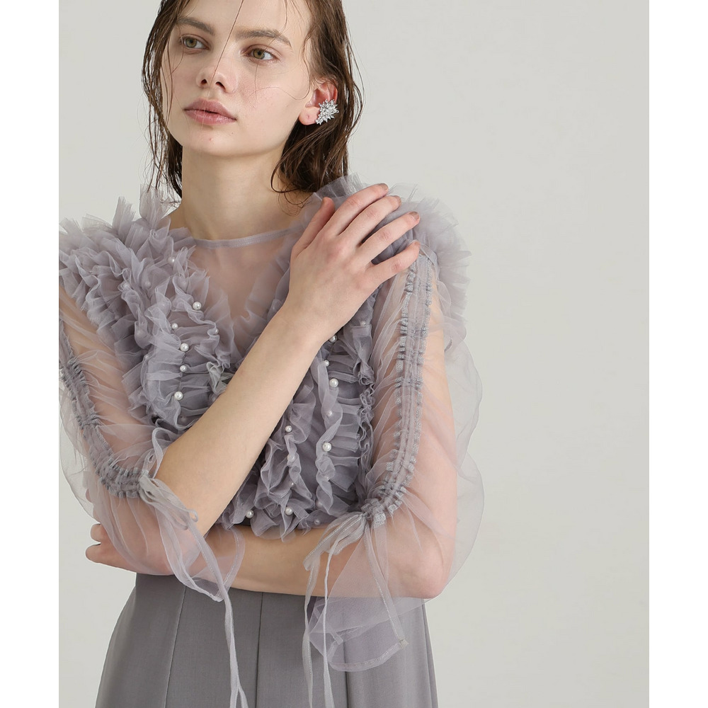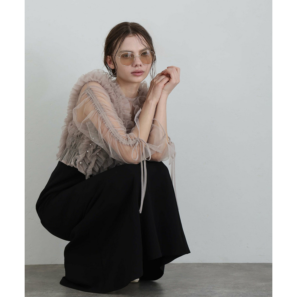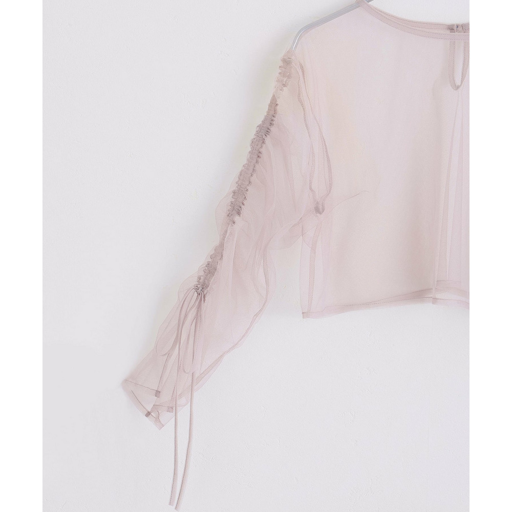 シアー素材の袖が軽やかな抜け感と上品さを演出