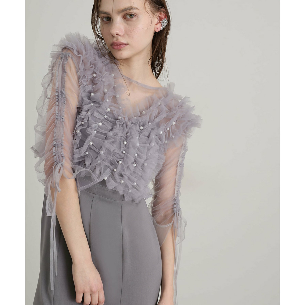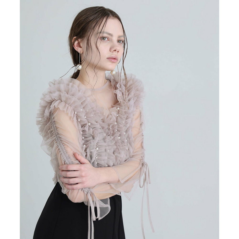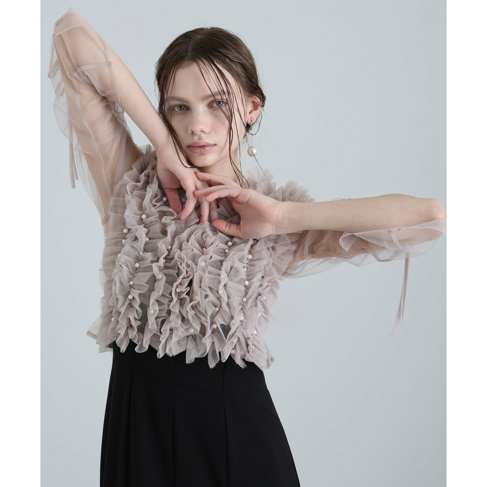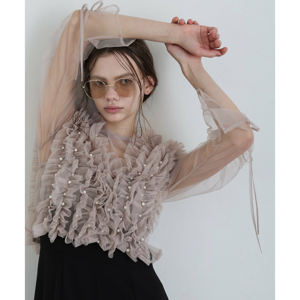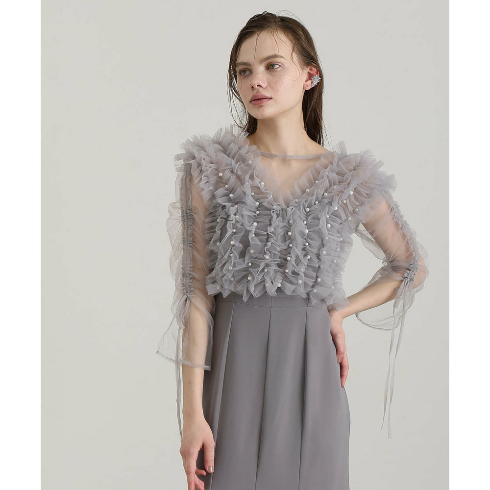 シアー素材の袖が軽やかな抜け感と上品さを演出