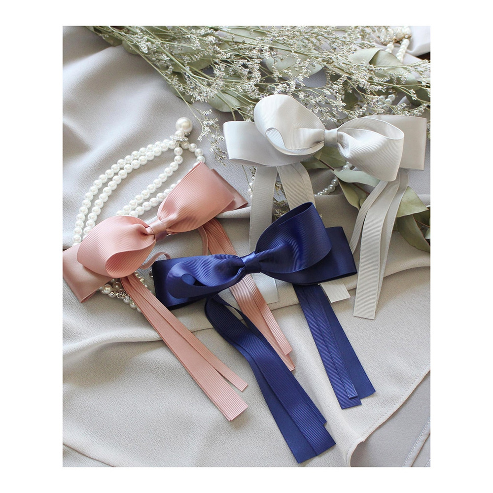 グログランとサテンを重ねた上品なリボンアイテム。様々なヘアスタイルに対応出来る優秀アイテムです。