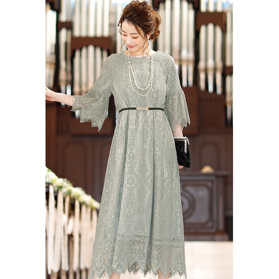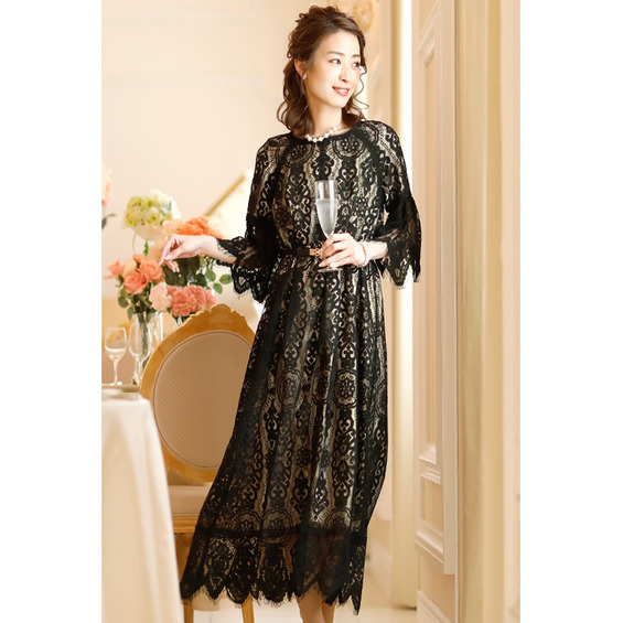 プールヴーのスカラップレースドレス・結婚式・お呼ばれワンピース・パーティードレス