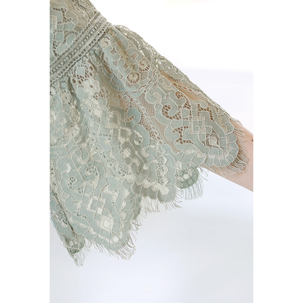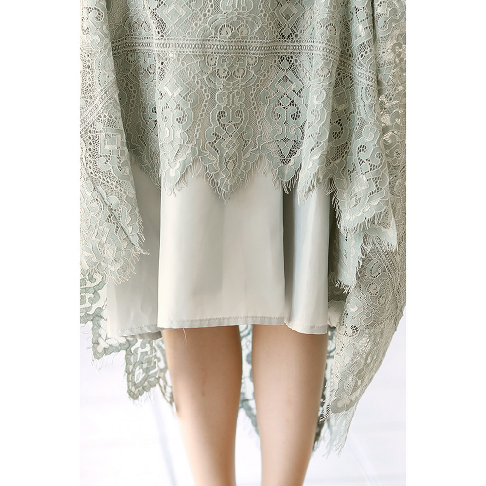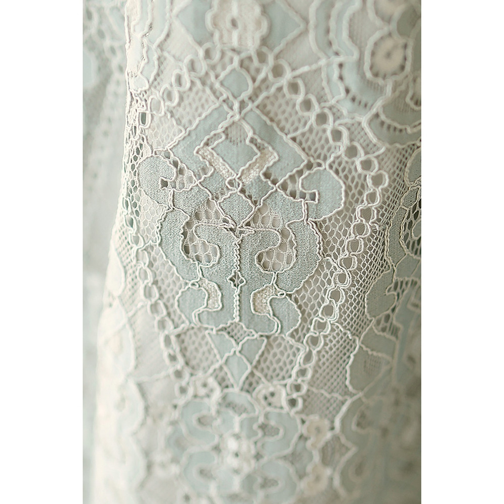 繊細なコードレースを使用した袖と裾のスカラップ、大きなレース柄が華やかで豪華な印象に♪