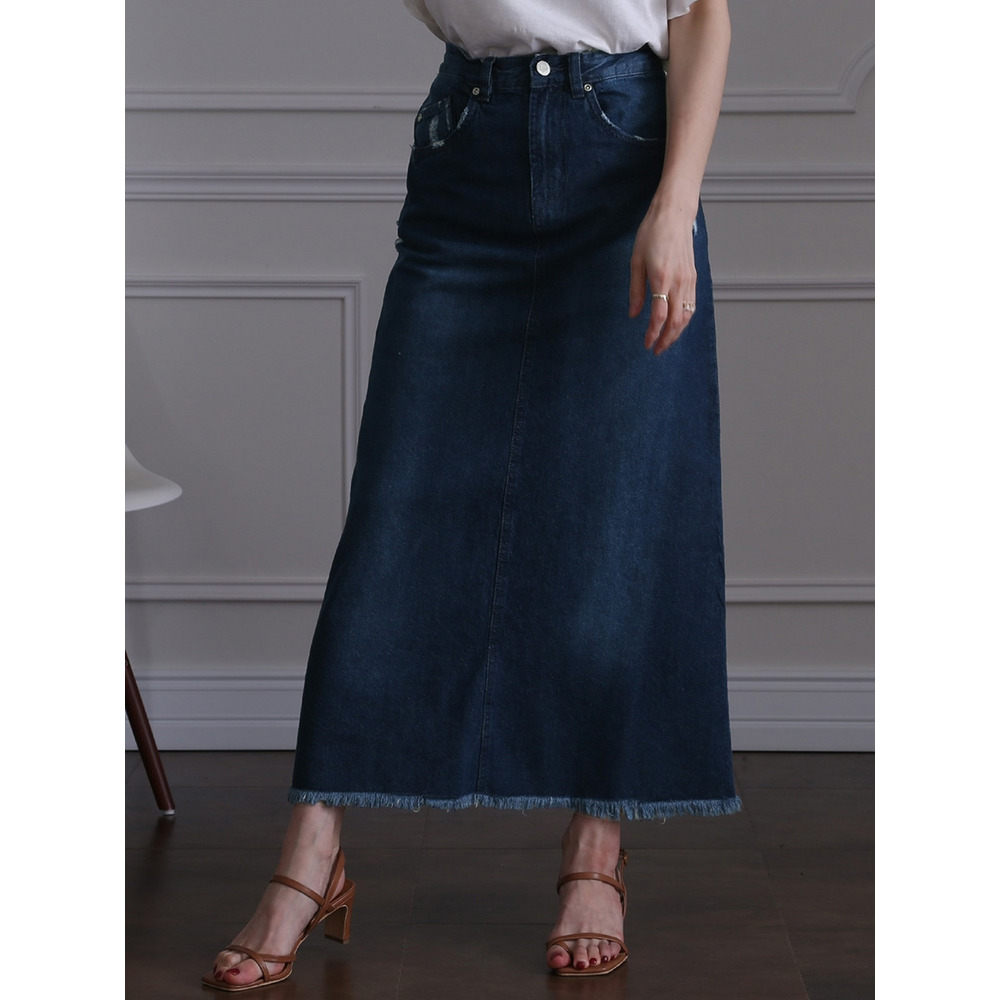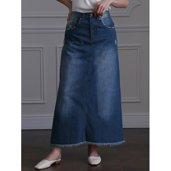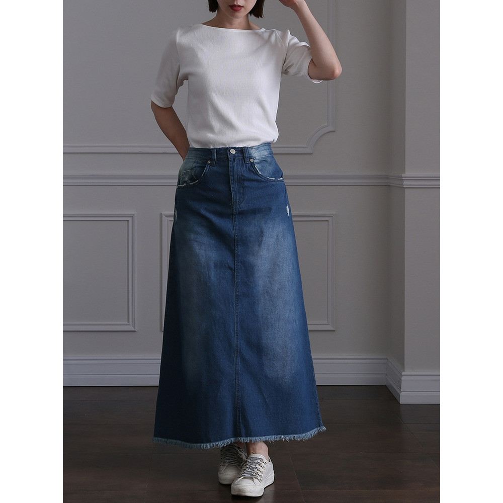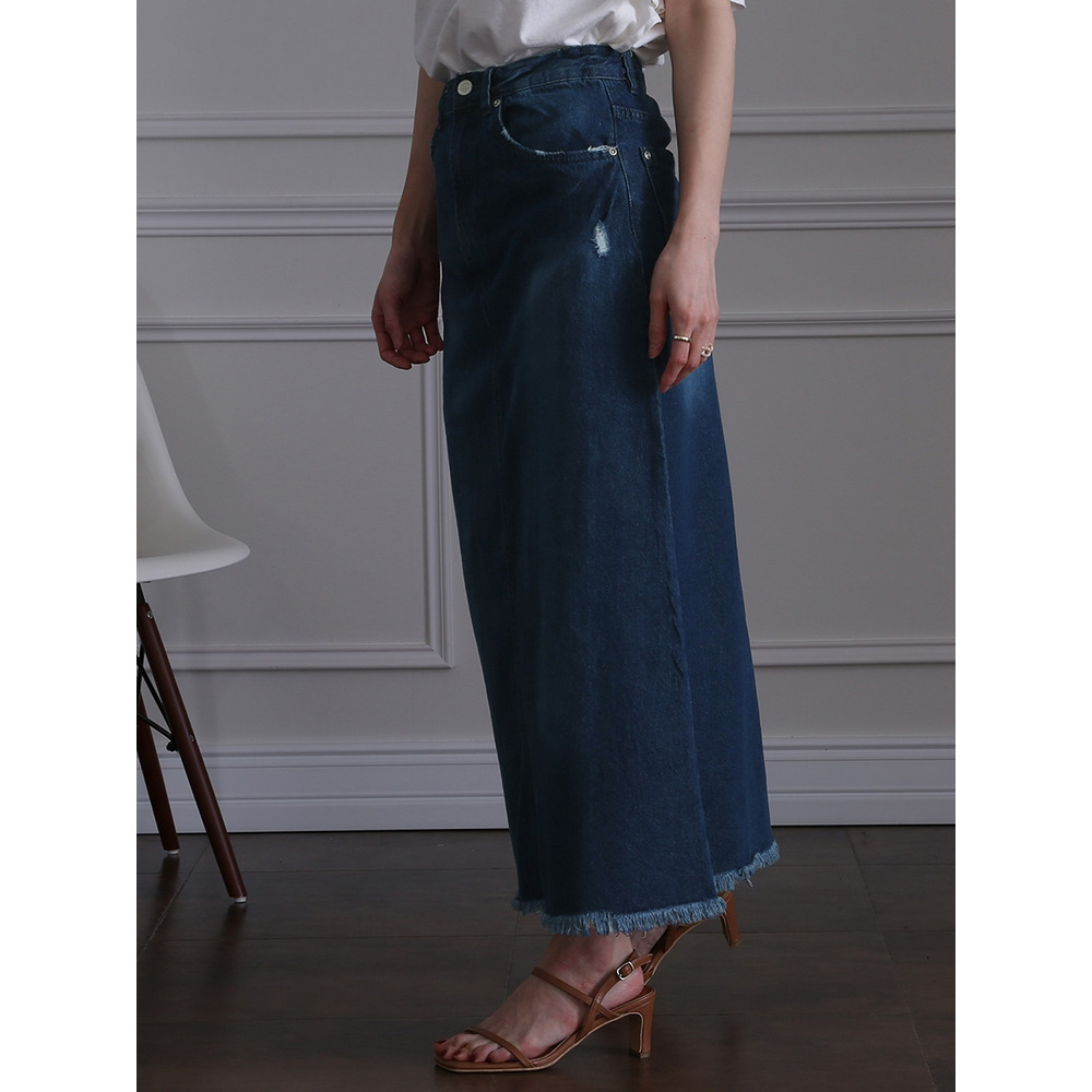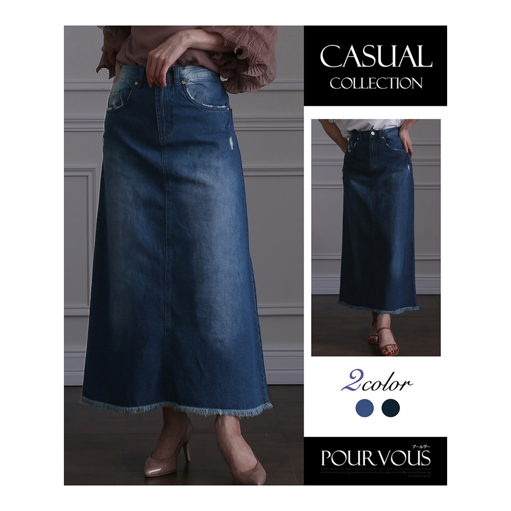 デニムフリンジロングスカート21A 大きいサイズ レディース