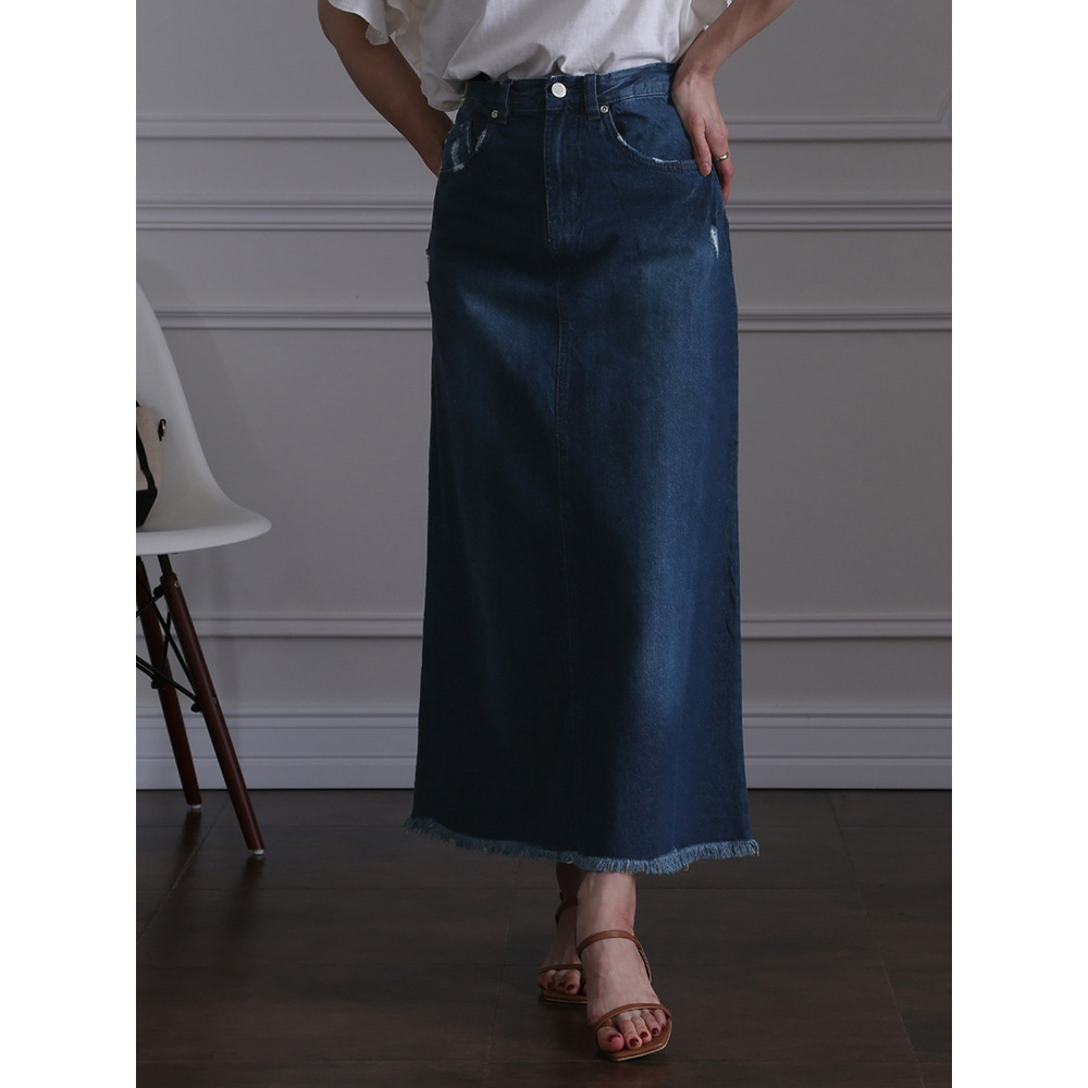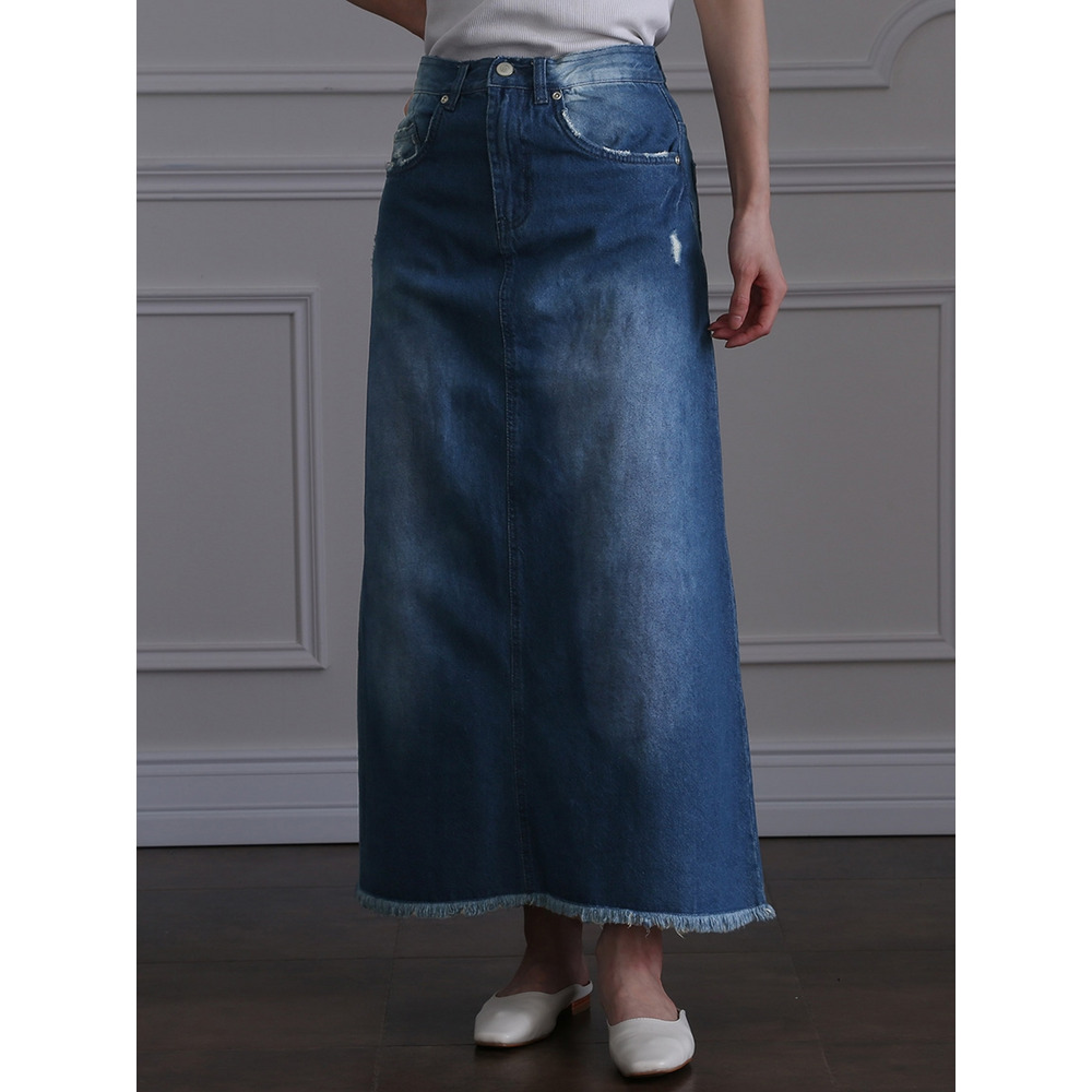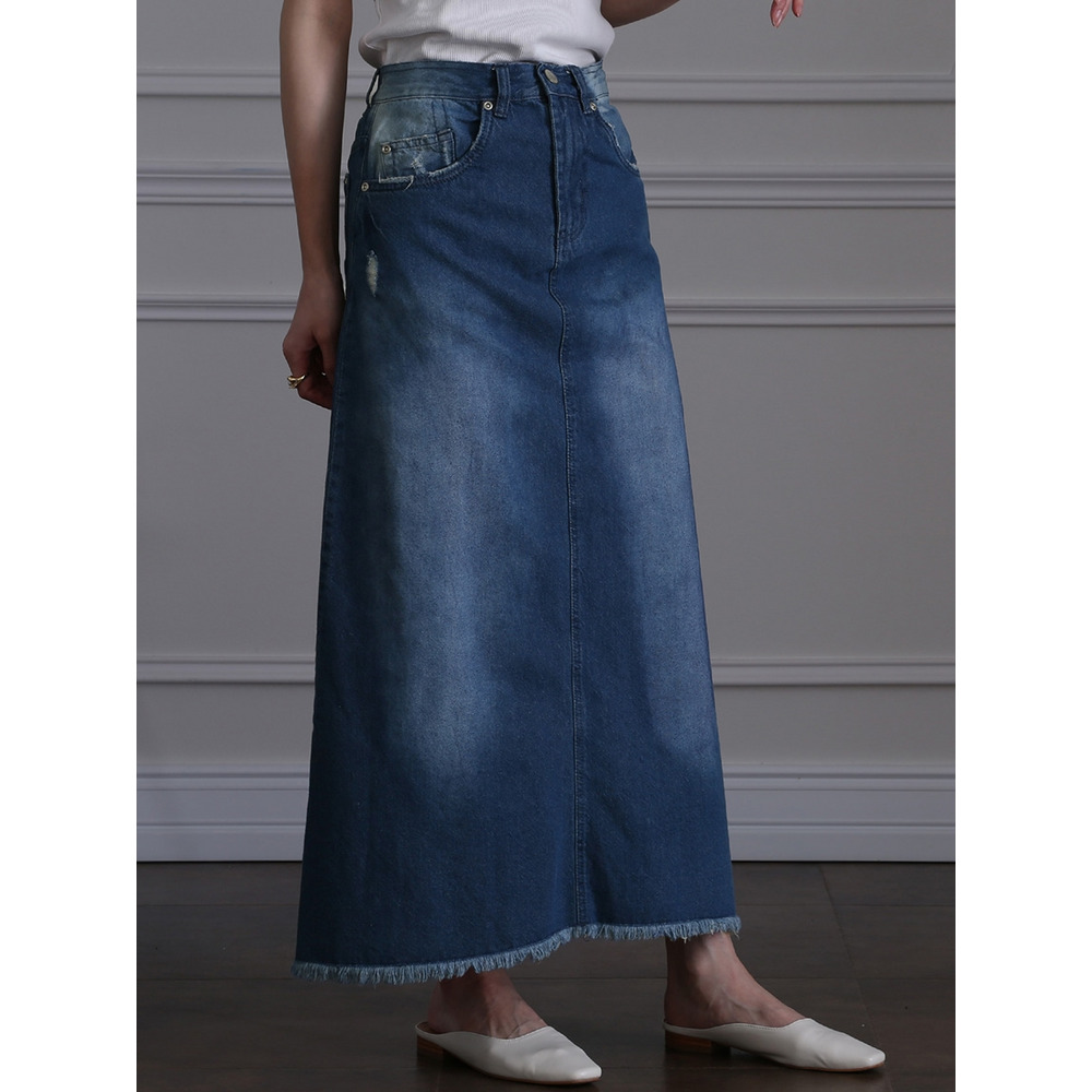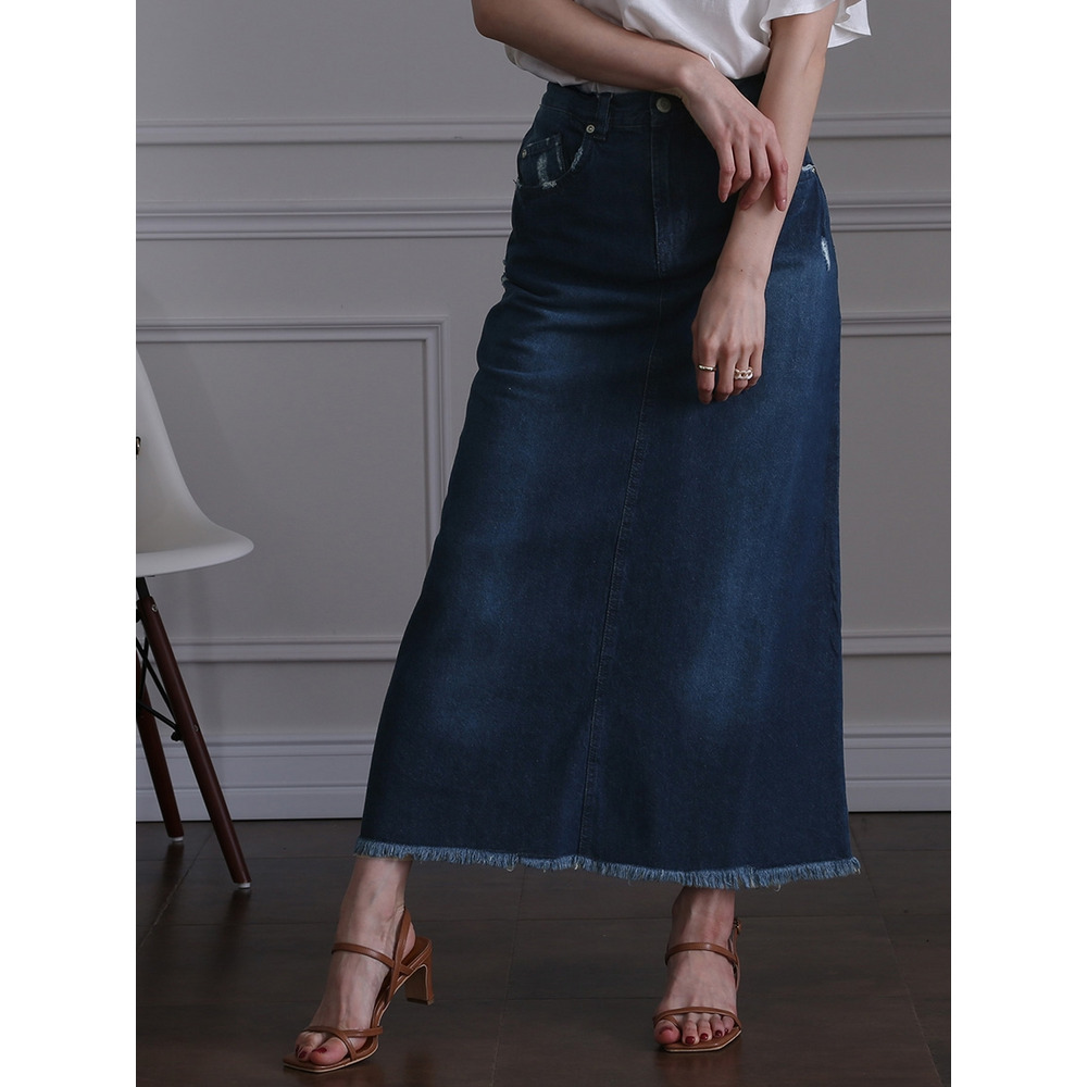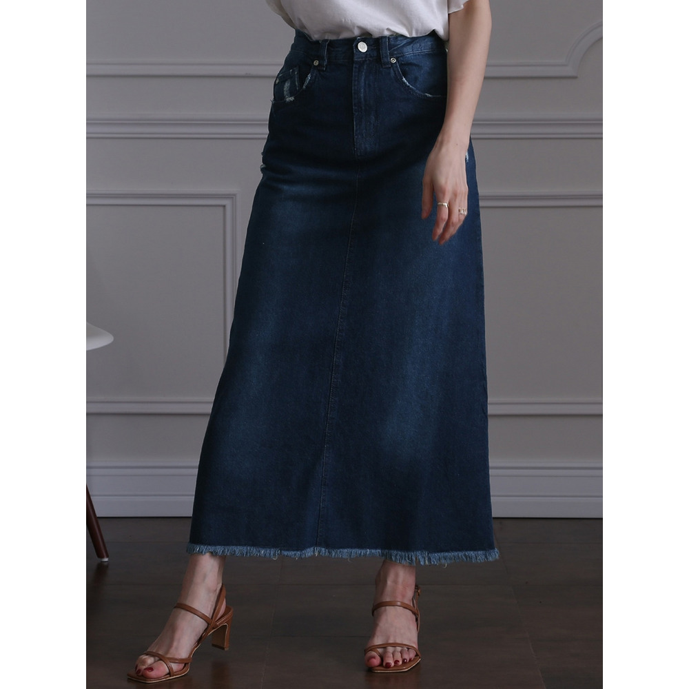デニムフリンジロングスカート21A 大きいサイズ レディース