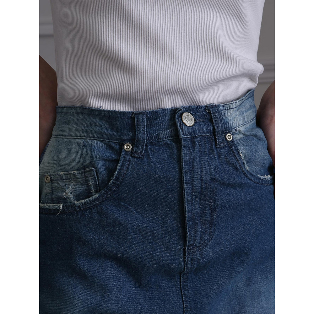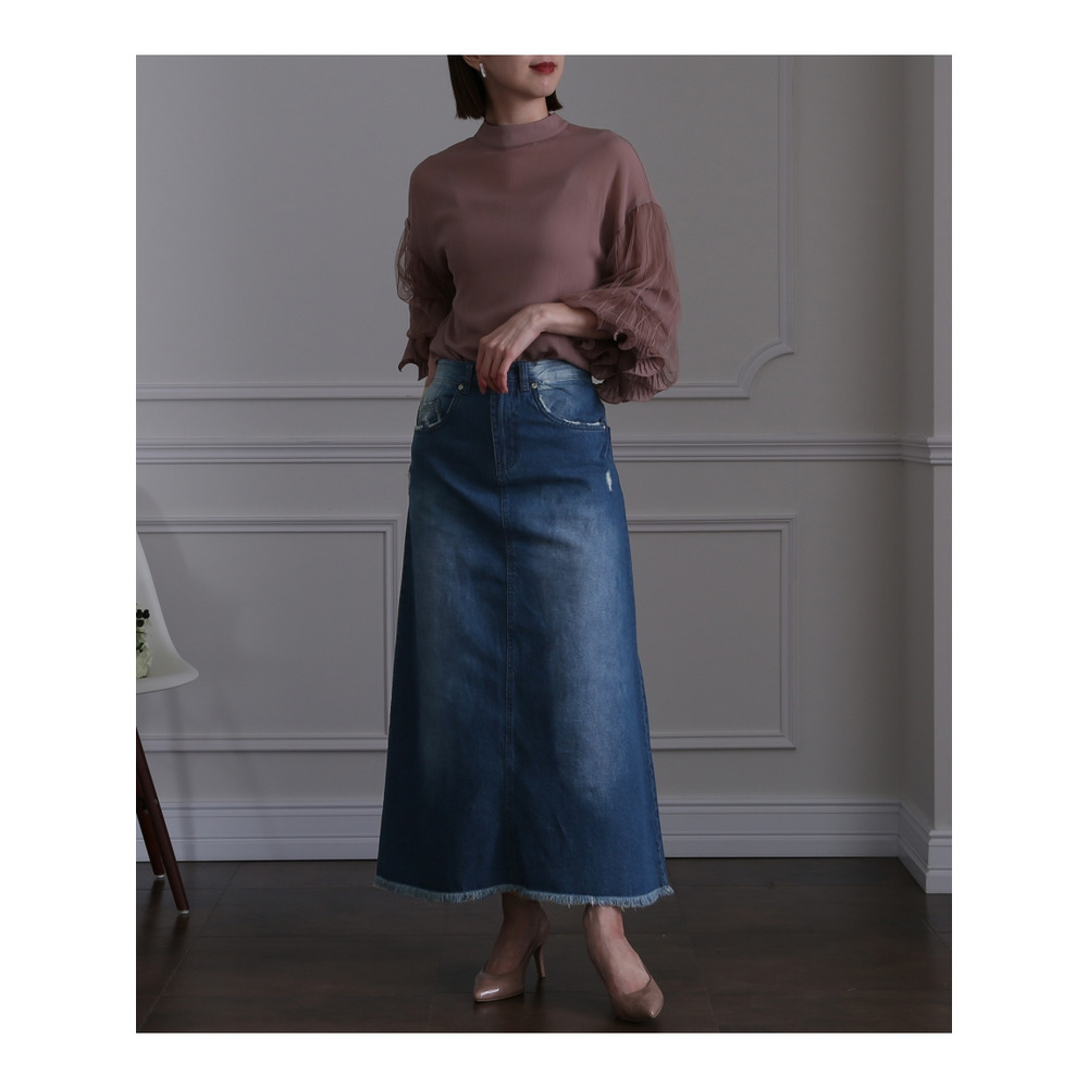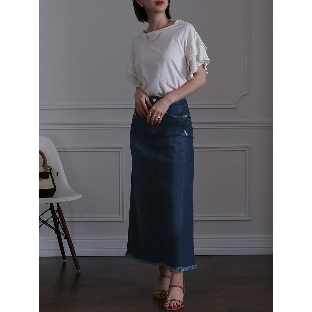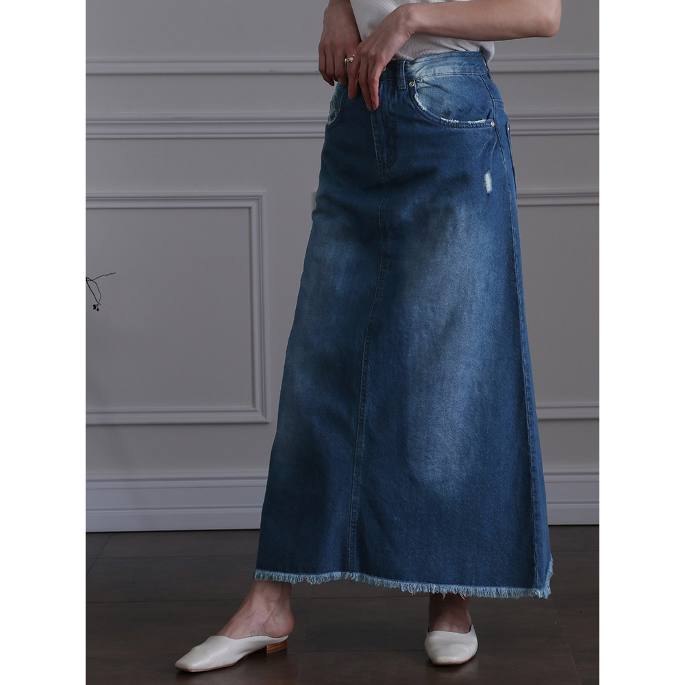 デニムフリンジロングスカート21A 大きいサイズ レディース