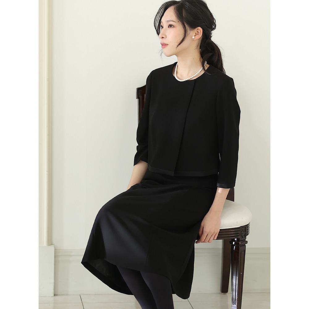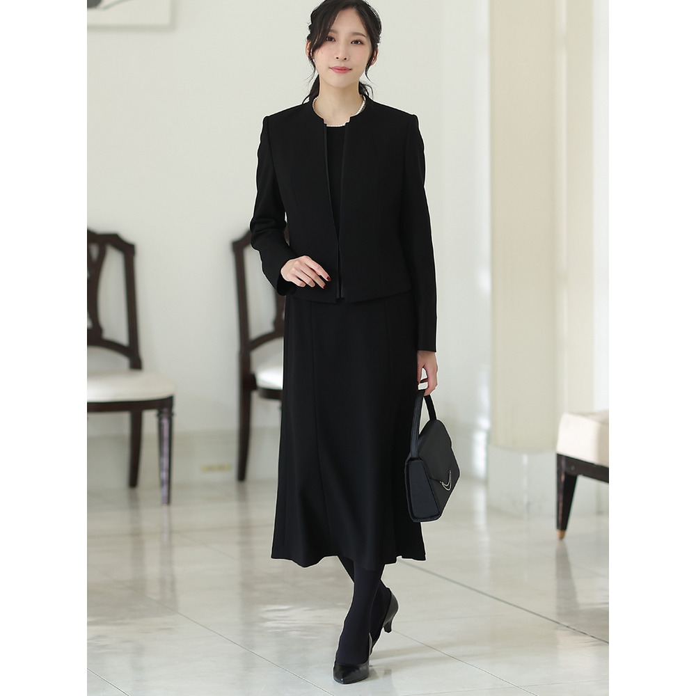 • 【喪服・礼服】【2点セット】Vネックノーカラージャケットフォーマルセット3