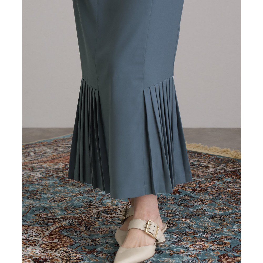 タイトめなデザインに施されたプリーツがマーメイドの様でおしゃれ。