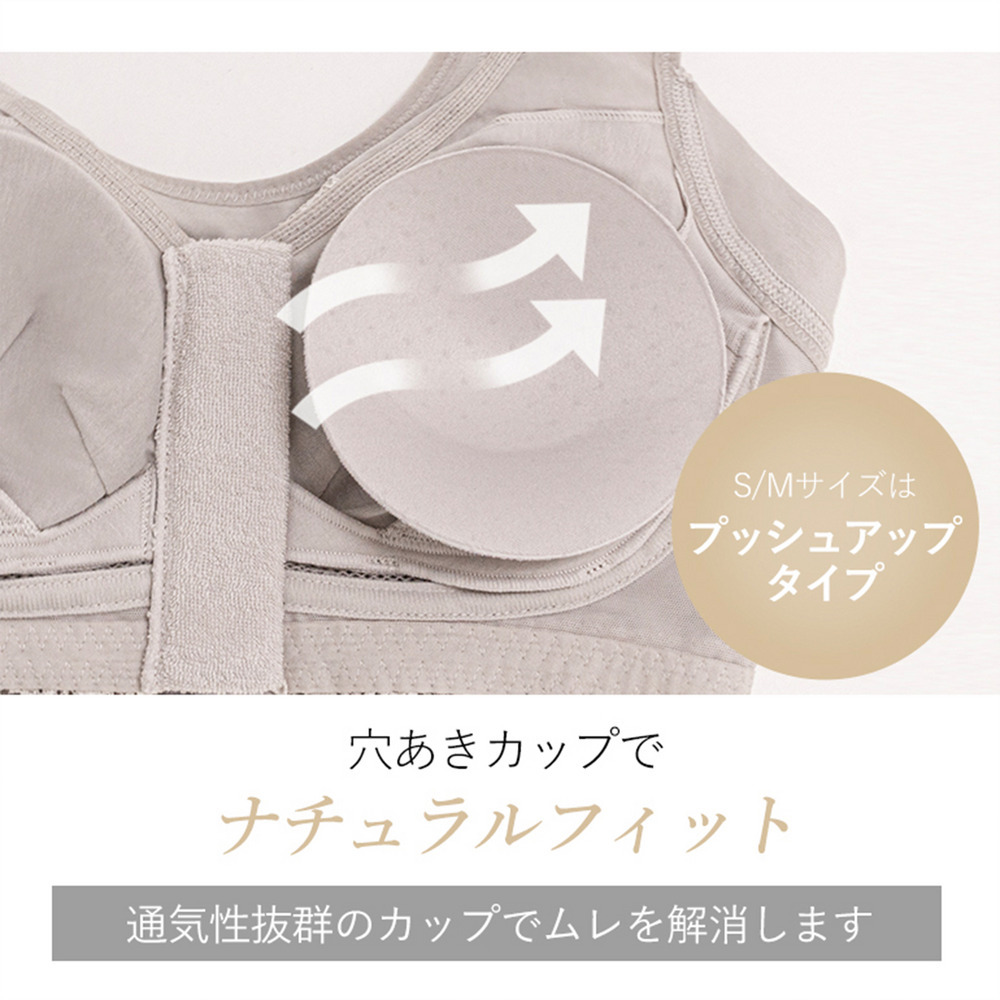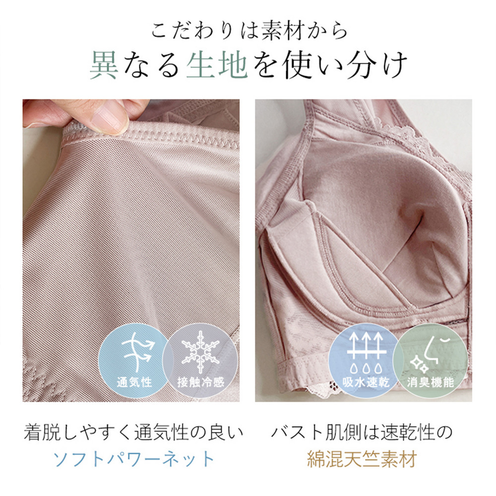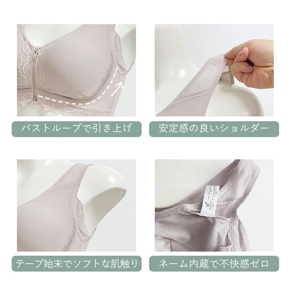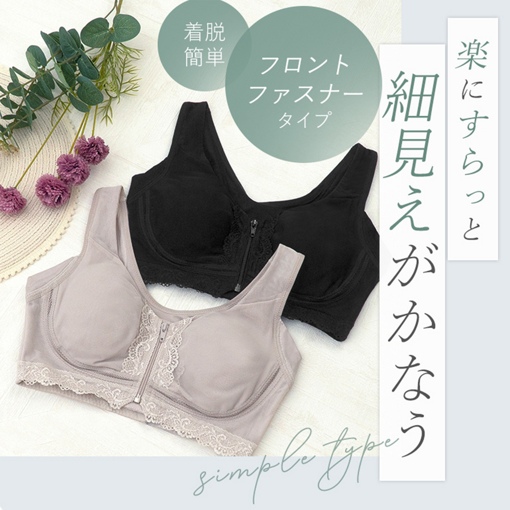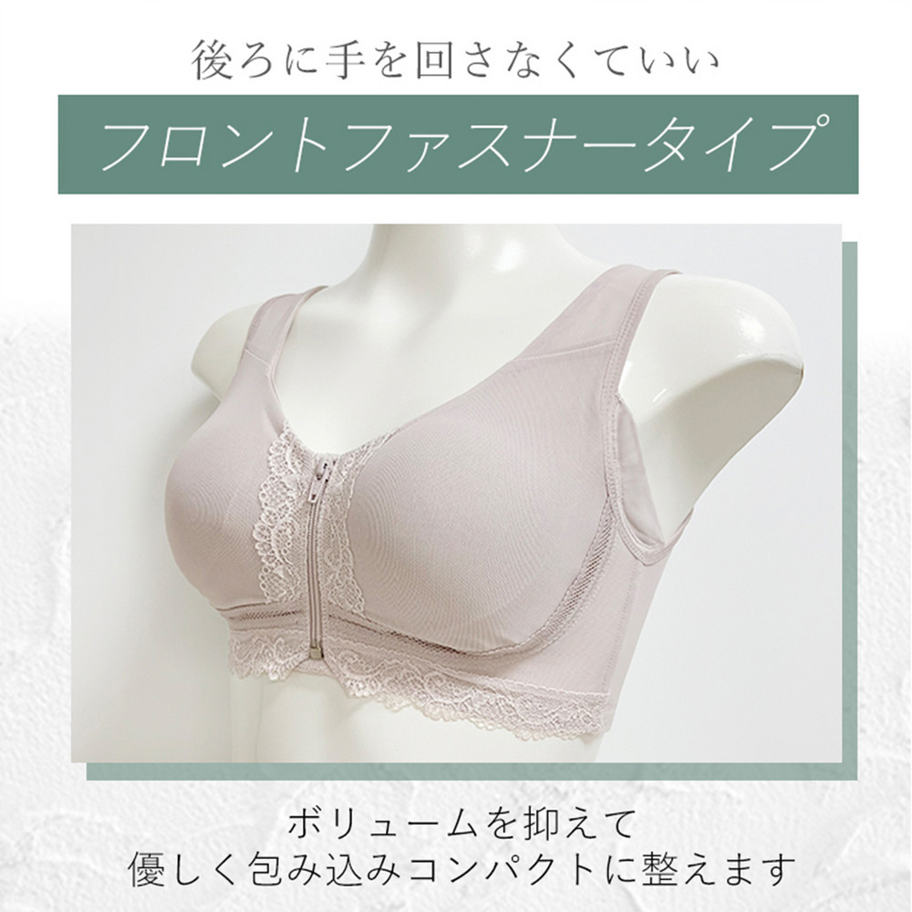 後ろに手を回さずラクに着脱できるフロントファスナータイプの補整ノンワイヤーブラです。