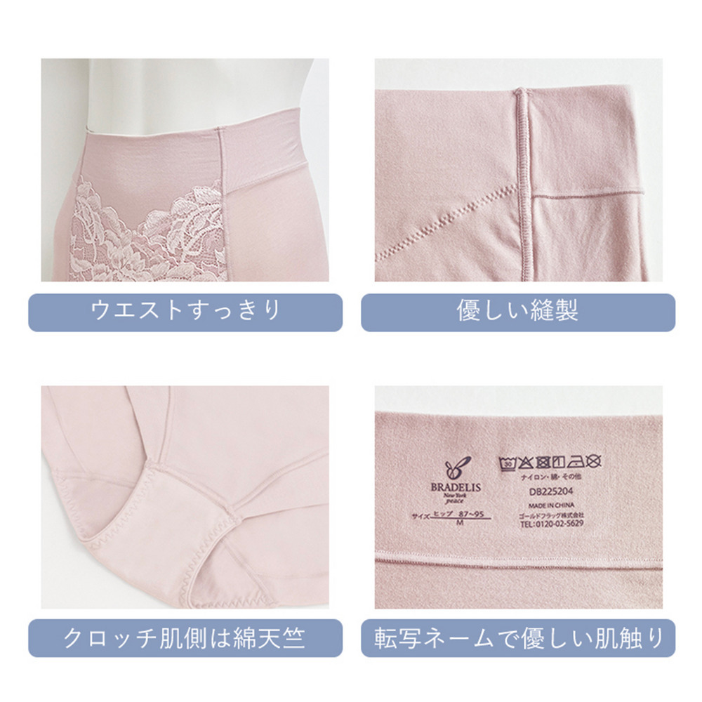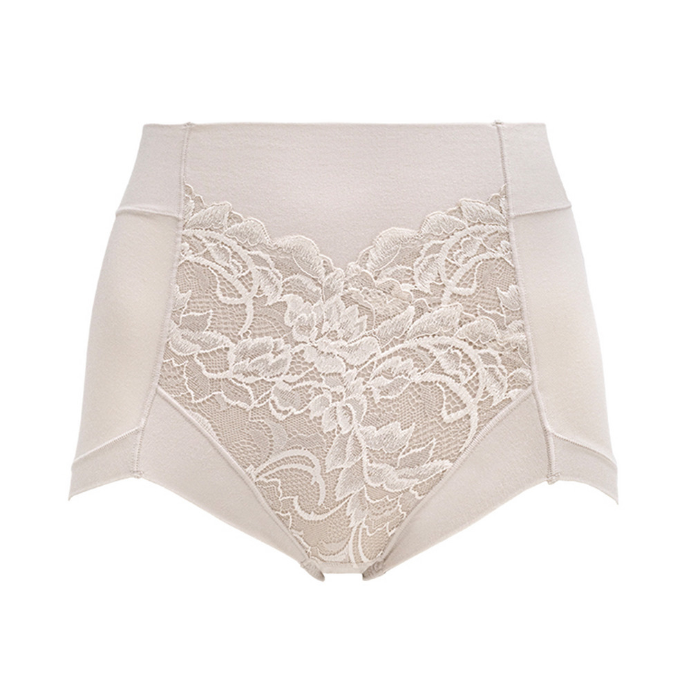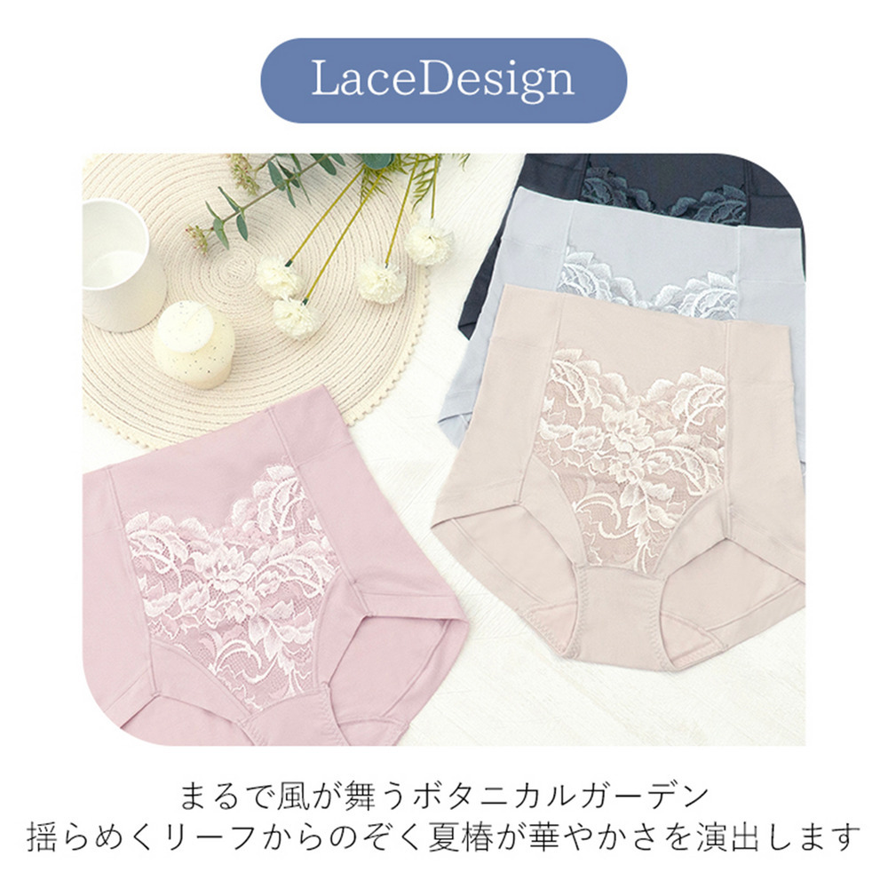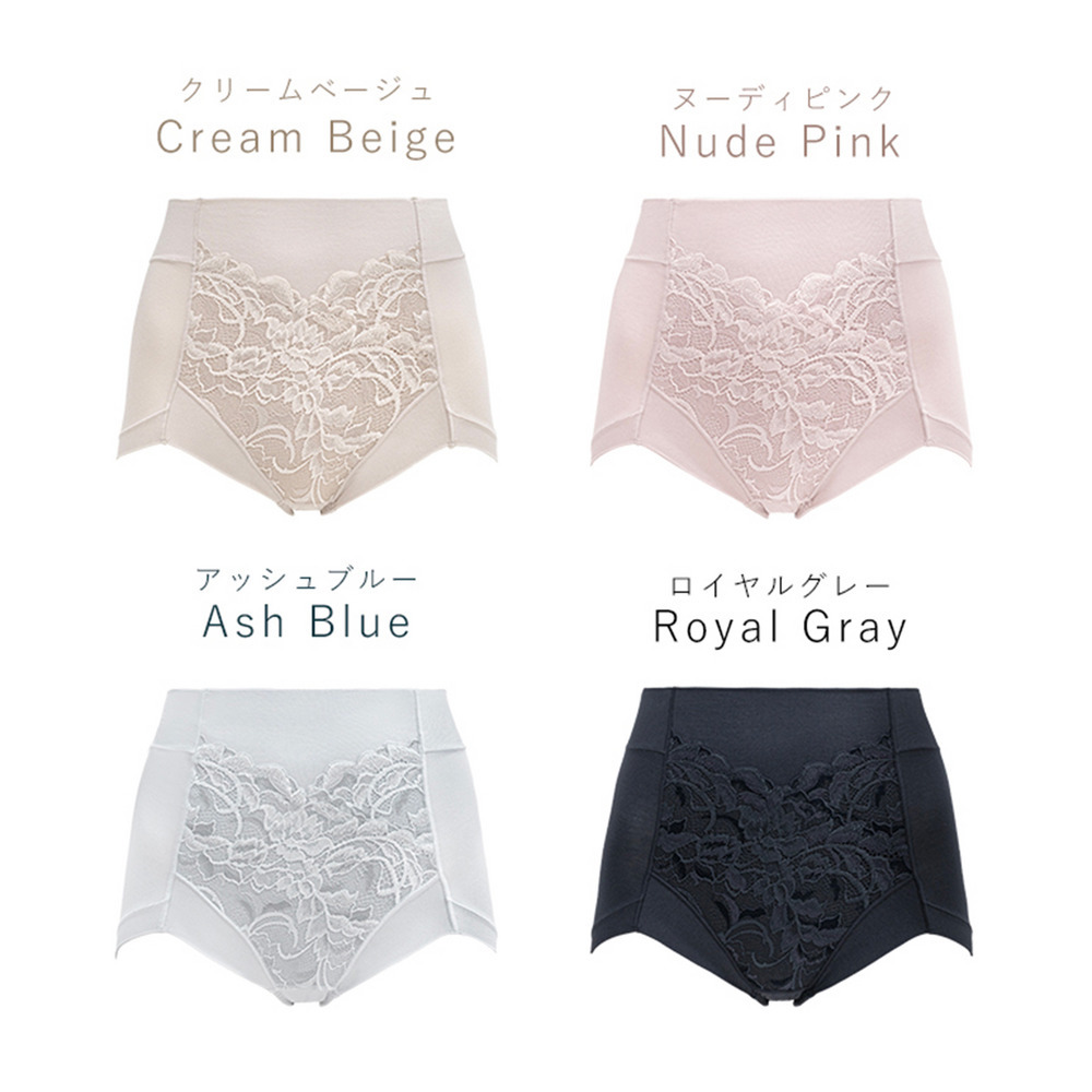 身生地・レース・パワーネットの三重構造で、お腹をすっきり整えます。