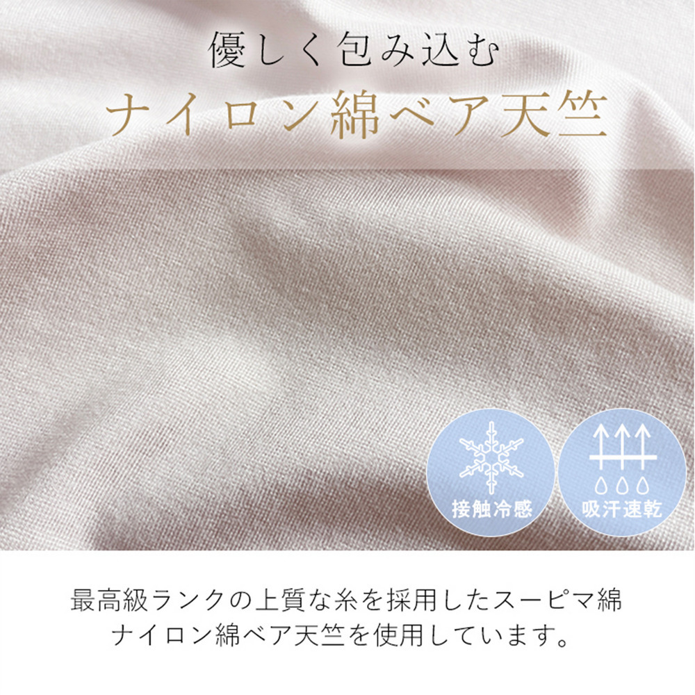 身生地には接触冷感機能と吸汗性、速乾性に優れたナイロン綿ベア天竺*を使用し、柔らかく肌に心地よくフィットします。