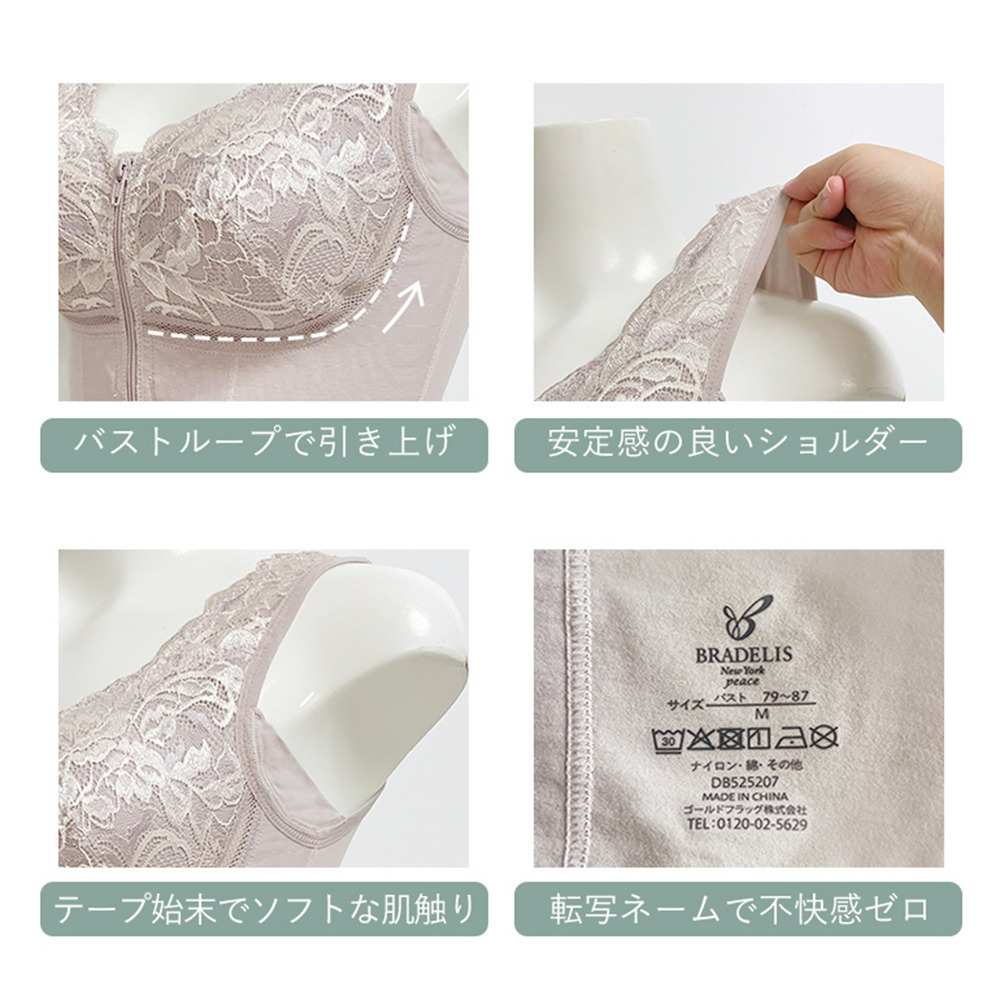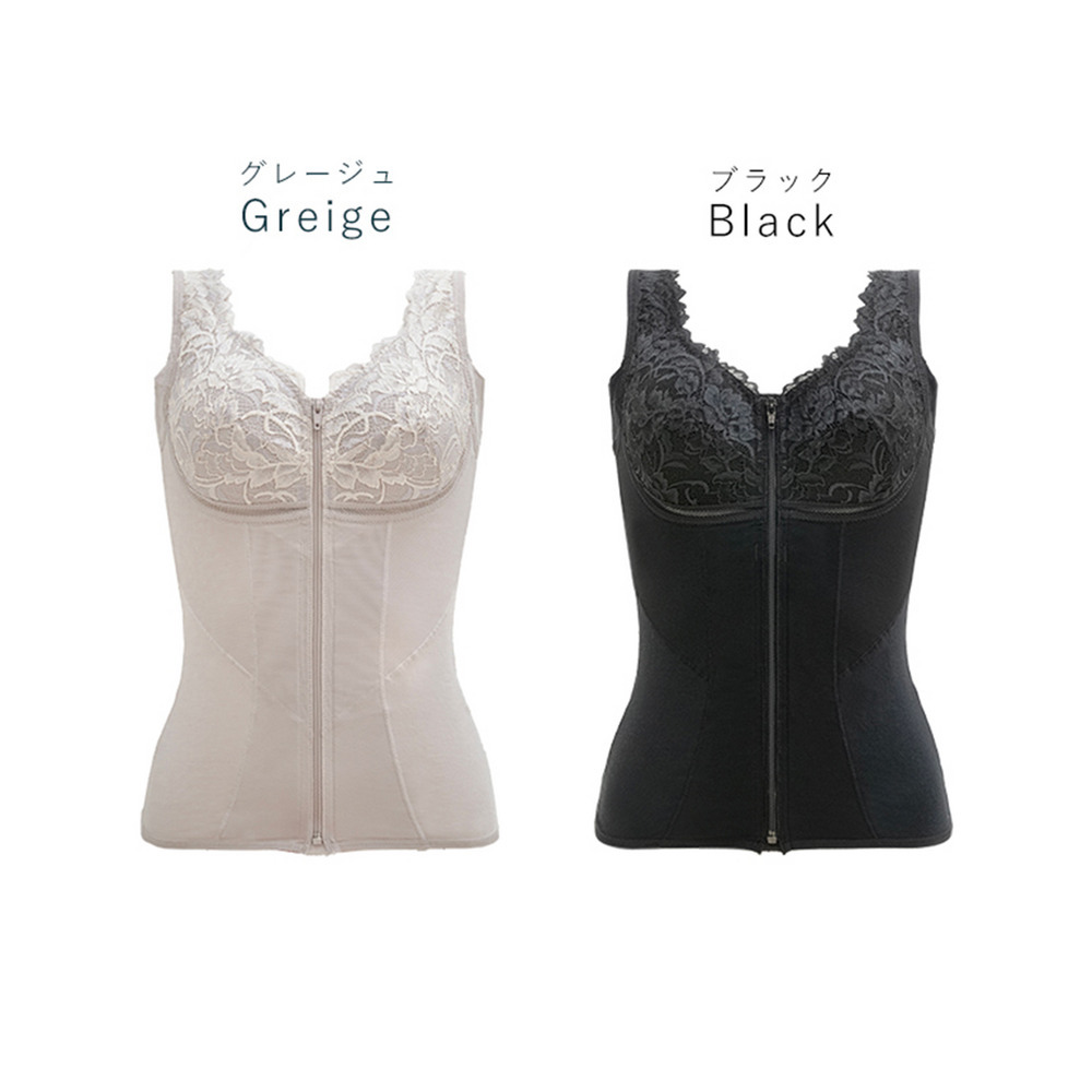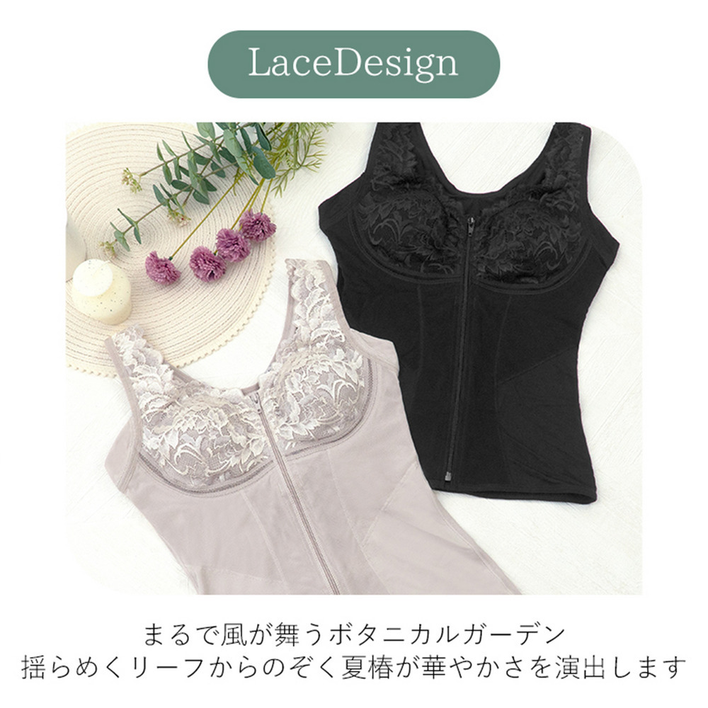 後ろに手を回さずラクに着脱できるフロントファスナータイプの補整ノンワイヤーブラキャミです。