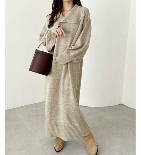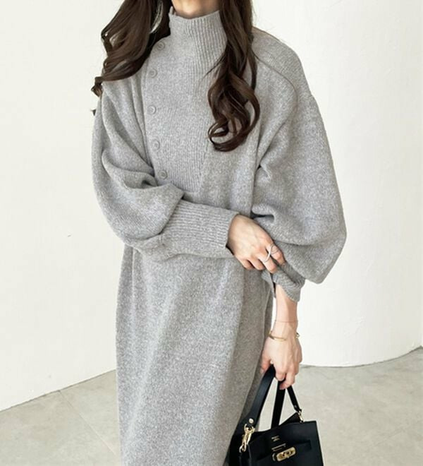 ぽわんとしたボリュームのある袖&ニュアンス感のあるミックスカラーが女性らしい柔らかい雰囲気を演出してくれます。