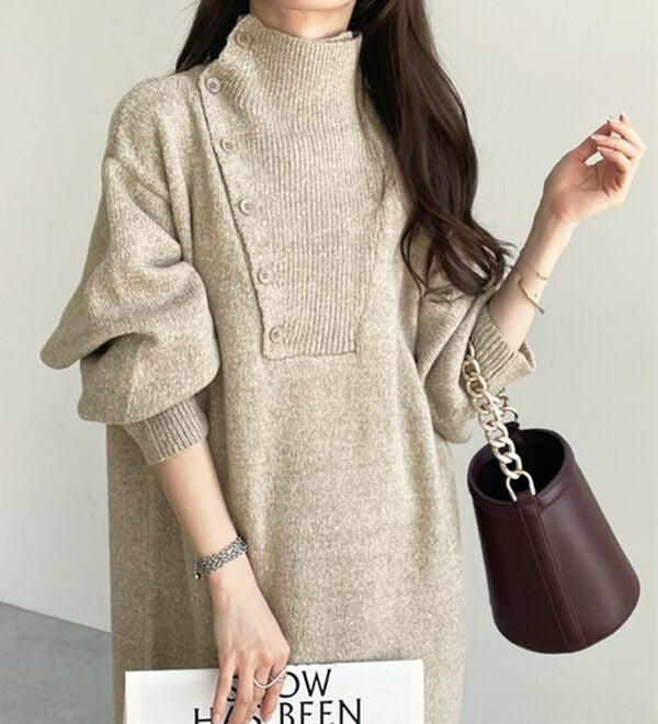 ボタンを全て留めるとタートルネック仕様に、上から4つほど外して衿を出せばセーラーカラー仕様になります。
