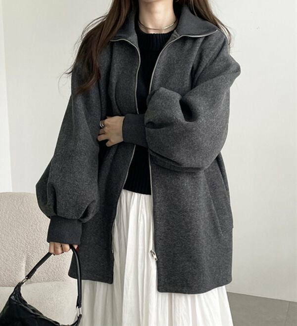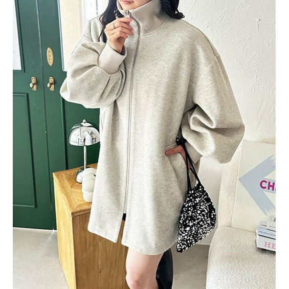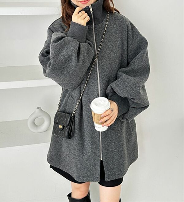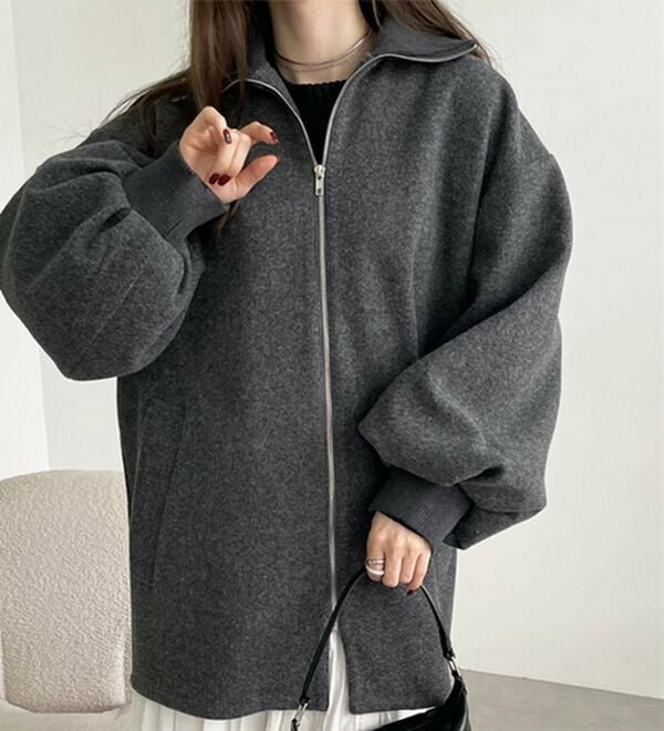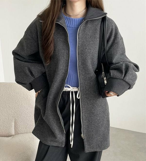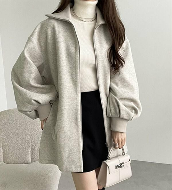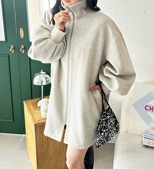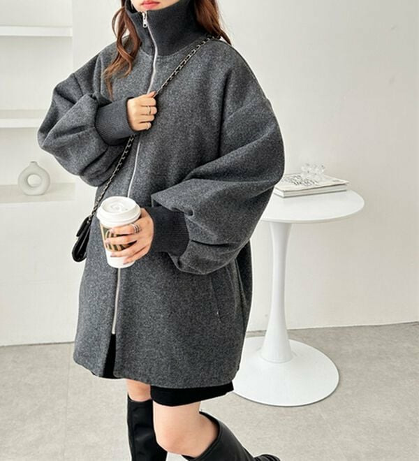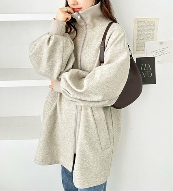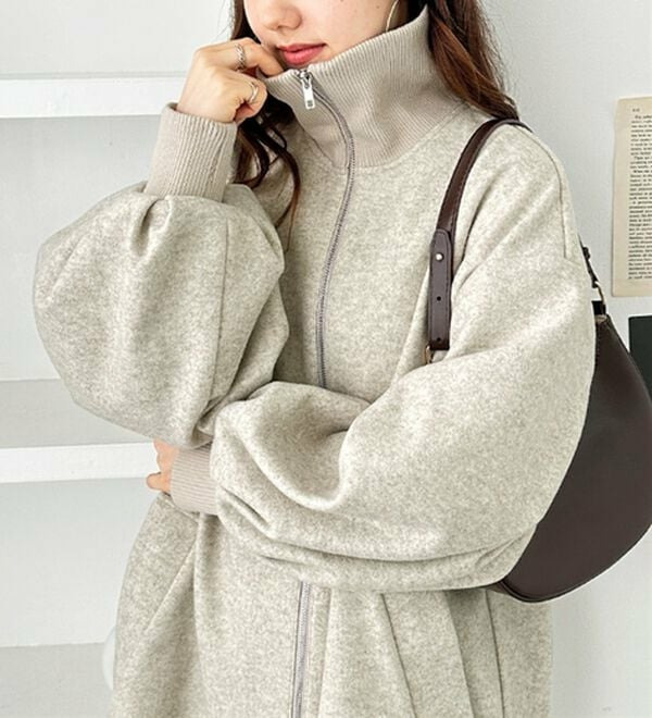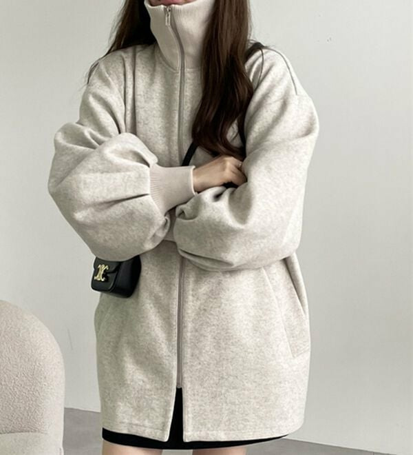 ファスナーを上まで上げてタートル仕様にしても雰囲気の違ったコーデが楽しめます。