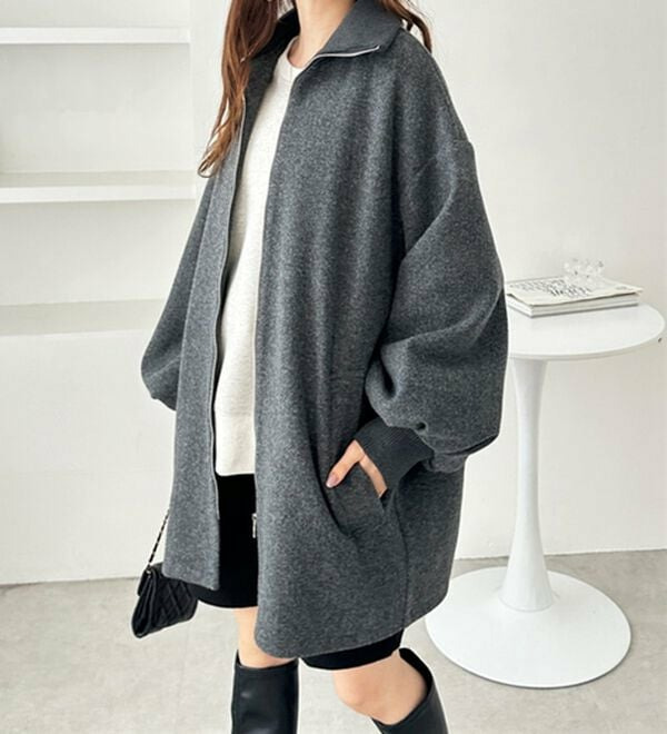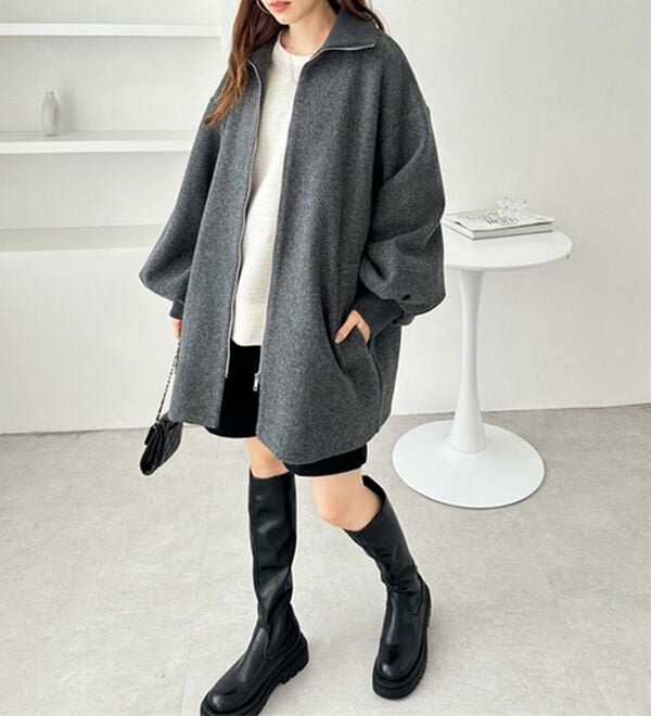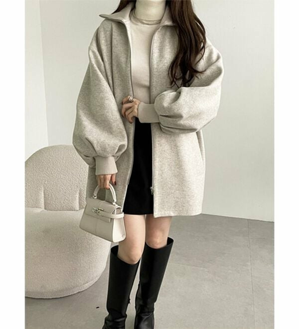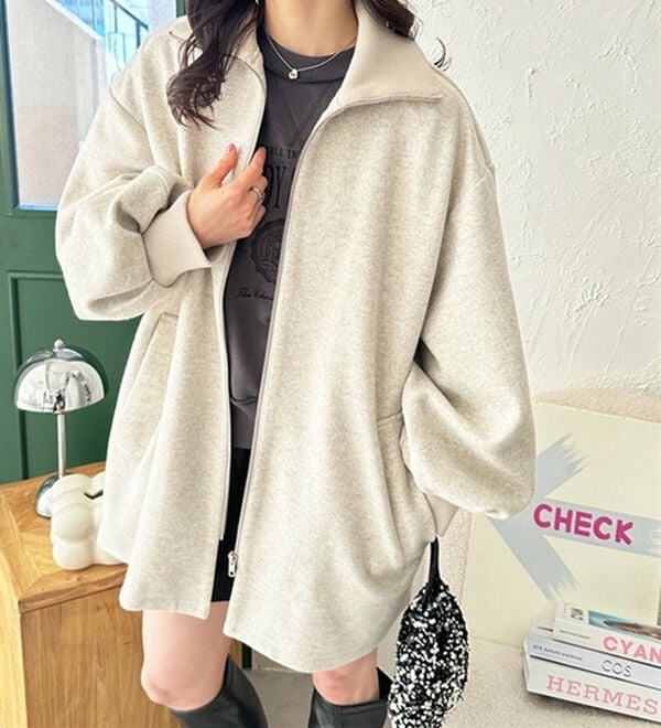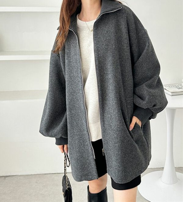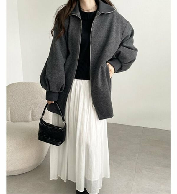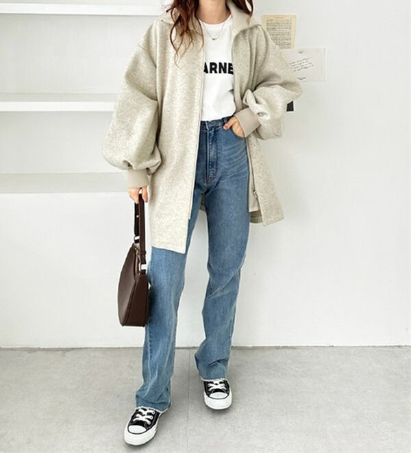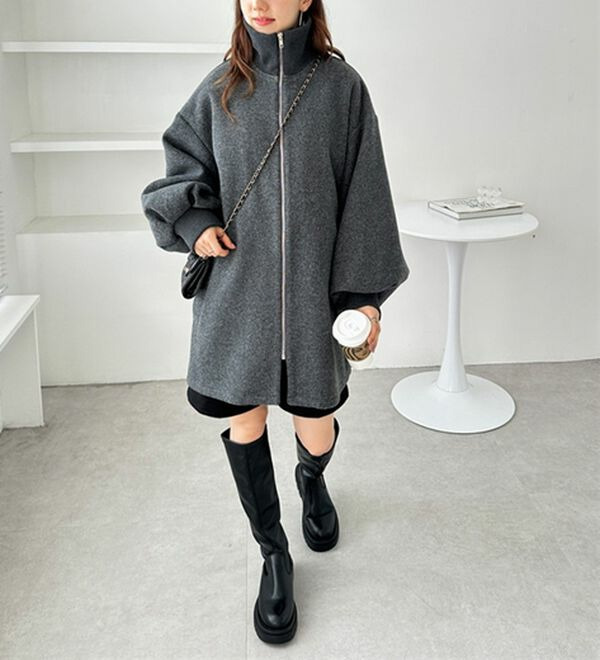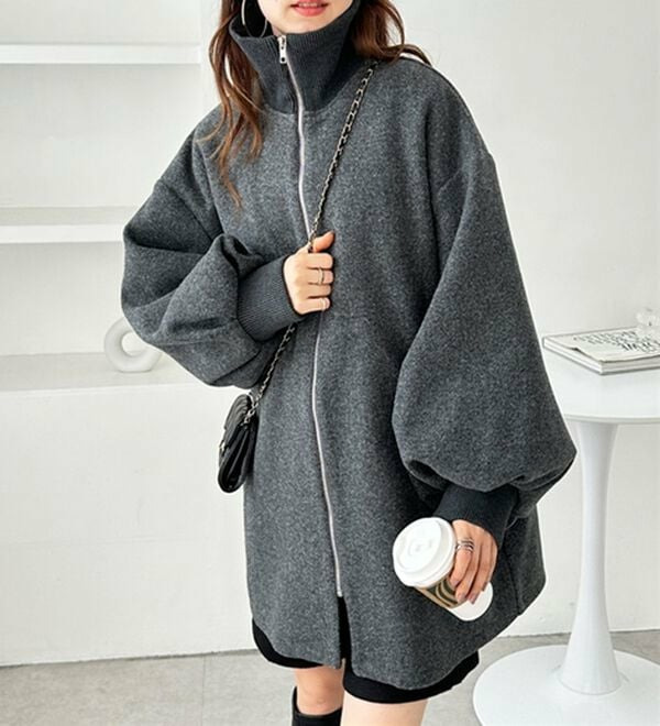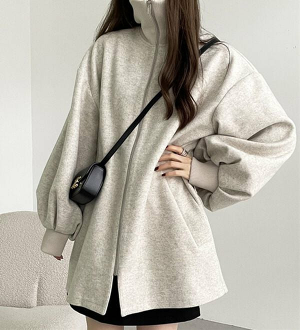 ファスナーを上まで上げてタートル仕様にしても雰囲気の違ったコーデが楽しめます。