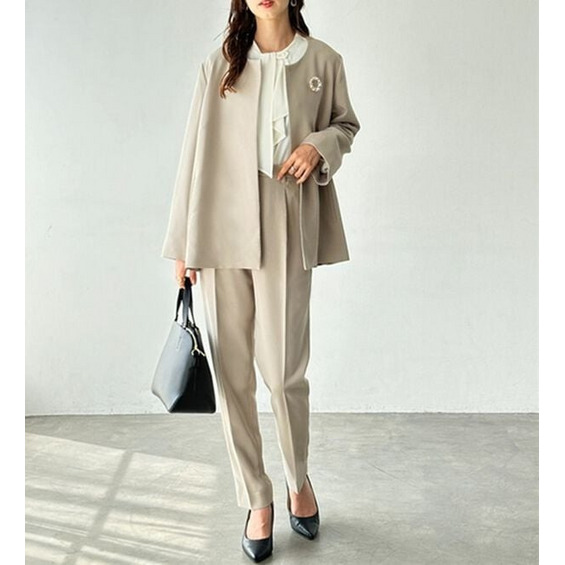 • 【2点セット】ノーカラーフレアーラインジャケットセットアップ19